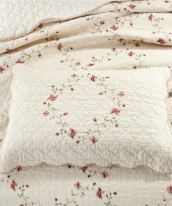 Juego de Colcha Hojas Florales 3D Bordado 3 Piezas Algodón