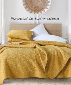 3. Elegante y Duradero – Sus colores sólidos y puntos cosidos añaden un toque de elegancia a cualquier esquema de color o estética y las arrugas de prelavado realzan la estética del cubrecamas además de añadir durabilidad y resistencia.