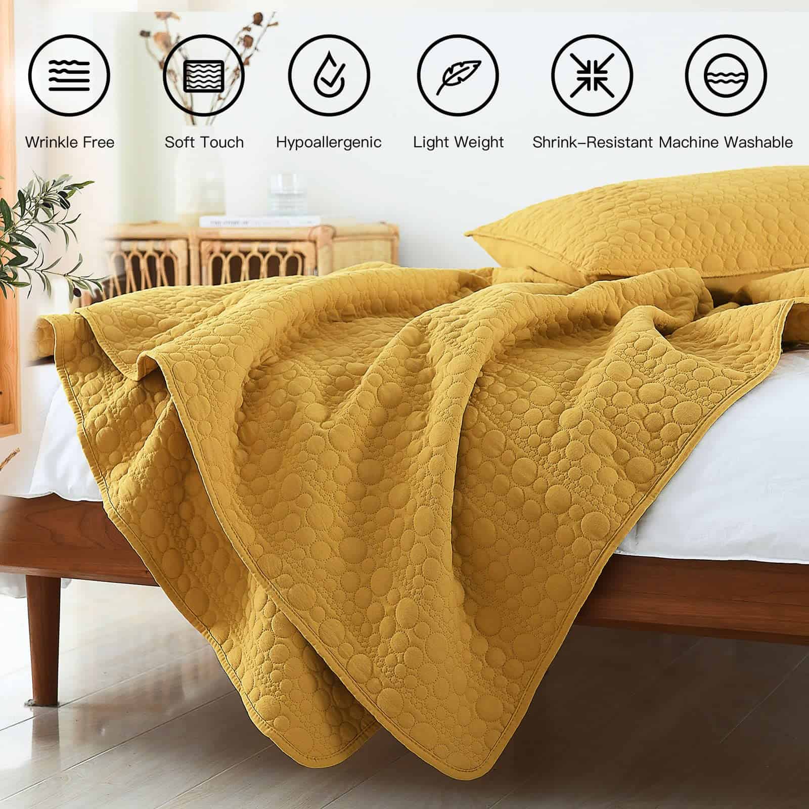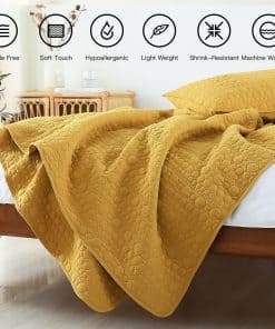 4. FÁCIL CUIDADO – Esta colcha es fácil de cuidar y resistente a las arrugas, decoloración y encogimiento. Simplemente lave a máquina en frío, seque a máquina, no use lejía.
