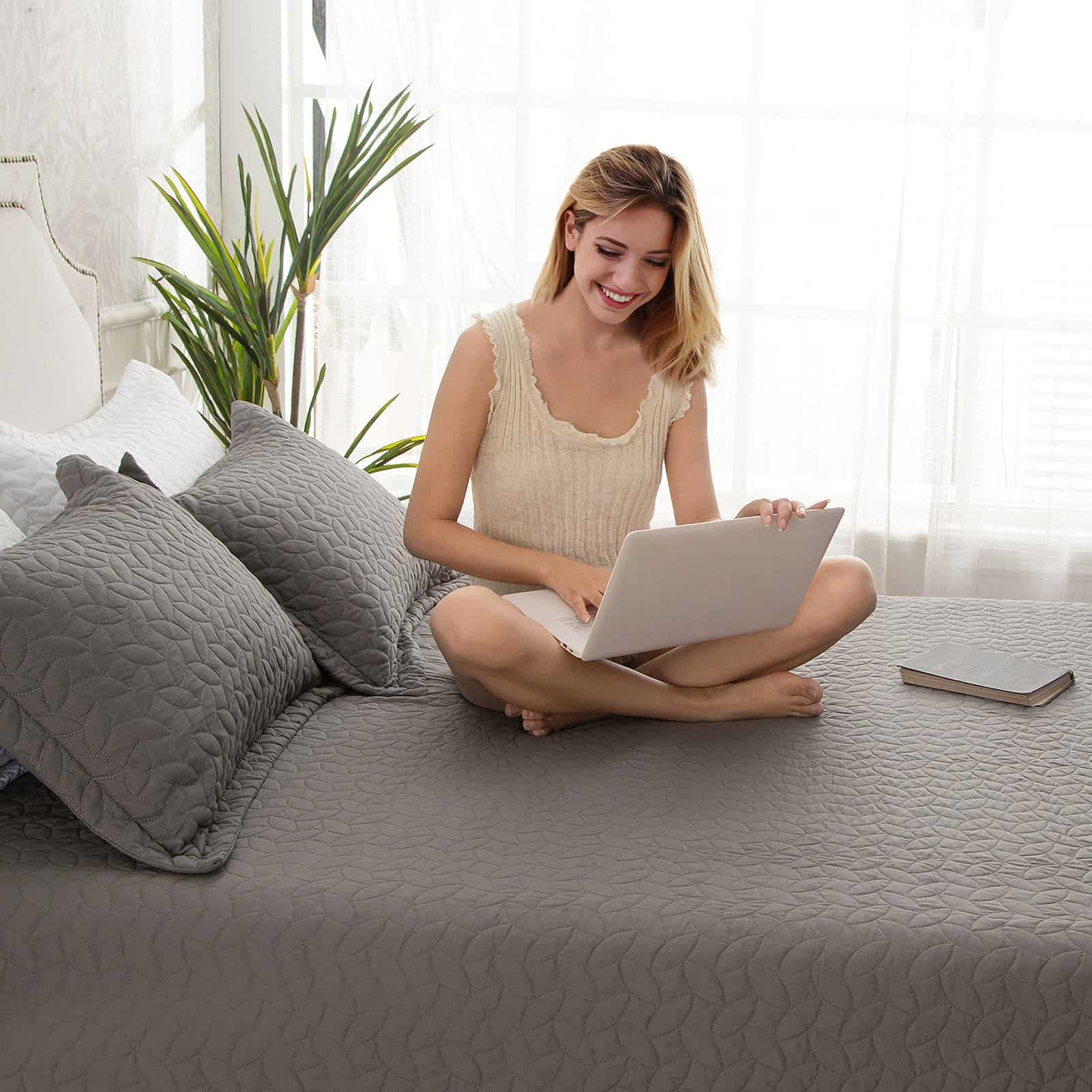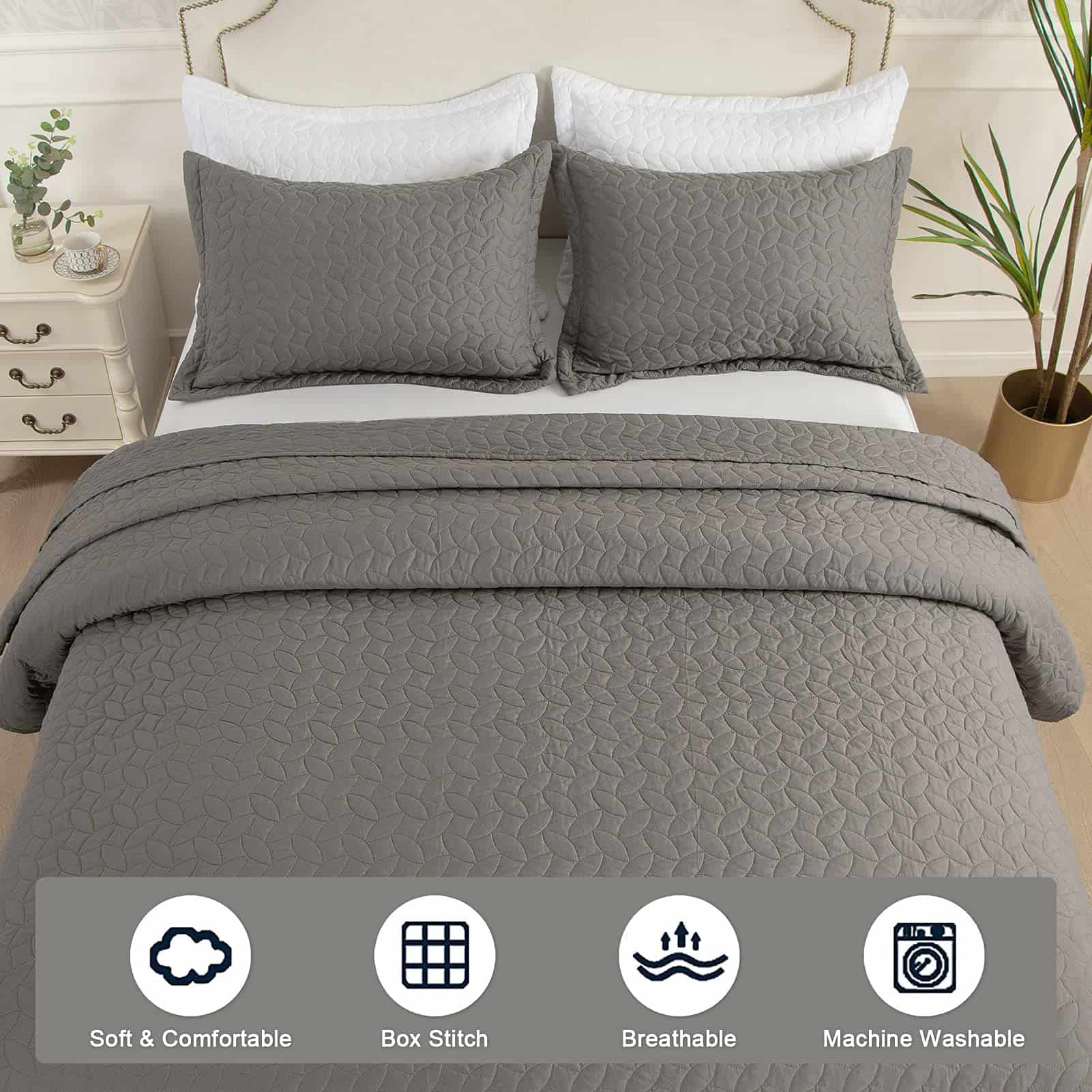 4. LIGERO Y LUJOSO: La microfibra súper suave está cosida en una construcción multicapa que crea colchas ligeras y duraderas para usar durante todo el año.