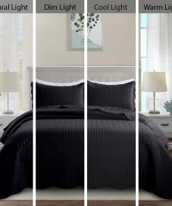 3. Confort para Todas las Estaciones: Experimente lo último en comodidad y lujo con nuestra colcha de microfibra transpirable ultrasuave. Le mantiene caliente en el invierno y fresco en el verano. Ya sea que se enfrente a una noche fría o a una brisa veraniega, nuestra colcha le ayudará a tener un sueño reparador.