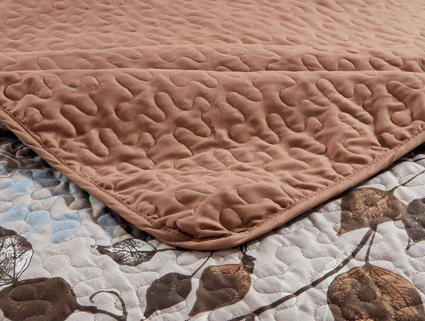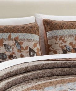 Juego de Colcha King/Cal King con Hojas Relieve Impresas. Incluye: 1 Colcha (118″ x 95″) y 2 Fundas de Almohada (20″ x 36″). 100% Microfibra. Lavar en Frío a Máquina, Secar a Baja Temperatura.