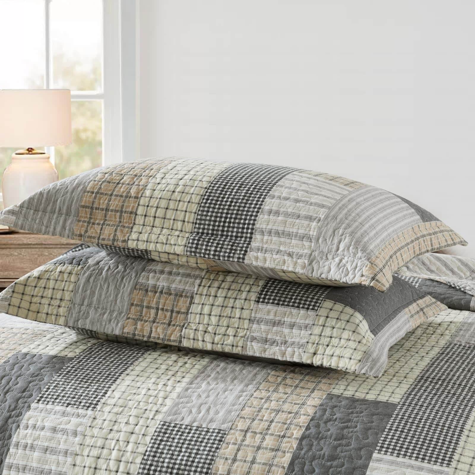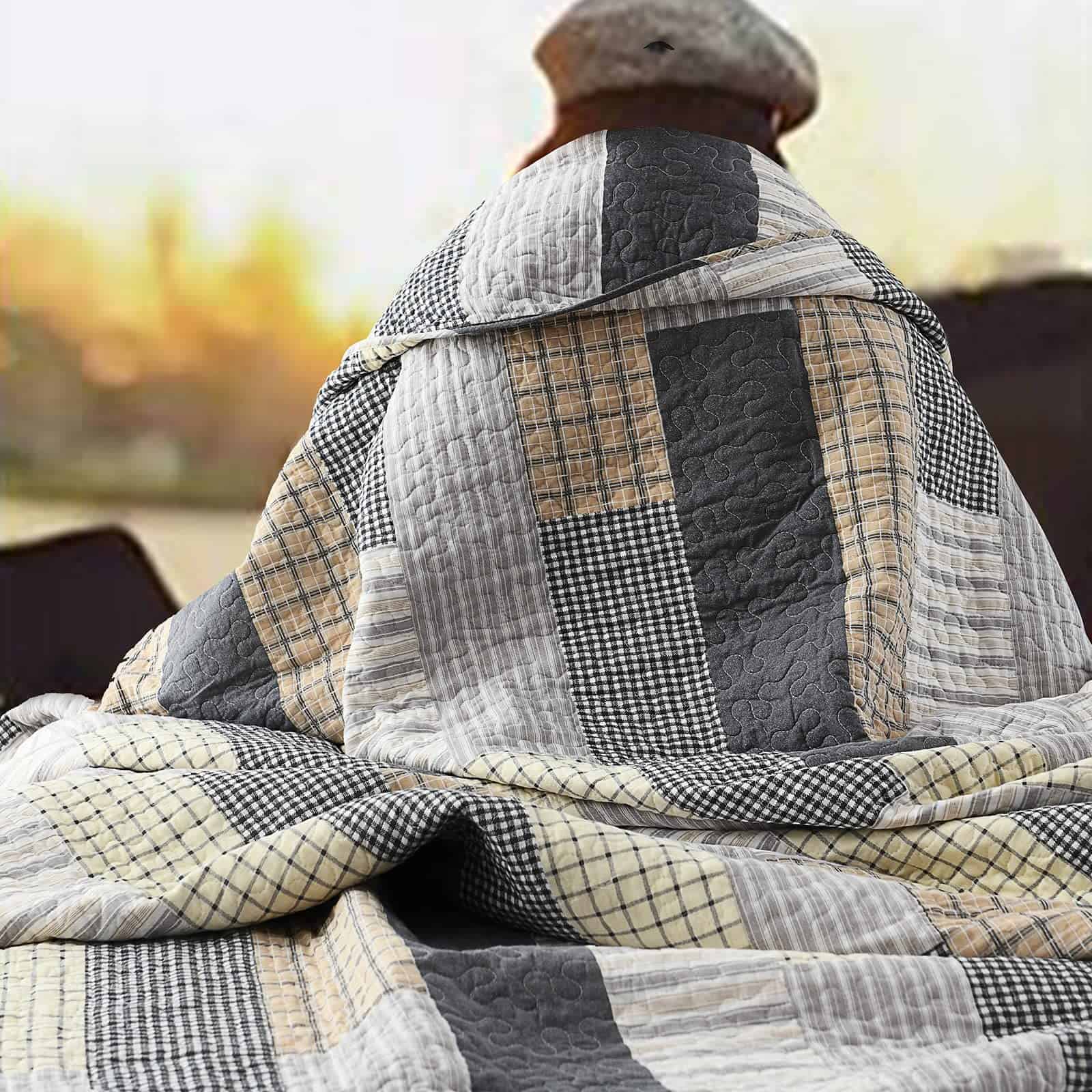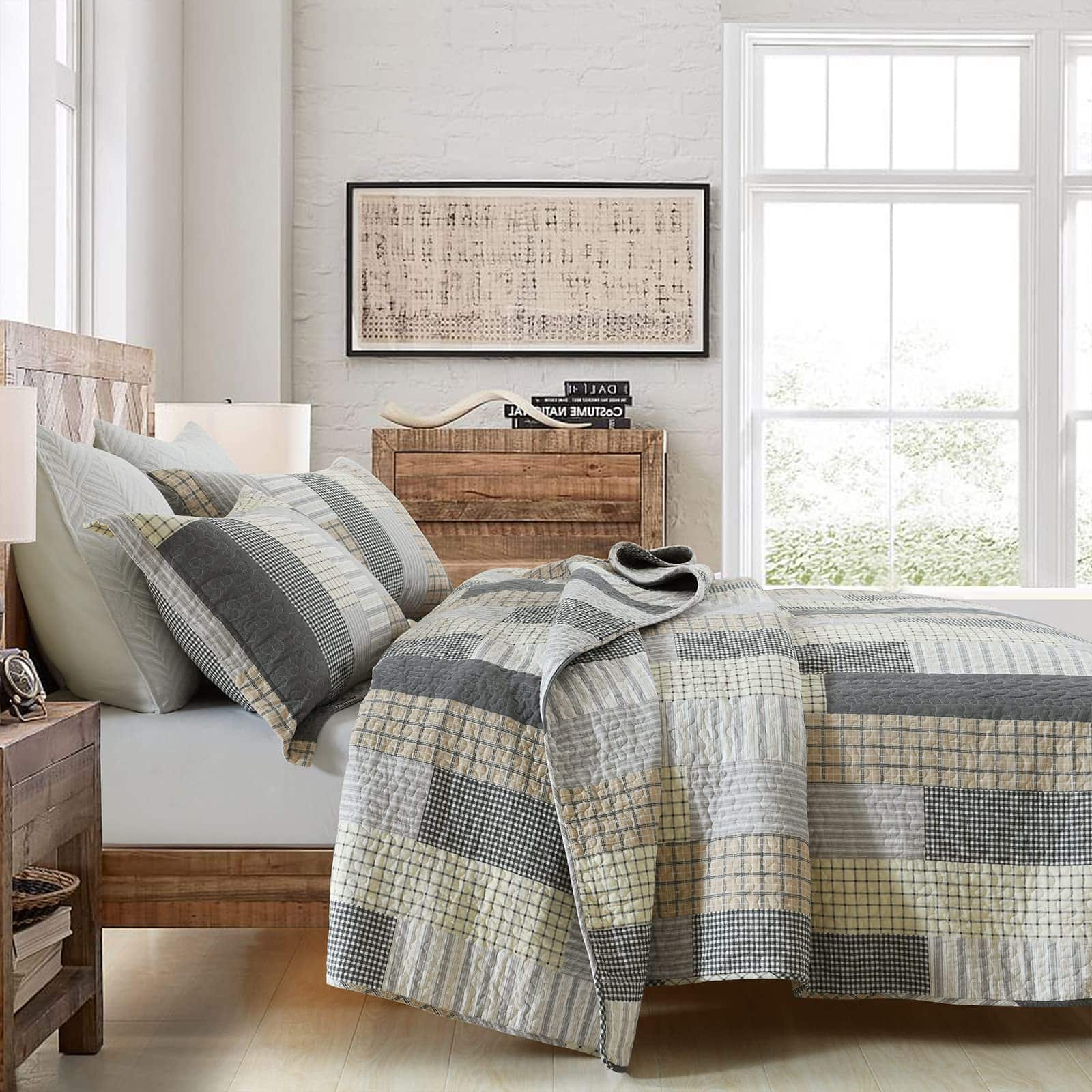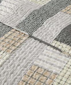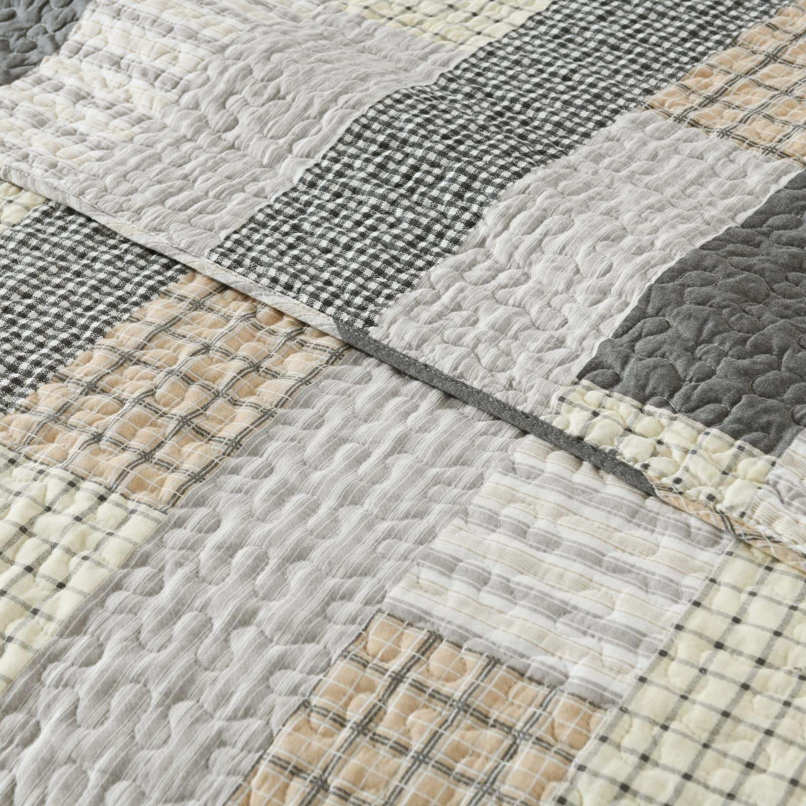 2. Diseño de Patchwork El color gris/amarillo se realza con la combinación de rayas, haciendo que este juego de colcha sea elegante y único. Este juego de colcha ligero es también un accesorio elegante que agregará un aire de sofisticación a tu dormitorio.
