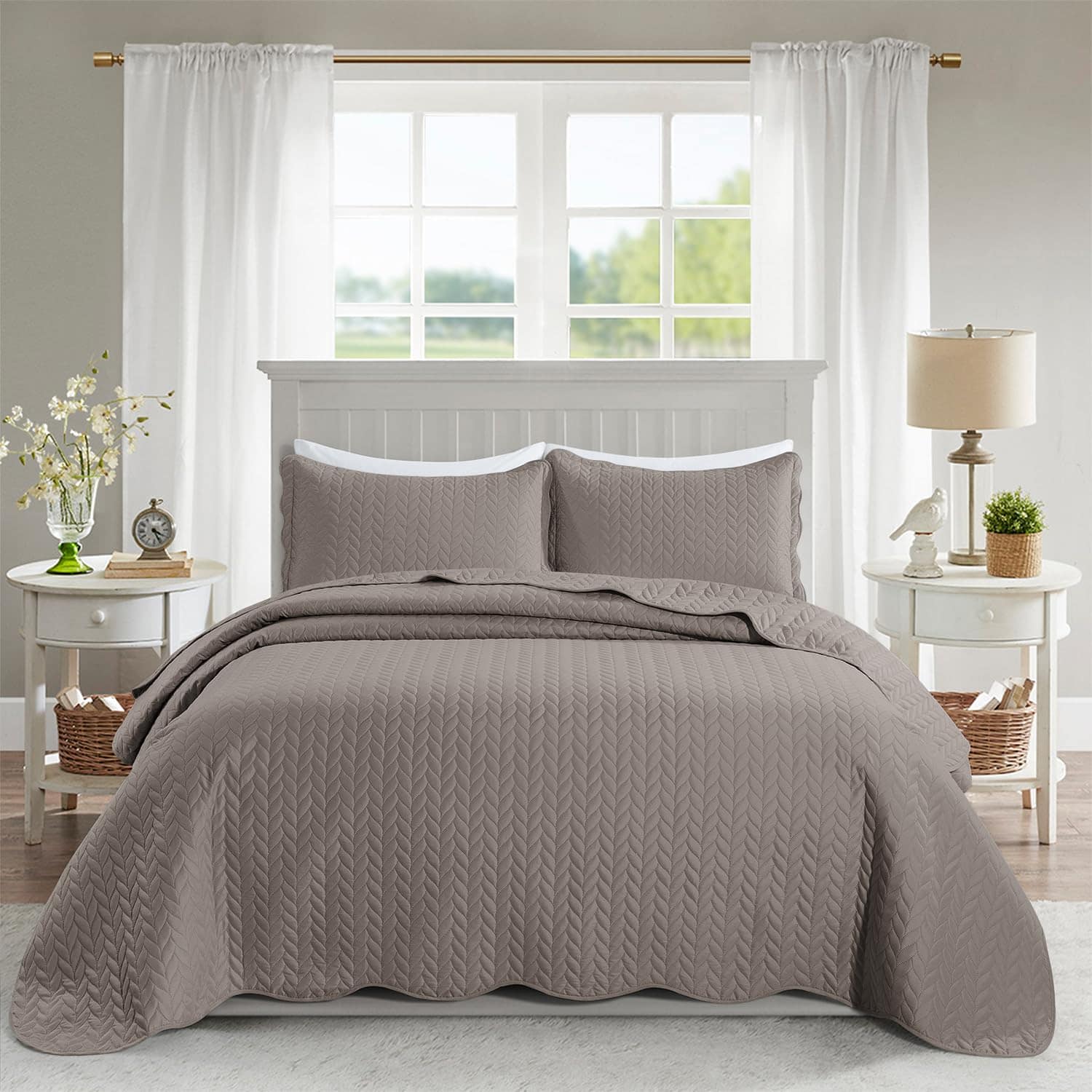 2. Versátil: Eleva la decoración de tu dormitorio con esta elegante colcha que presenta un exquisito patrón en relieve. Los tonos neutros se mezclan perfectamente con varios estilos de interiores, transformando tu cama en un punto focal impresionante.