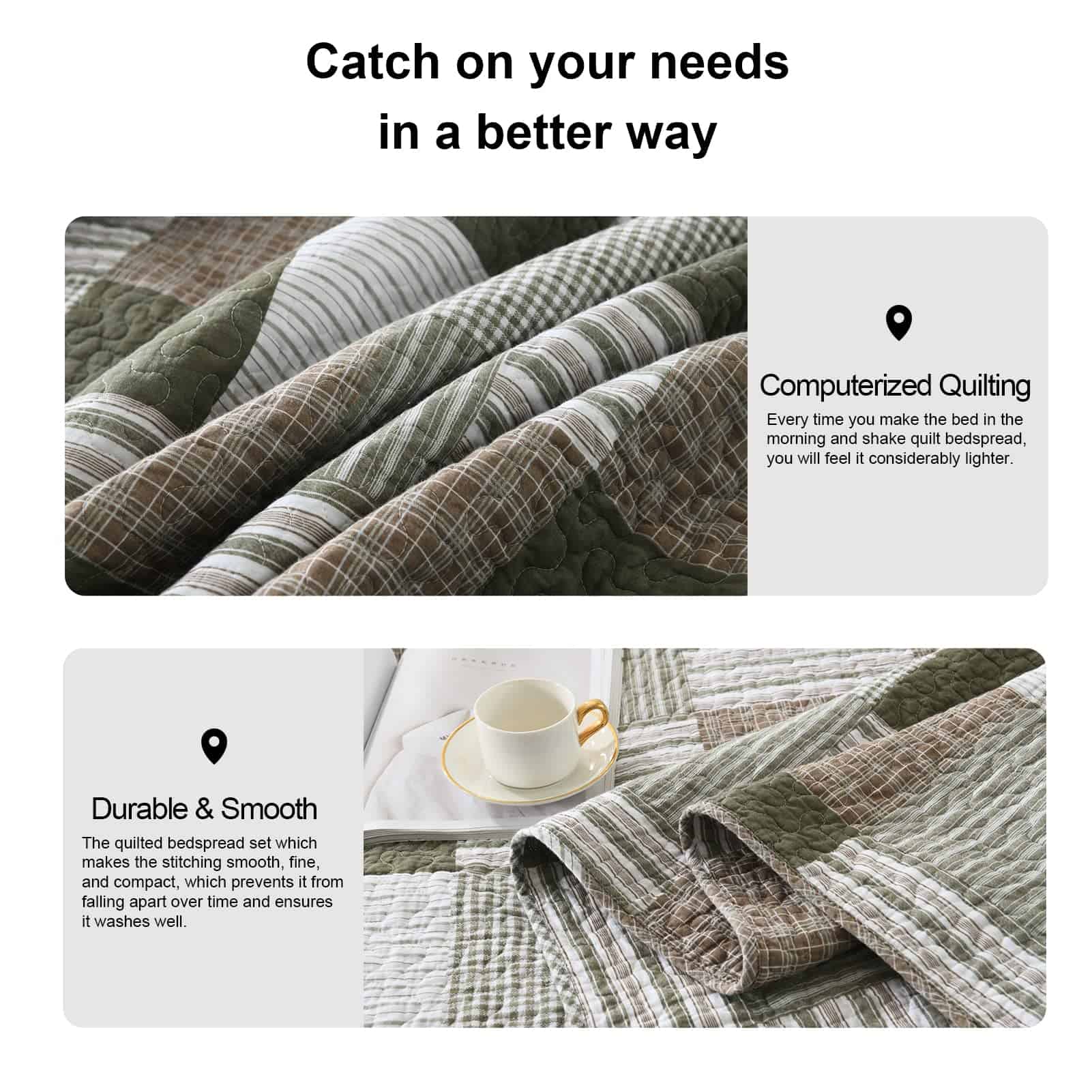 Juego de Colcha King Size PANGUSHAN 100% Algodón, Colcha a