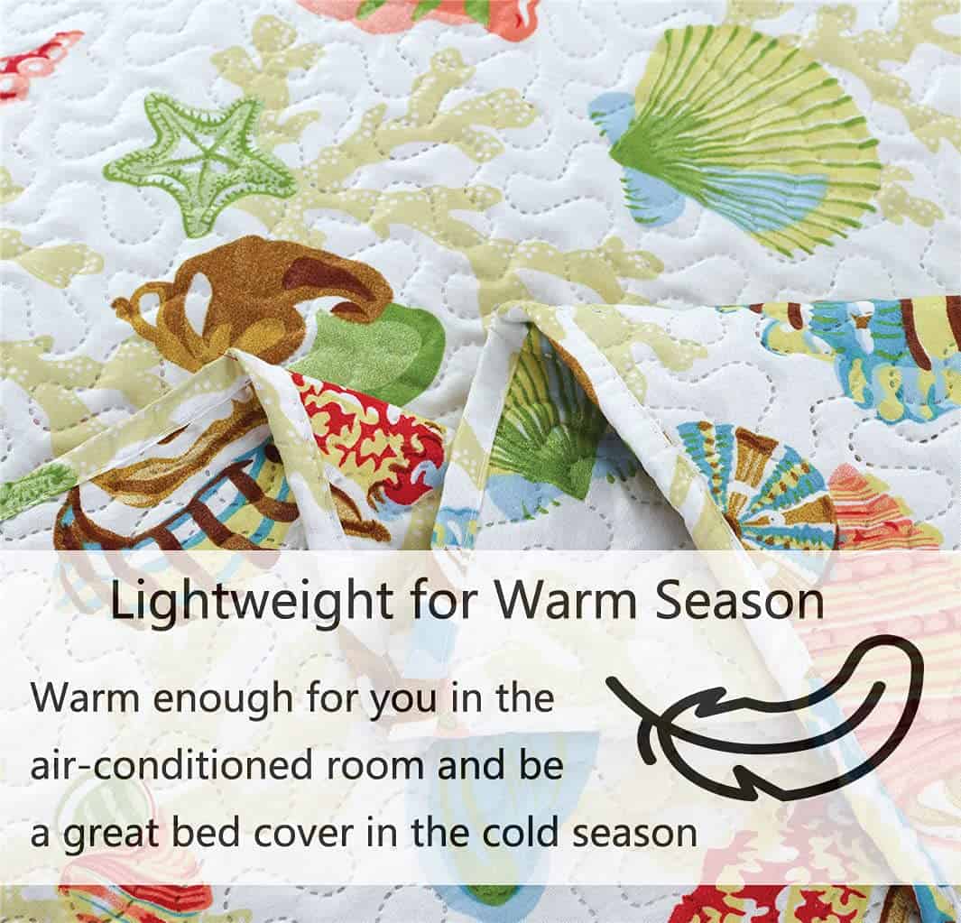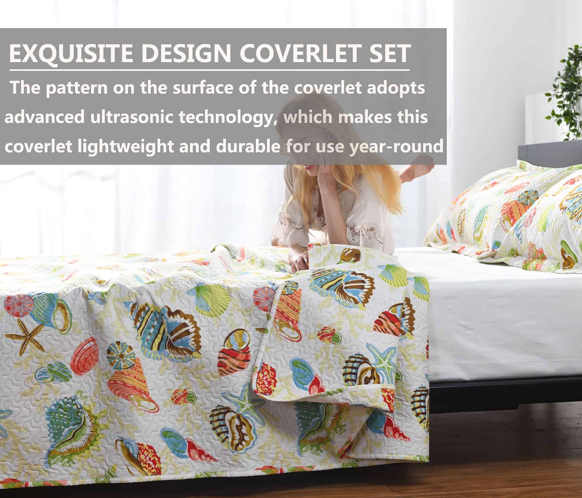 Juego de Colcha Ligera de 3 Piezas con Conchas de Mar