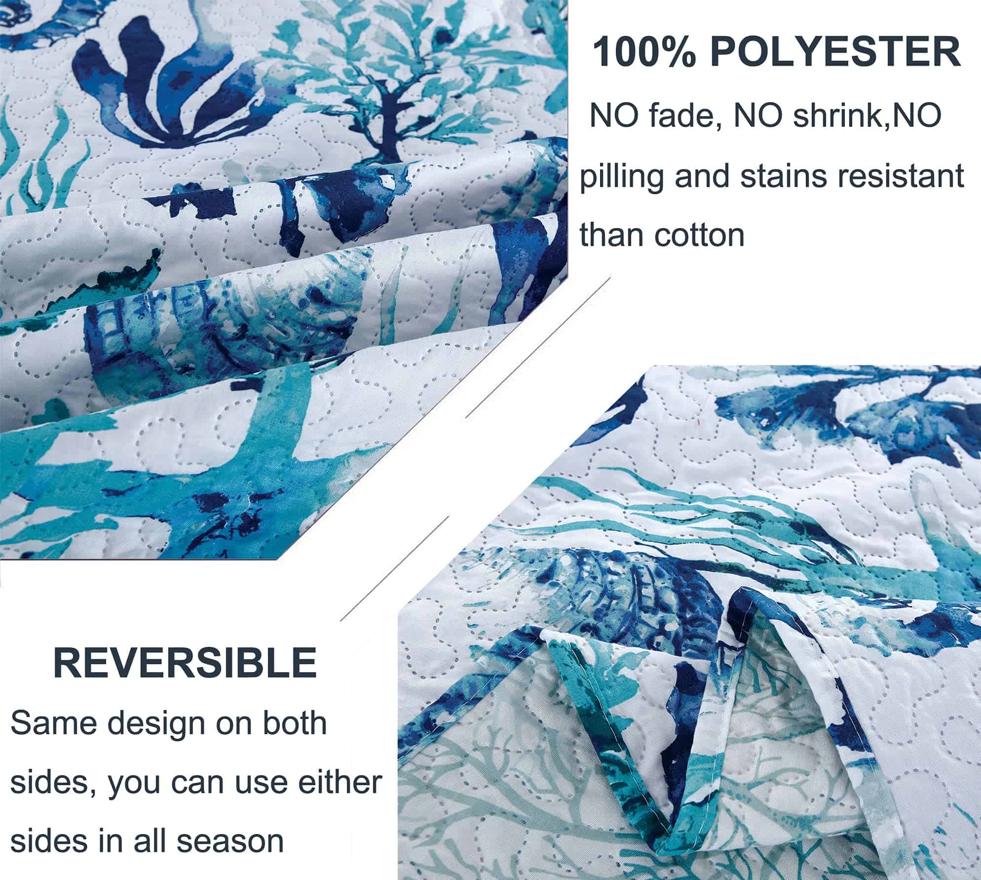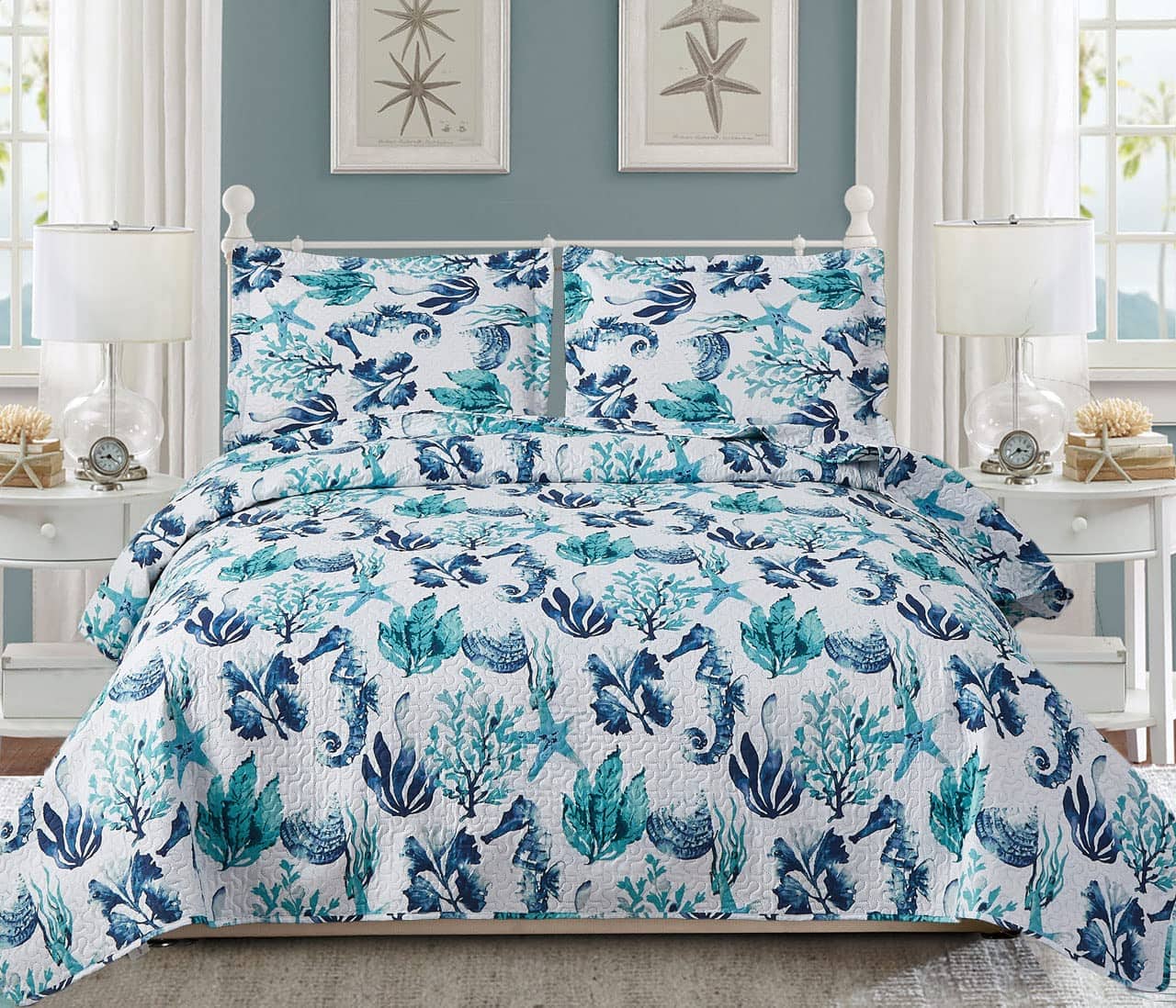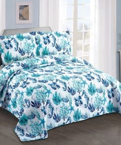 Juego de Colcha Ligera de 3 Piezas Tema Marino Verde,