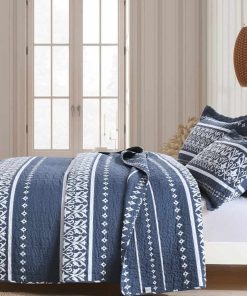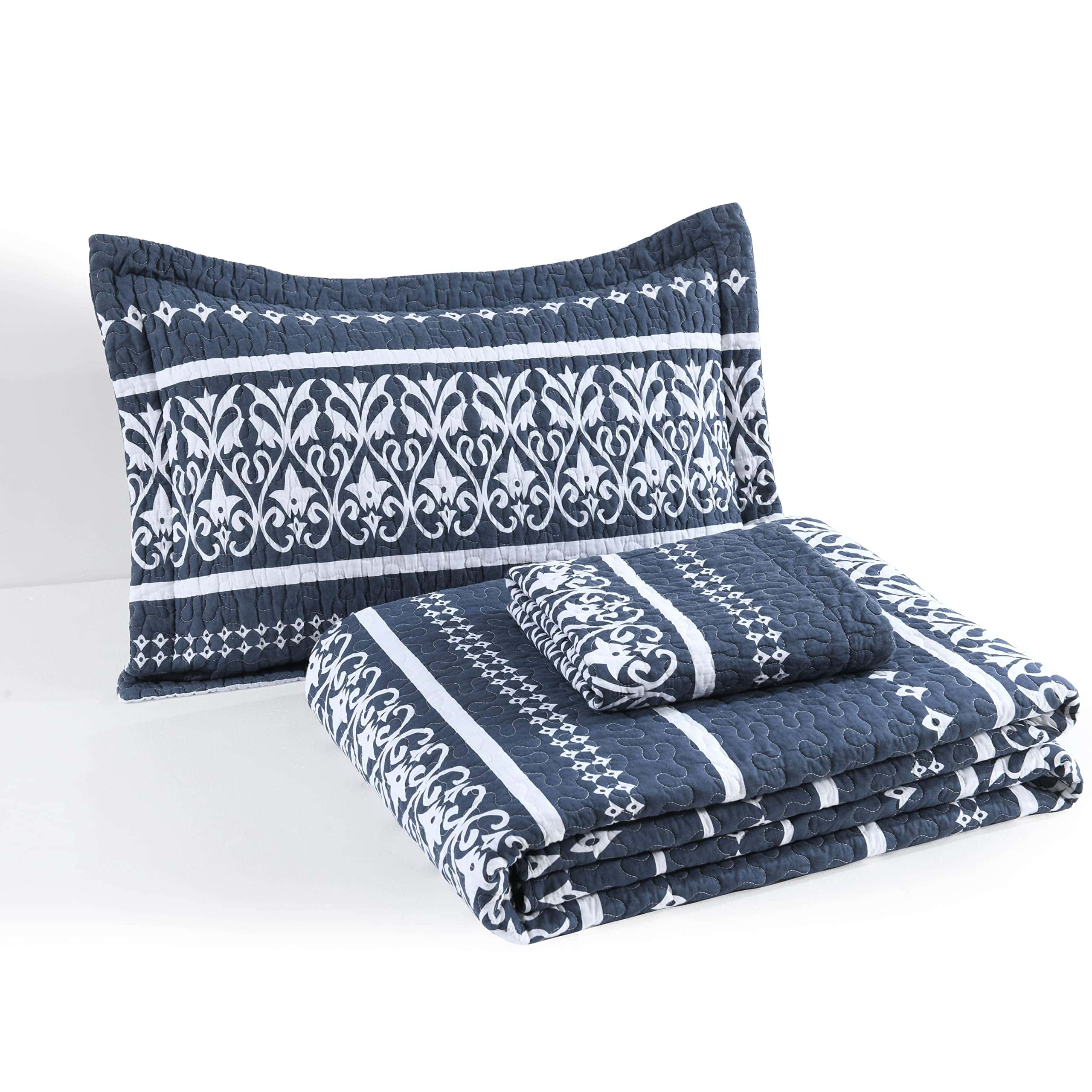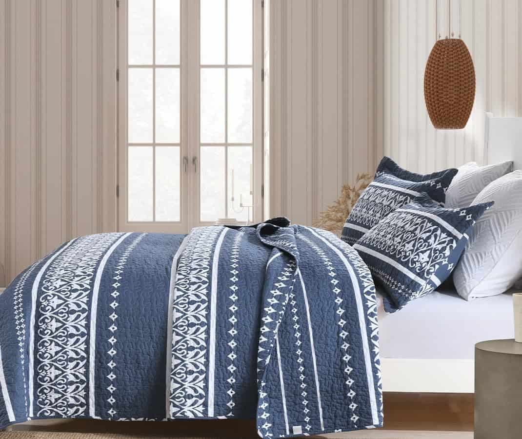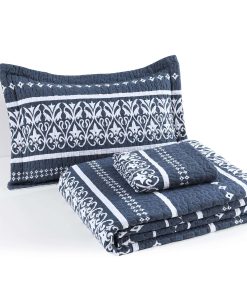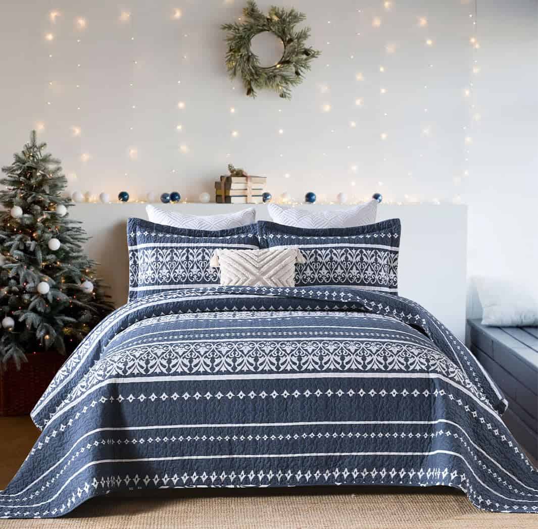 Juego de Colcha Mescore Boho King Size – Azul Marino Blanco