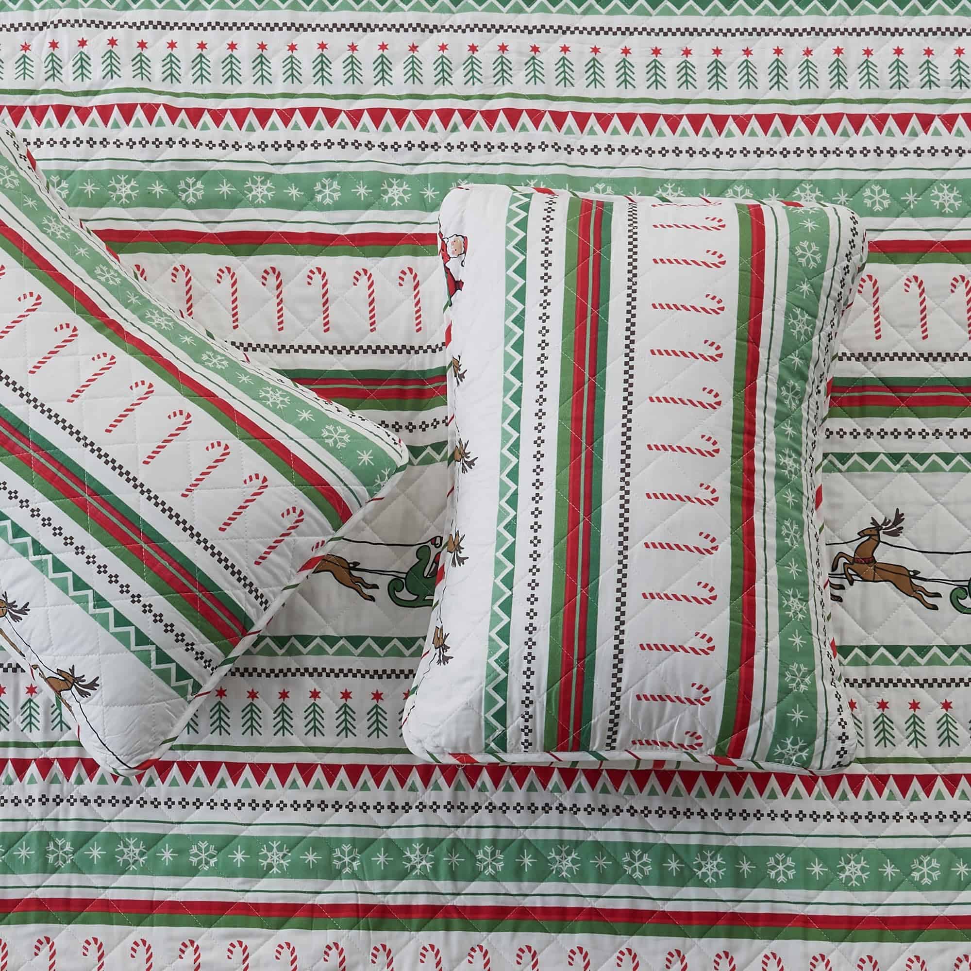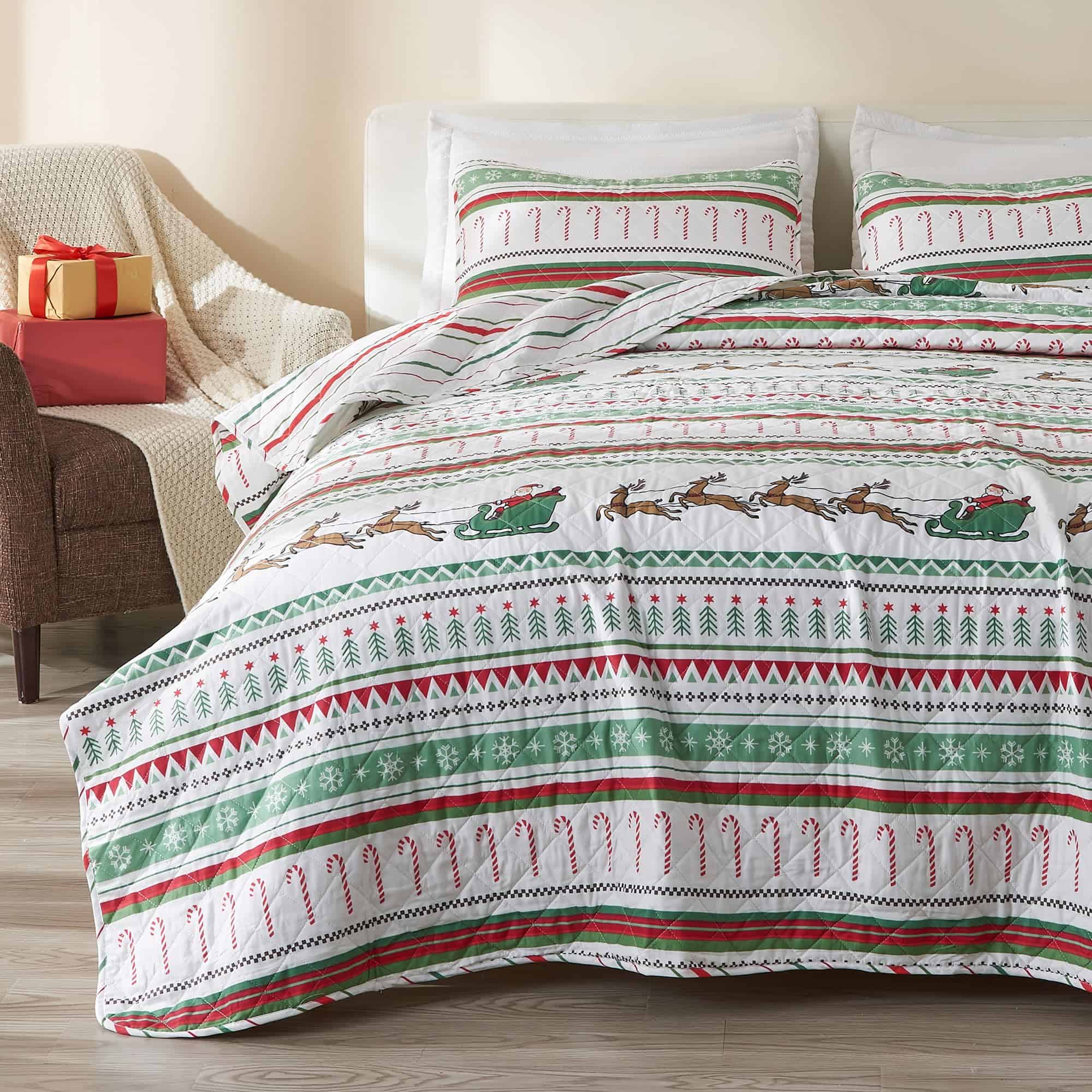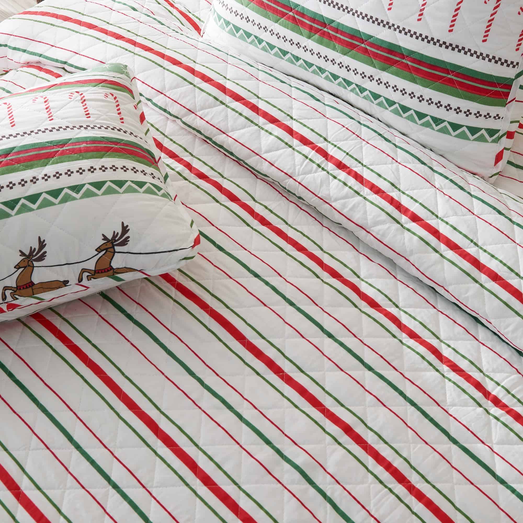 Juego de Colcha Navideña de 3 Piezas Great -Rayas Festivas