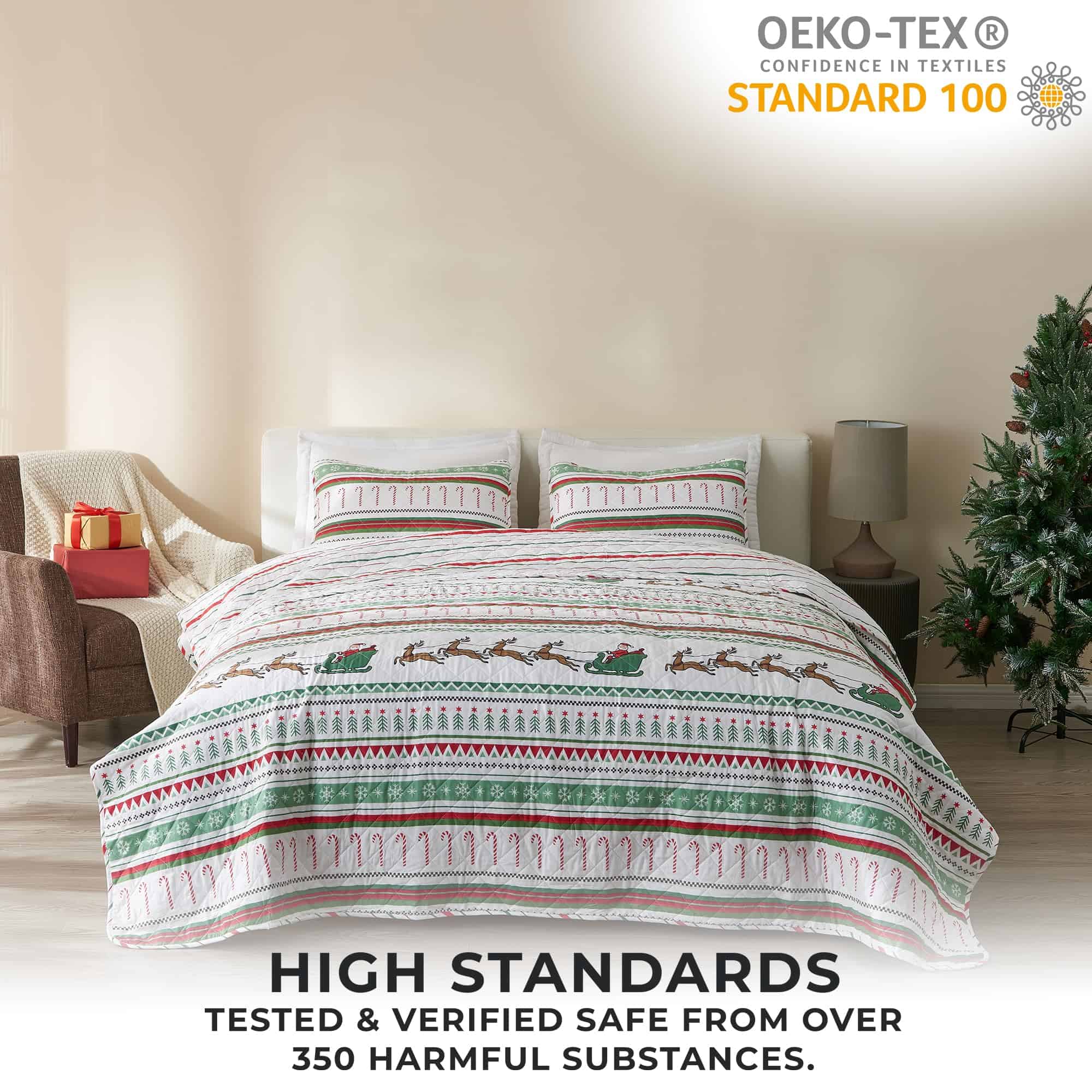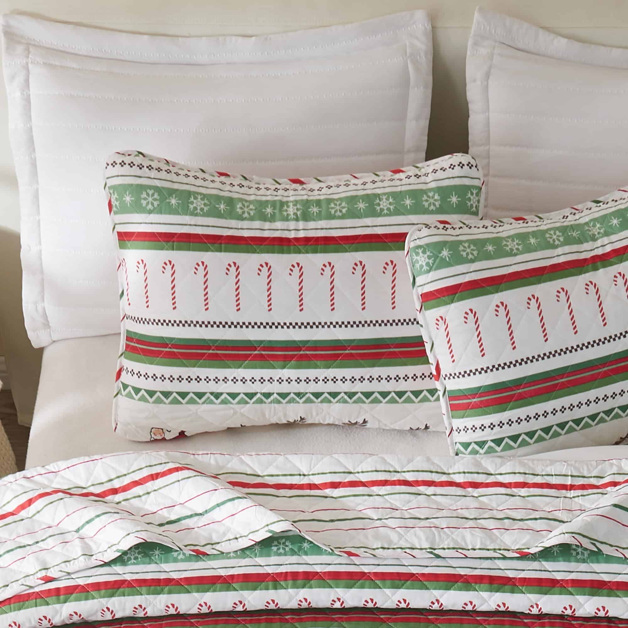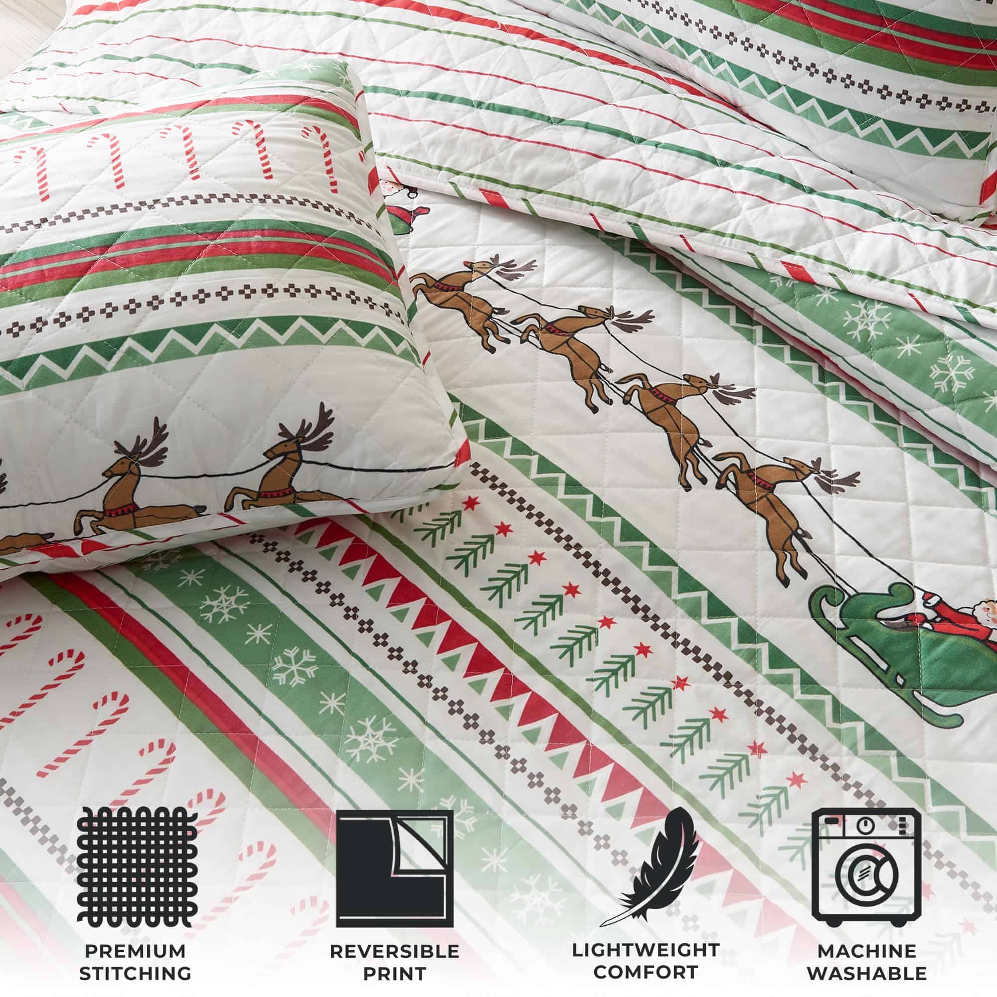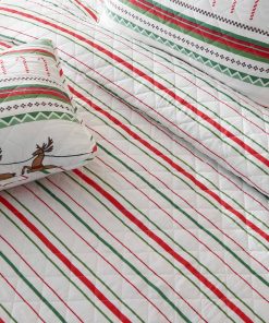 Juego de Colcha Navideña de 3 Piezas Great -Rayas Festivas