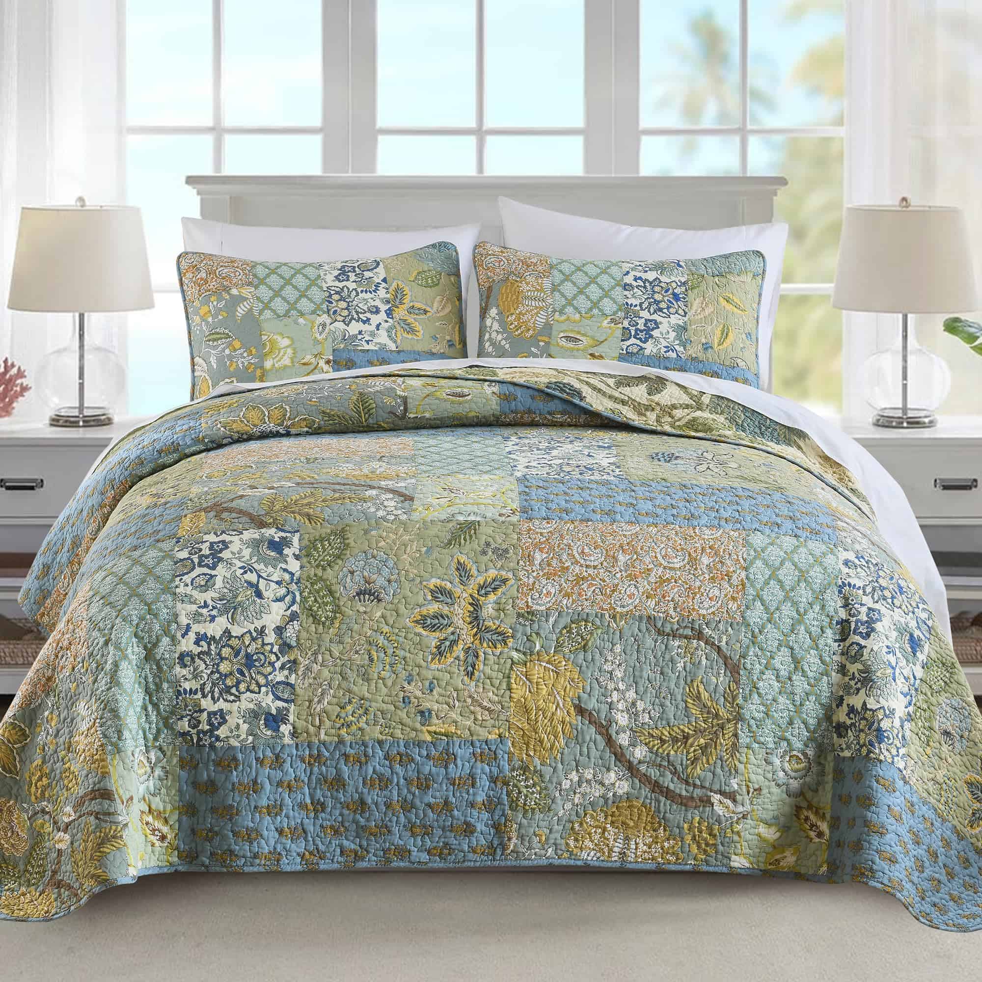Juego de Colcha NEWLAKE tamaño King, 100% algodón verde
