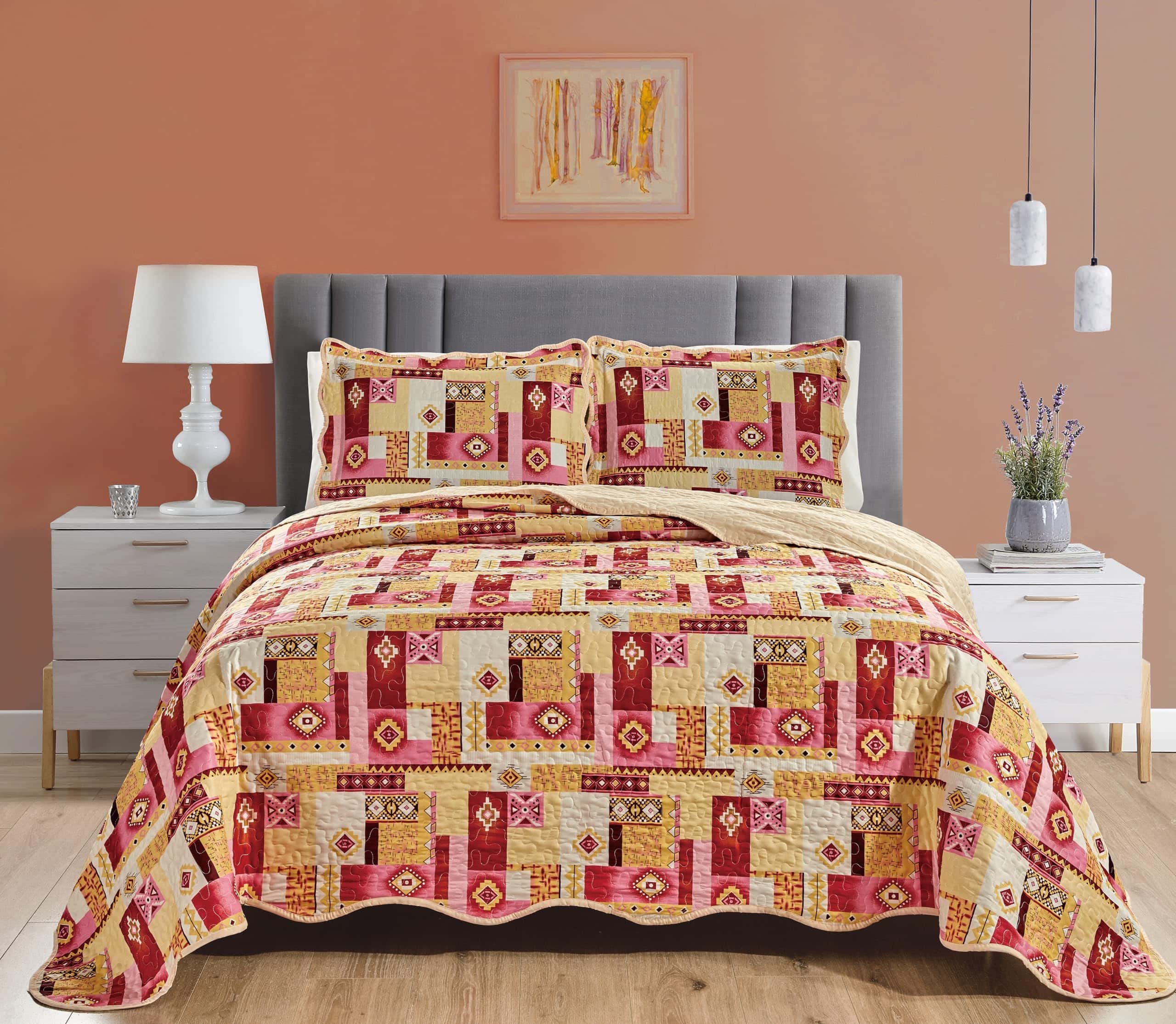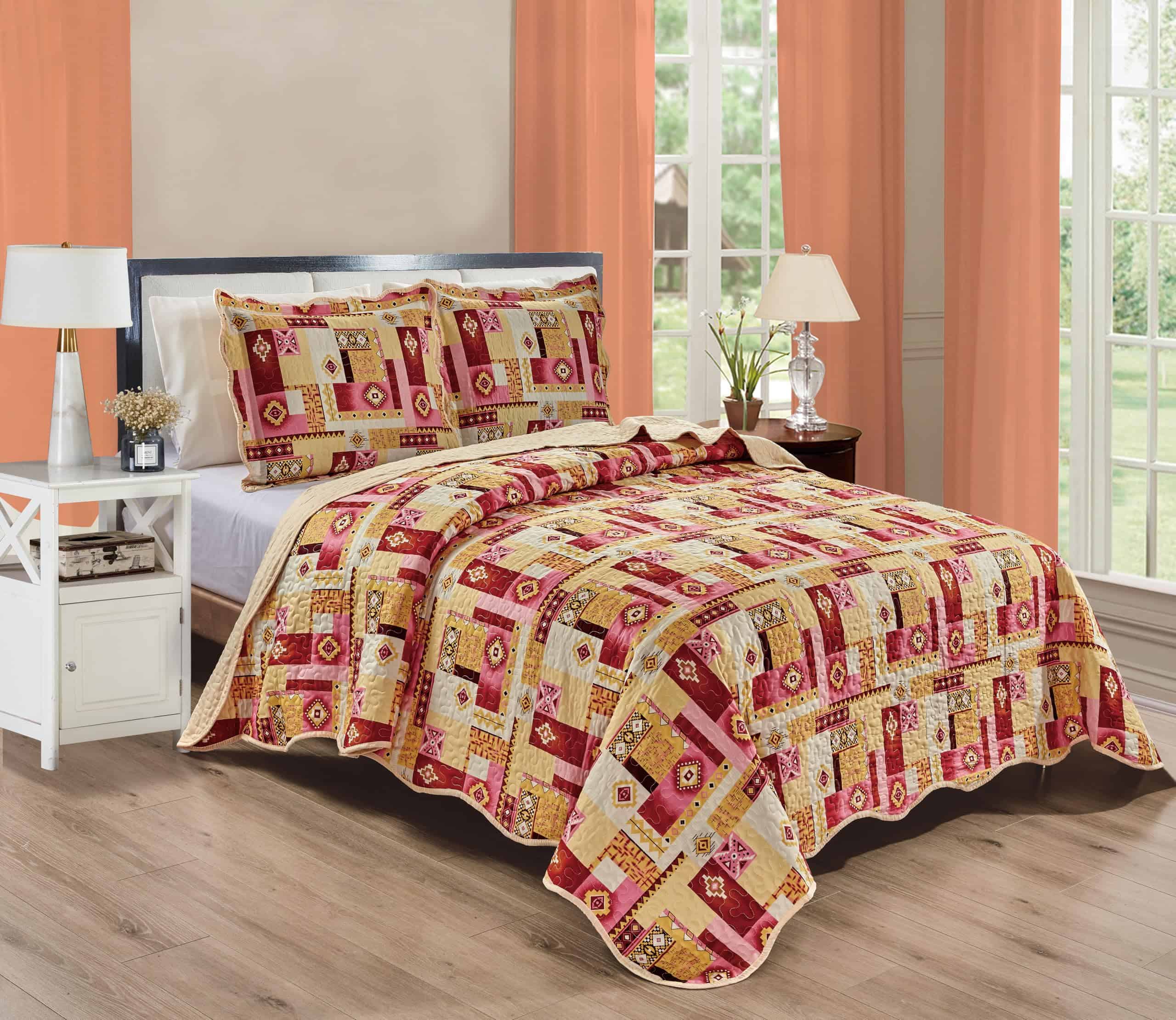 Juego de Colcha Oversized de 3 Piezas -Beige, Rojo, Dorado (