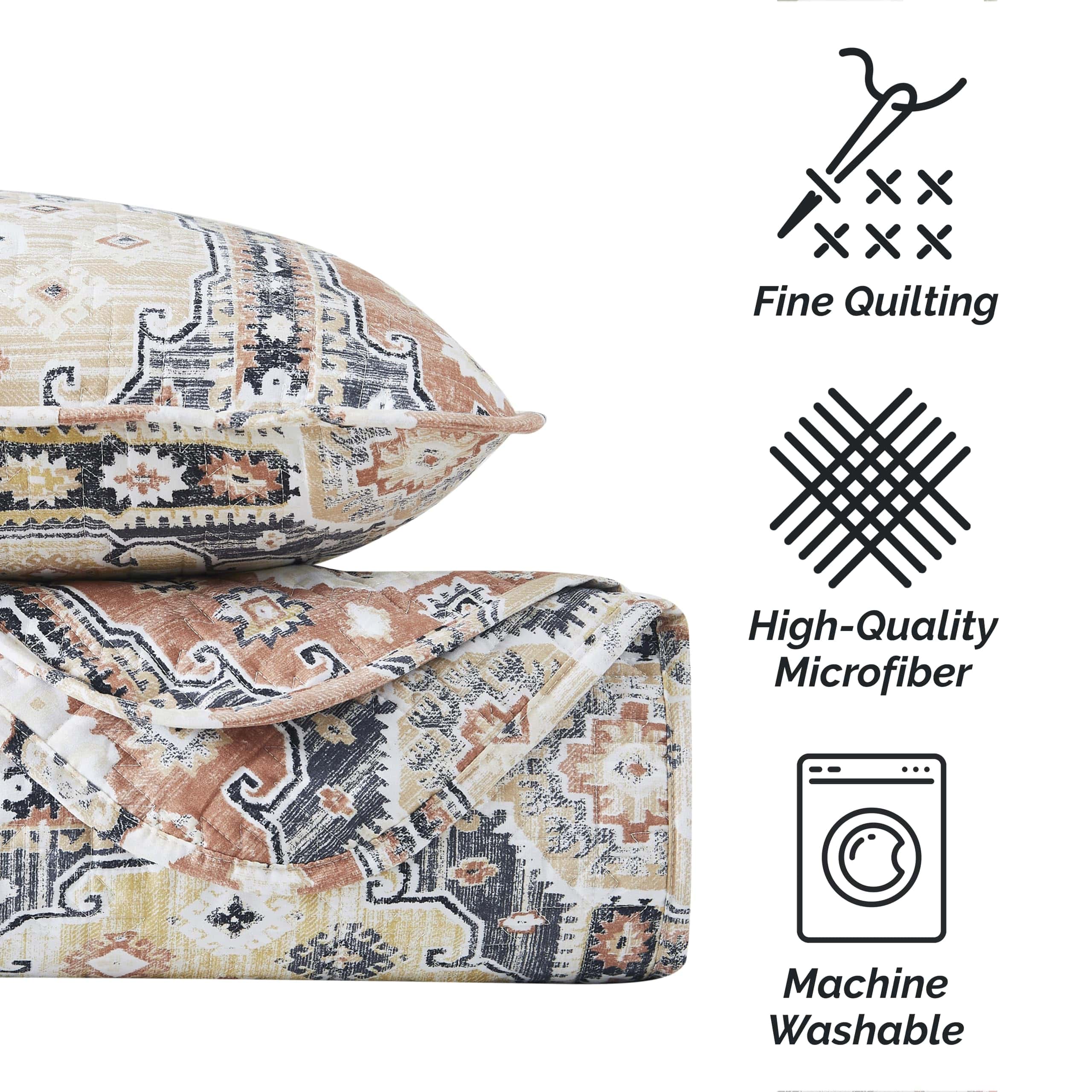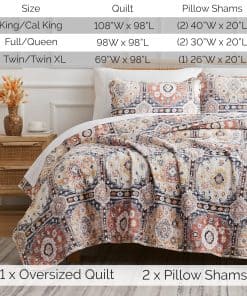Looking to update your bedroom with a quality Queen quilt bedspread without spending a lot of money Our oversized quilt sets fit the bill. These light-weight Full / Queen quilt bedding sets are high-quality, extra soft, beautifully embroidered and come with matching shams. These Full and Queen quilt sets are made with our signature microfiber soft fabric and are easy care bedding. These queen quilts for the bed are oversized. Full / Queen Size quilt set is a 3-Piece Set and Contains One Quilt: 98 inches wide x 98 inches long and Two Quilted Shams: 20 inches wide x 26 inches long. Both Quilts and Shams are quilted on both sides. Shams have an envelope enclosure and completely hide your pillows. These are oversized full-size quilt set and queen Quilt sets and made with soft microfiber fabric that continues to soften these lightweight bedspreads with each wash. High-Quality Craftsmanship: Woven with Double-Brushed soft Microfiber yarns, this quilt bedding set will continue to soften with each wash. This quilt set has tight embroidered stitching. There are so many ways these Full / Queen quilt sets can be used. This oversized Queen bedspread is perfect for any type of decor, whether it is farmhouse bedding, boho style, or modern decor. These oversized lightweight quilt sets can be used on their own or as a layer with other bedding. These Full and Queen size quilt bedding sets and bedspreads can be used in any type of decor. You can quite easily use them in simply chic urban loft setting, farmhouse bedding, French country decor, bohemian bedding style, or in a simple minimalist setting. Matching Queen size comforter set and duvet cover set is also available separately. These oversized Quilts Bedding sets are wrinkle, fade, and pilling Resistant. These Full coverlet Sets and queen coverlet sets are high-quality and made with our Signature Double-Brushed Luxurious and soft microfiber fabric, providing substantially higher smoothness and softness. These queen bedspread sets are machine washable.