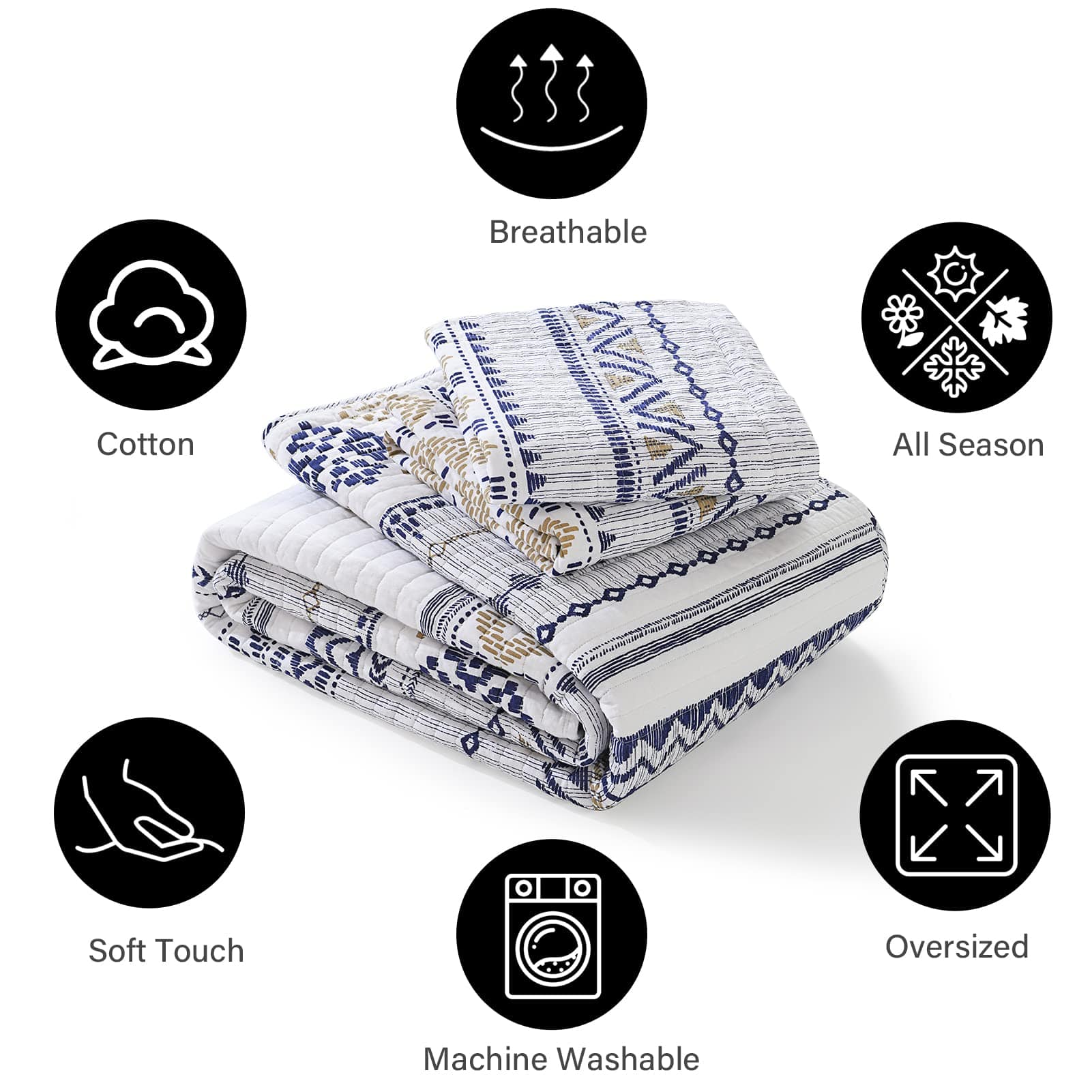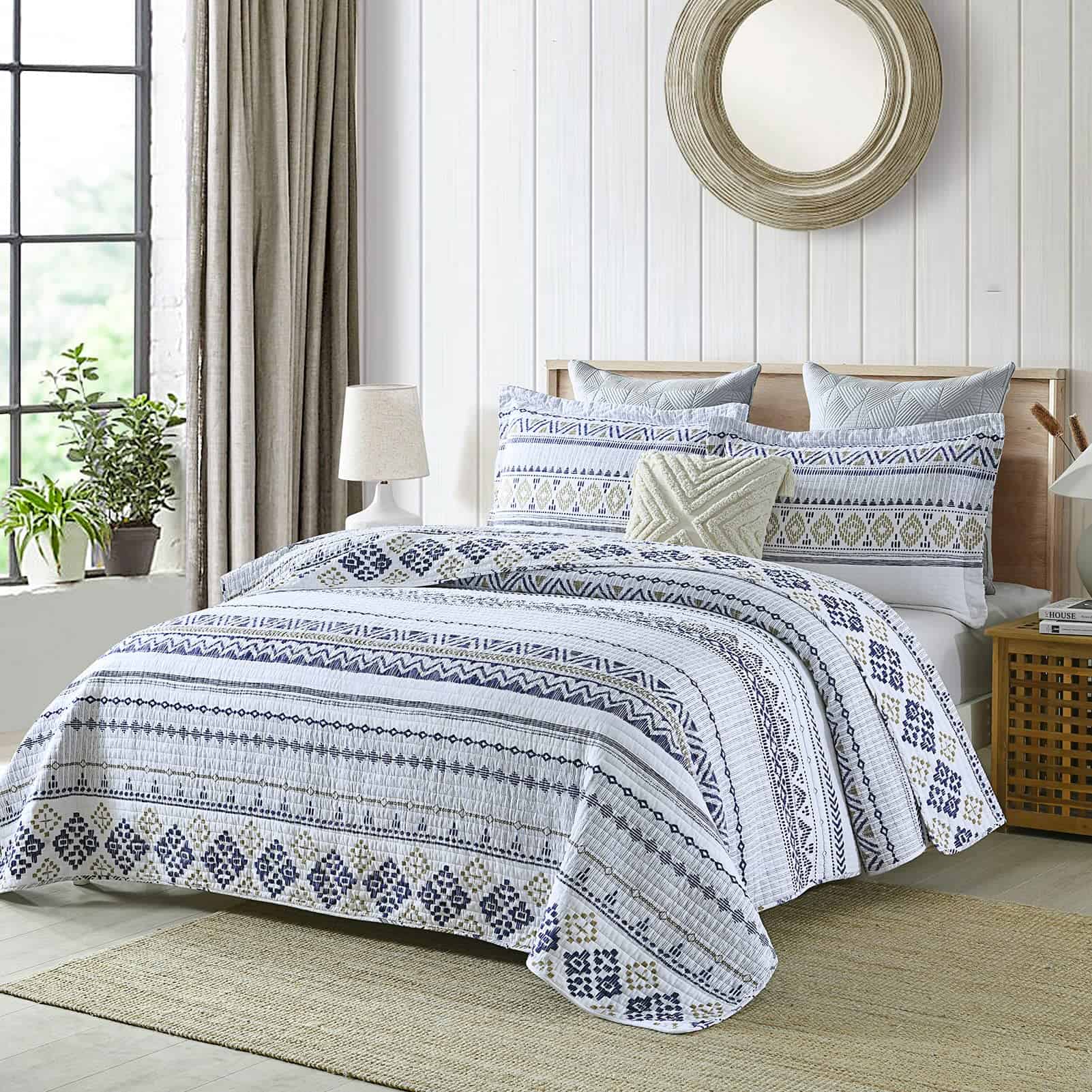 1. Colcha 100% de Algodón – Juego de colcha de algodón 100% natural, más saludable y transpirable. Suave, amigable con la piel y duradero.