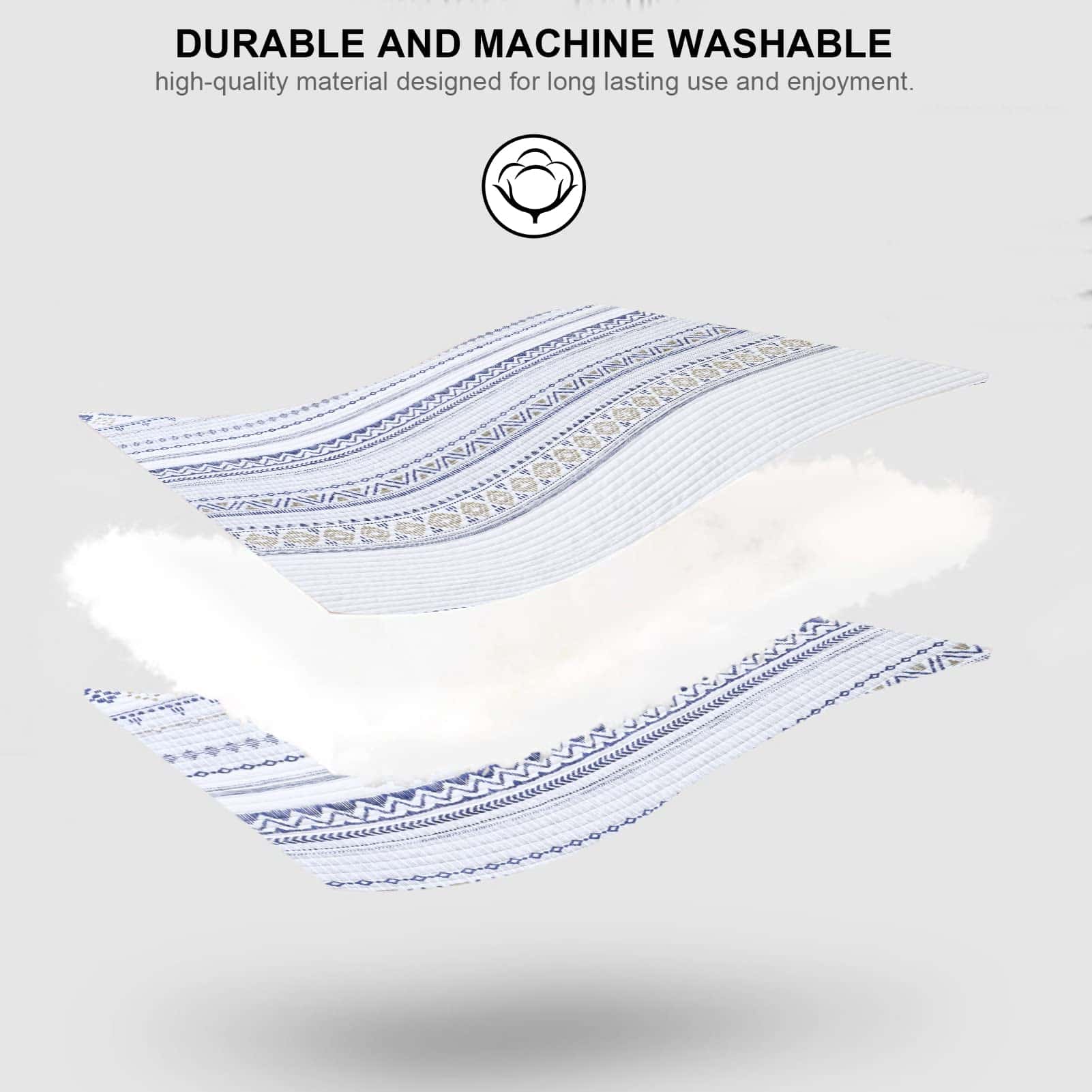 5. Duradero y Ligero – El material duradero con puntadas ordenadas y apretadas garantiza un uso a largo plazo. El diseño ligero hace que sea portátil y fácil de cuidar y lavar, si tienes mascotas, esta colcha es una buena elección.