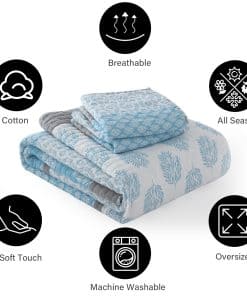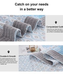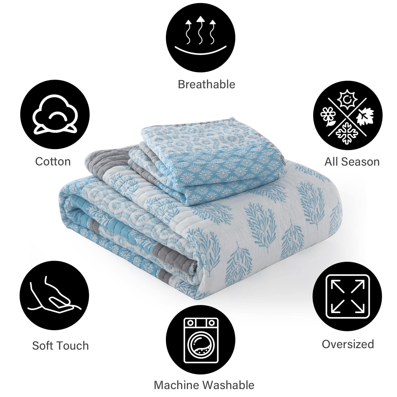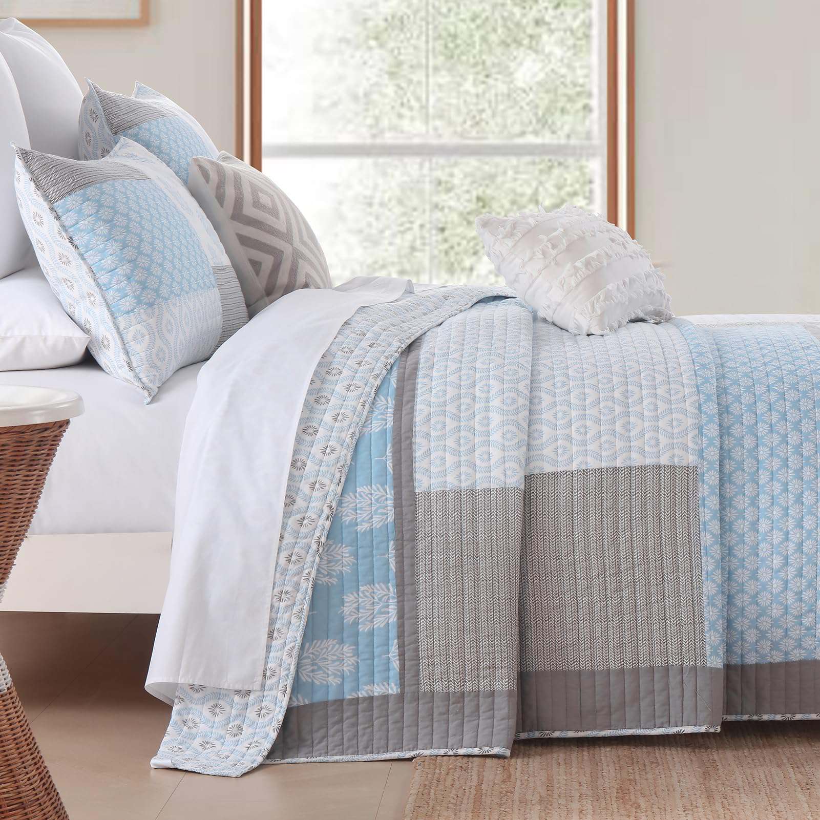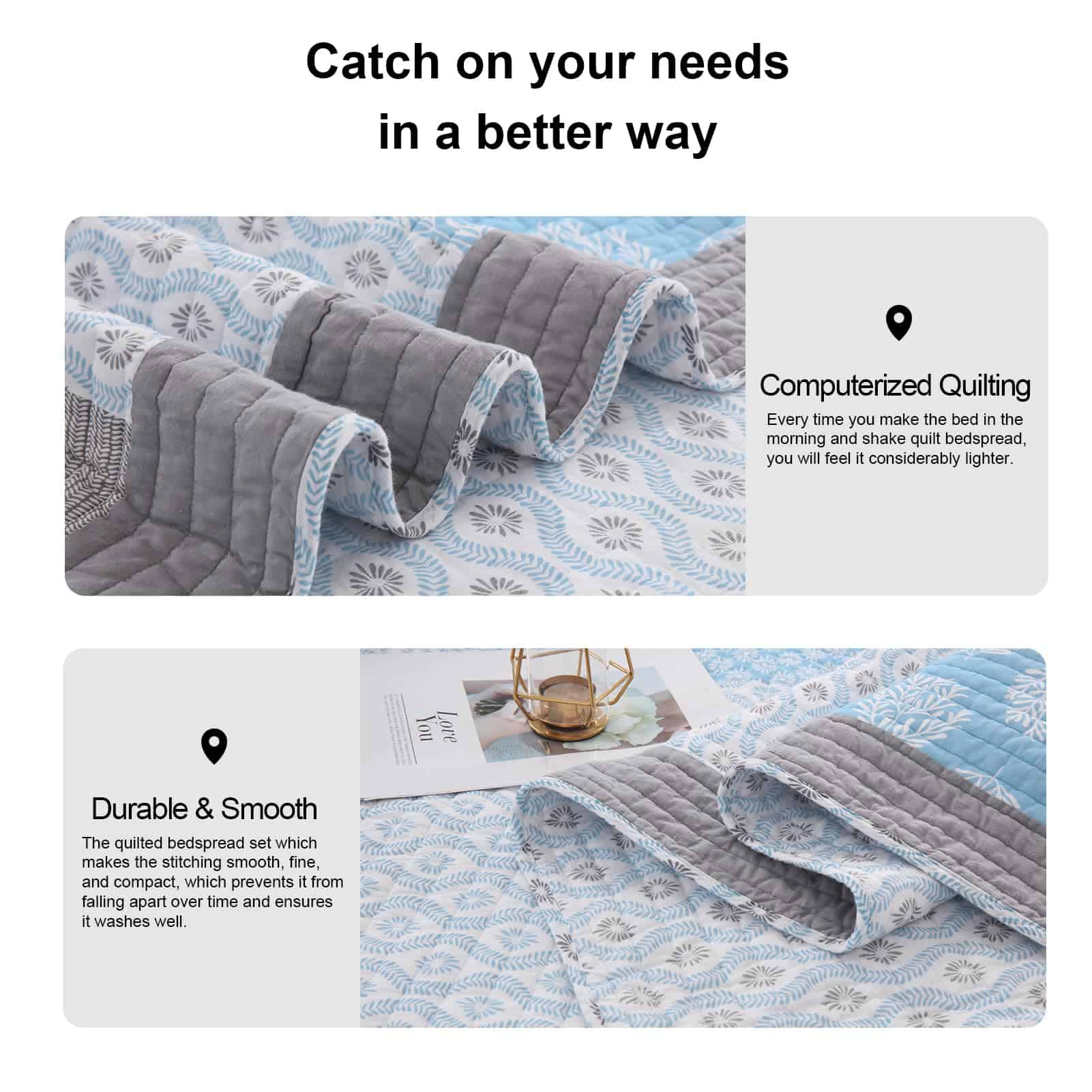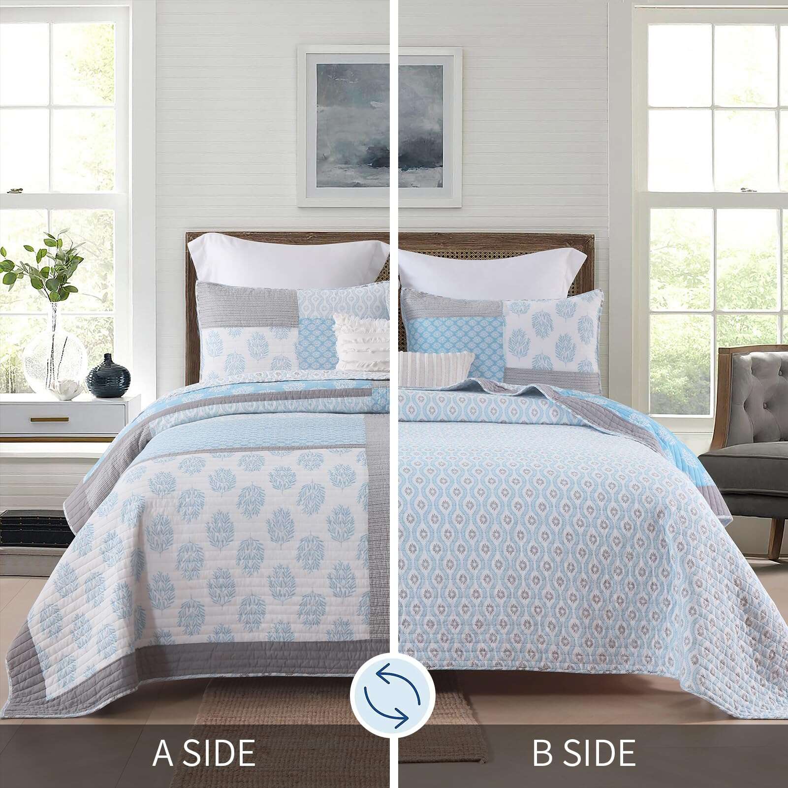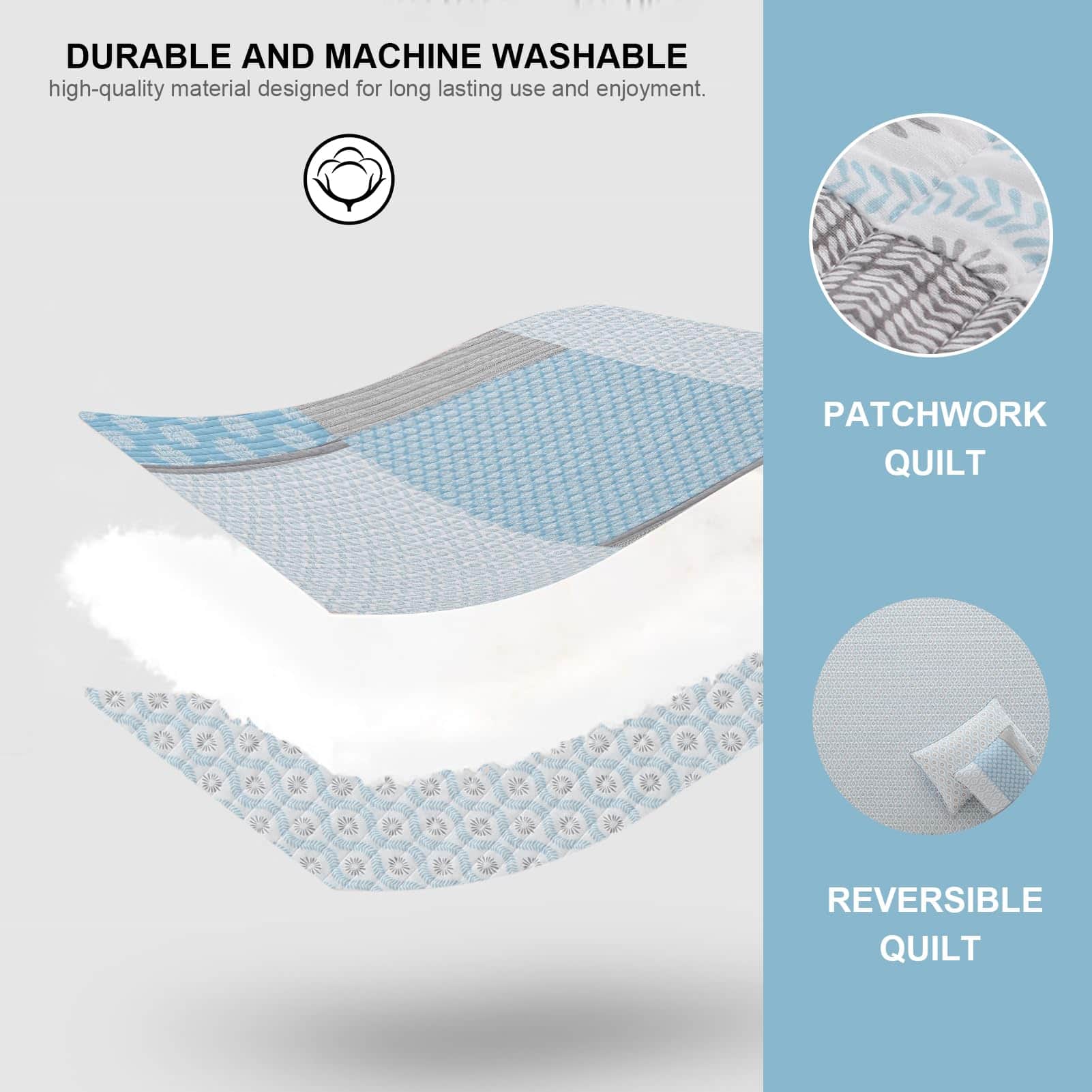 Este juego de colcha tamaño Queen de PANGUSHAN es la elección perfecta para añadir un toque acogedor a cualquier habitación. Está hecho de algodón 100% natural, lo que lo hace más transpirable y amigable con la piel. La colcha es reversible, con un diseño de patchwork floral en tonos de azul claro y gris, lo que lo hace versátil para adaptarse a diferentes estilos de decoración. Puede ser utilizado en dormitorios, salas de estar, habitaciones principales, habitaciones de invitados, estudios, dormitorios y remolques. Además, es ligero y portátil, perfecto tanto para el uso en interiores como para acampar al aire libre. Este juego de colcha es adecuado para todas las estaciones del año, ya que puede usarse solo en climas cálidos o junto con una manta o edredón en climas fríos. El juego incluye una colcha Queen de 90 x 98 pulgadas y dos fundas de almohada de 20 x 28 pulgadas. Las costuras están cuidadosamente hechas para garantizar su durabilidad y resistencia. ¡Haz la elección correcta y sorprende a tus seres queridos con este juego de colcha como regalo!