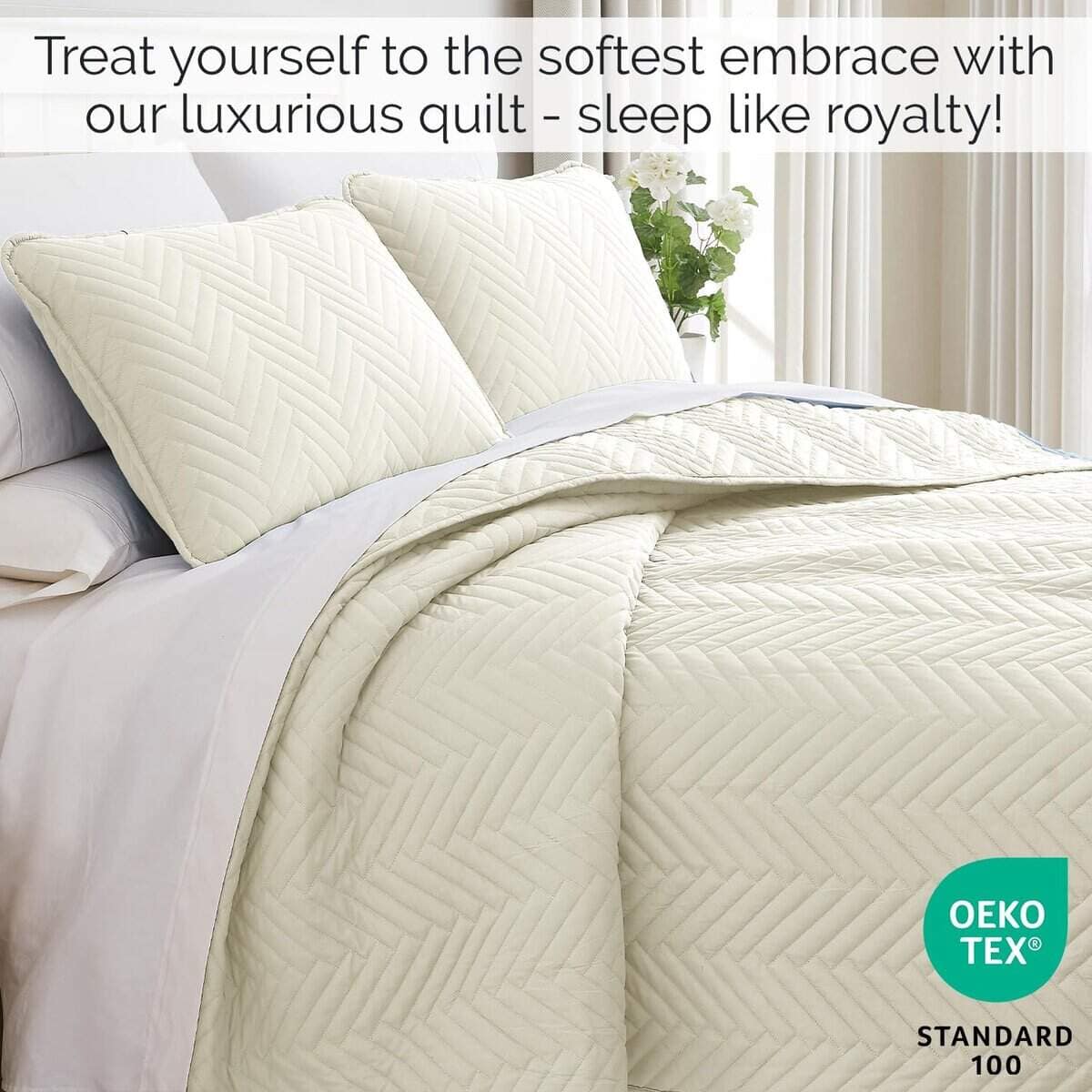 Looking to update your bedroom with a quality quilt bedding spread without Spending a lot of money Our oversized quilt sets fit the bill. These light-weight quilt bedding sets are high-quality, made with pre-wash fabric for extra softness, beautifully embroidered and comes with matching shams. These quilt sets are made with our signature microfiber soft fabric that is light weight, double-brushed for extra softness, shrinkage free, fade resistant.