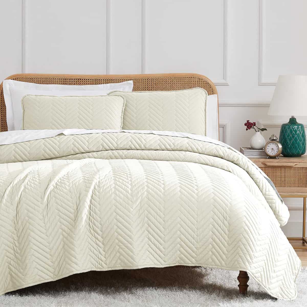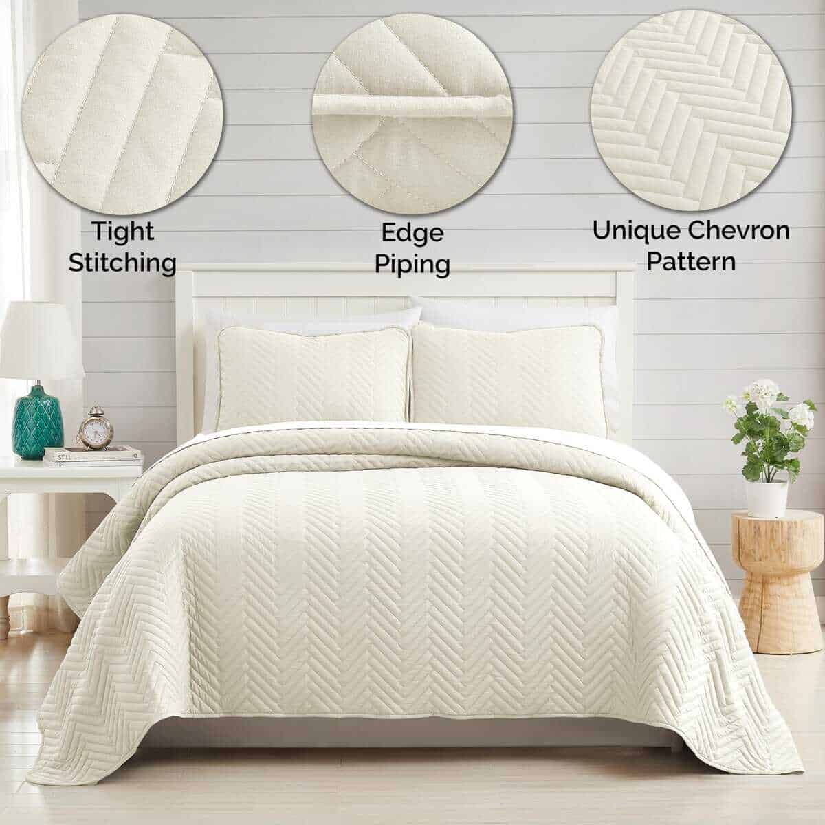 Multi-Purpose and versatile: These oversized light-weight quilt sets can be used on their own or as a layer with other bedding. These king and California king size quilt bedding sets and bedspreads can be used in any type of décor. You can quite easily use them in simply chic urban loft setting, farmhouse bedding, French country décor, bohemian bedding style, or in simple minimalist setting. It comes in a vacuum sealed box.