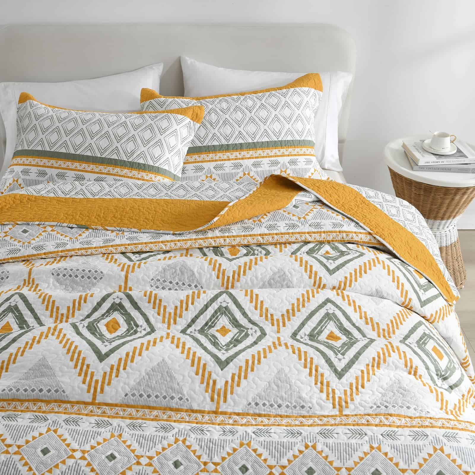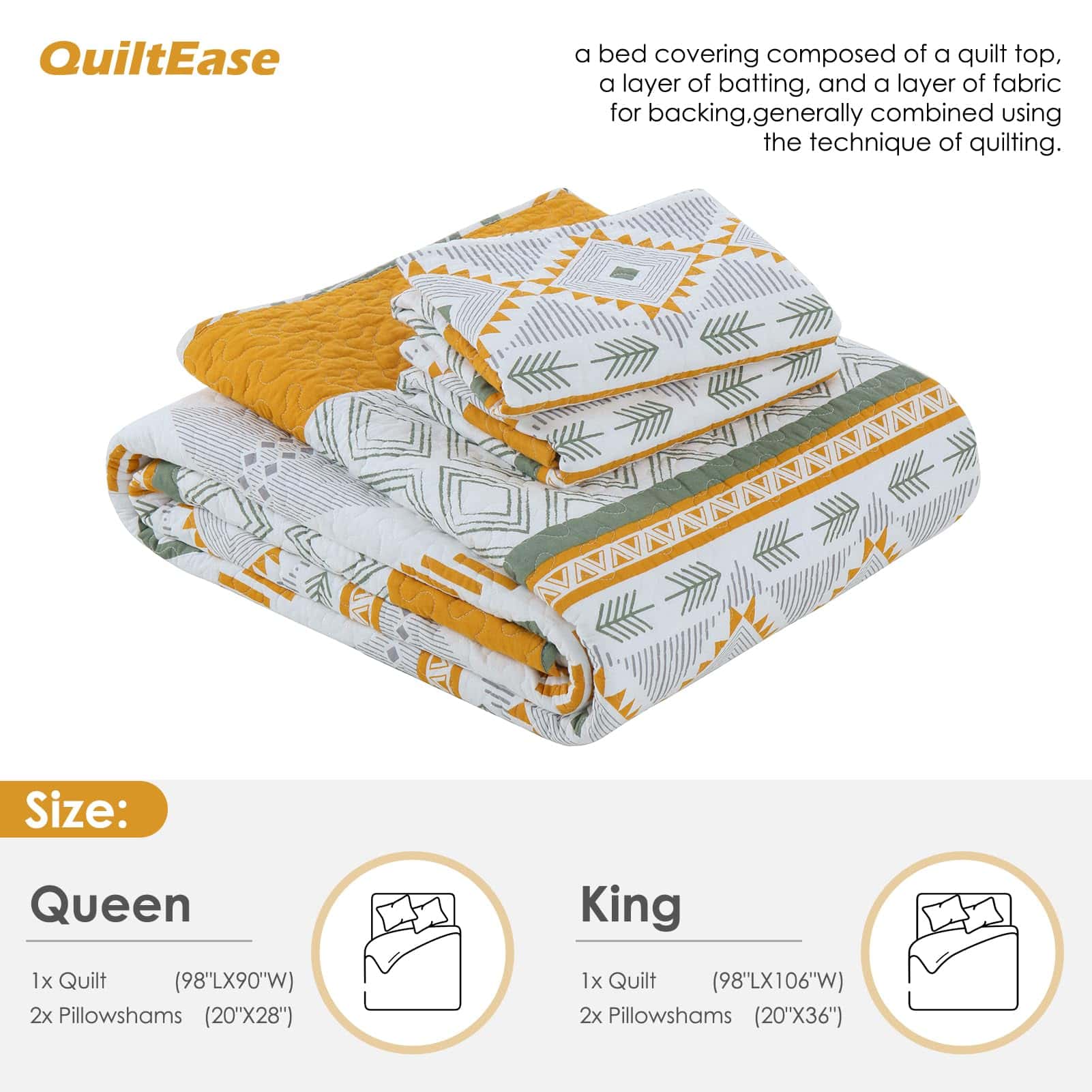 Juego de Colcha Queen QuiltEase Estilo Boho 100% Algodón
