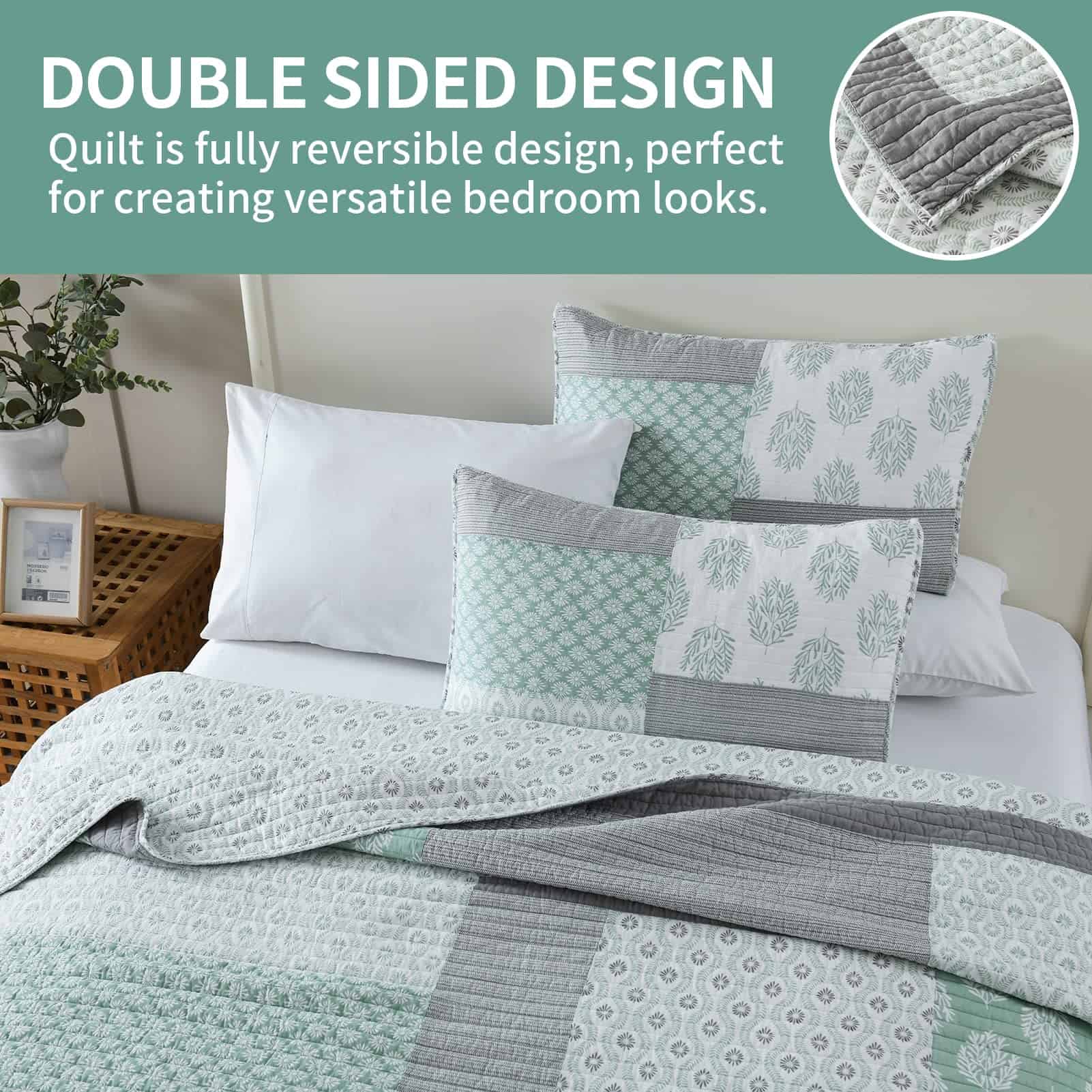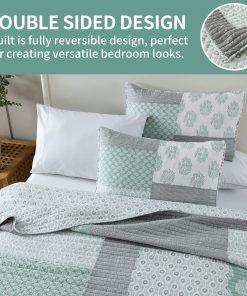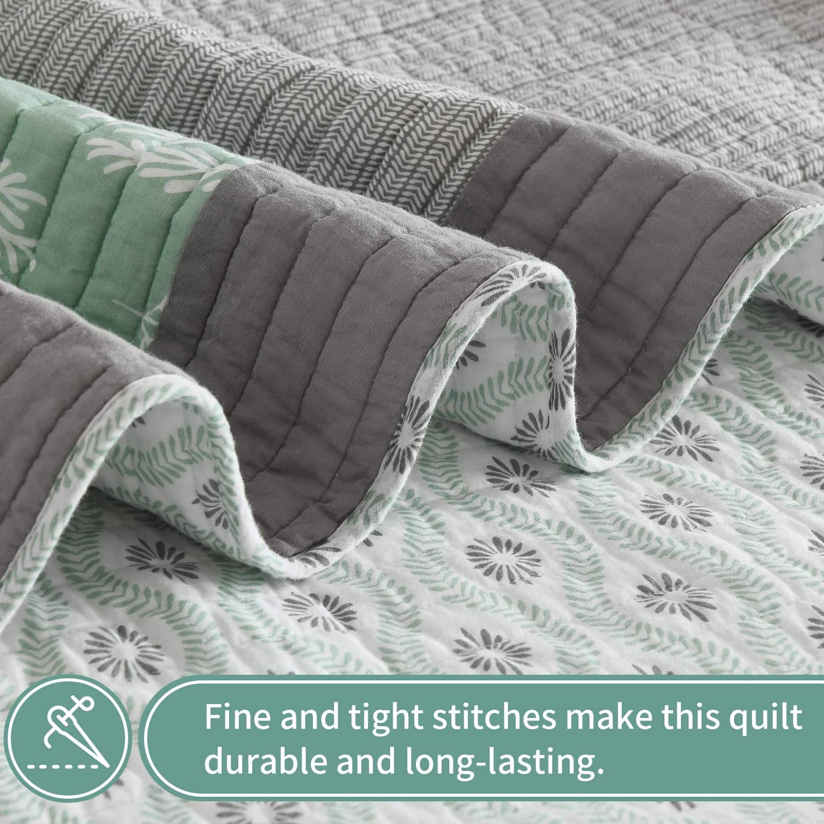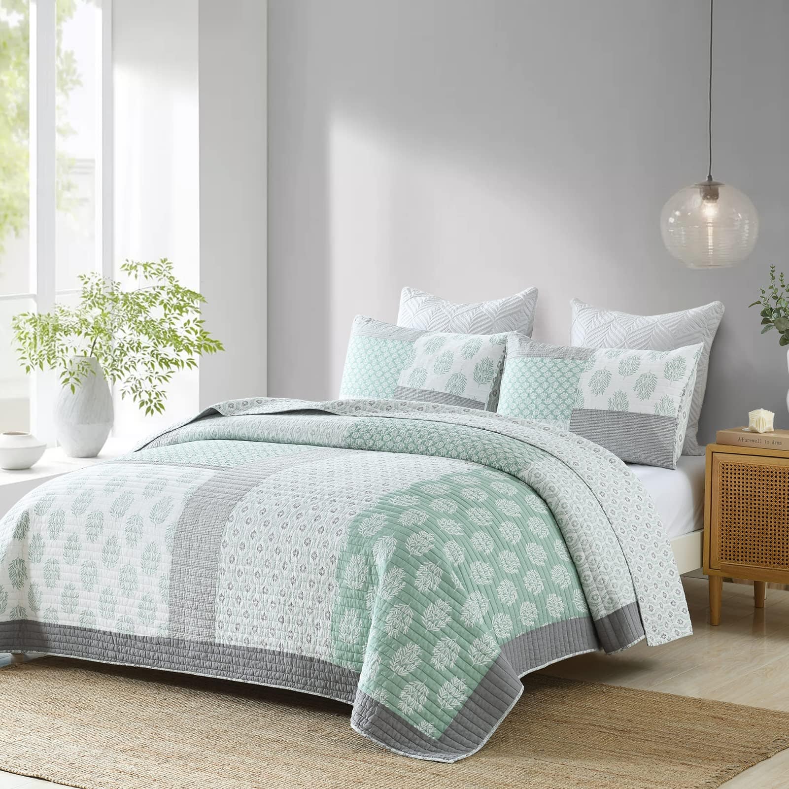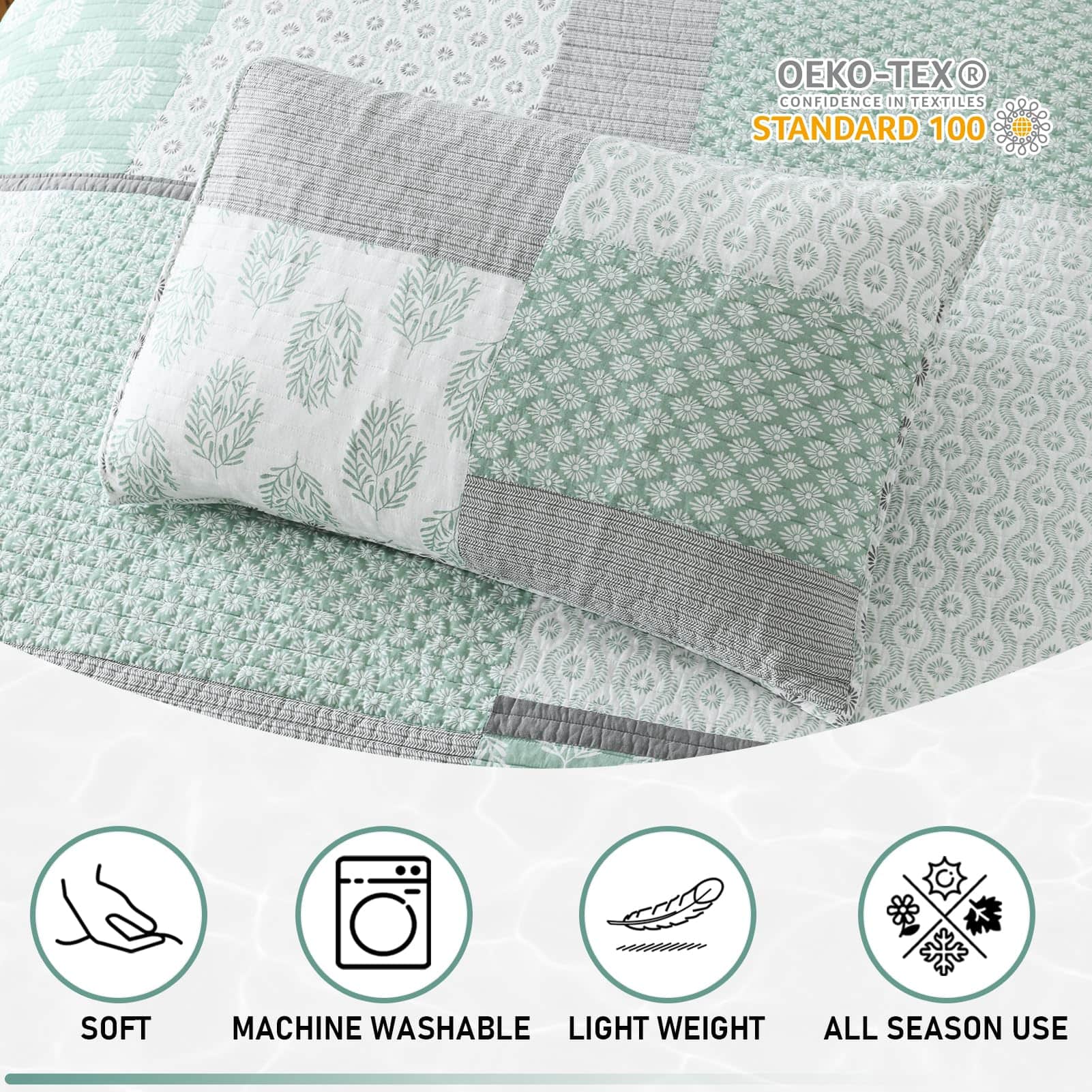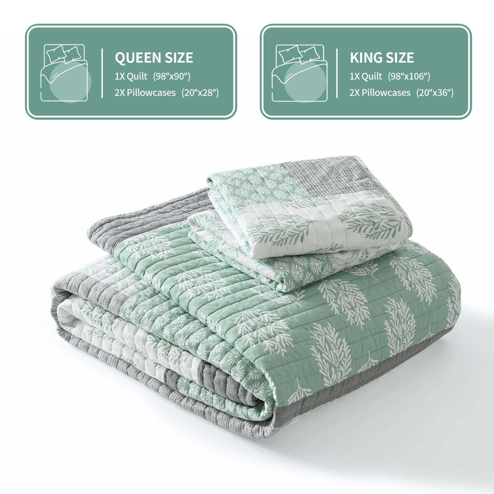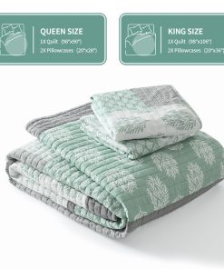 Este juego de ropa de cama incluye 1 Colcha (90″ x 98″) + 2 Fundas de Almohada (20″ x 28″). Un set completo puede simplificar su proceso de selección y mejorar el atractivo estético general y la coherencia estilística de su ropa de cama. Lave la colcha en frío por separado. Seque al aire o en secadora a baja temperatura. Evite usar blanqueador para mantener su calidad. Siga estos pasos para mantener su frescura y belleza duraderas. Nuestros juegos de ropa de cama han pasado la certificación OEKO-TEX Standard 100, lo que garantiza que los productos están libres de sustancias nocivas, lo que le permite usarlos con tranquilidad. Si tiene alguna pregunta sobre nuestros juegos de colchas, no dude en contactarnos. Responderemos a sus consultas lo antes posible y le brindaremos un servicio de alta calidad.