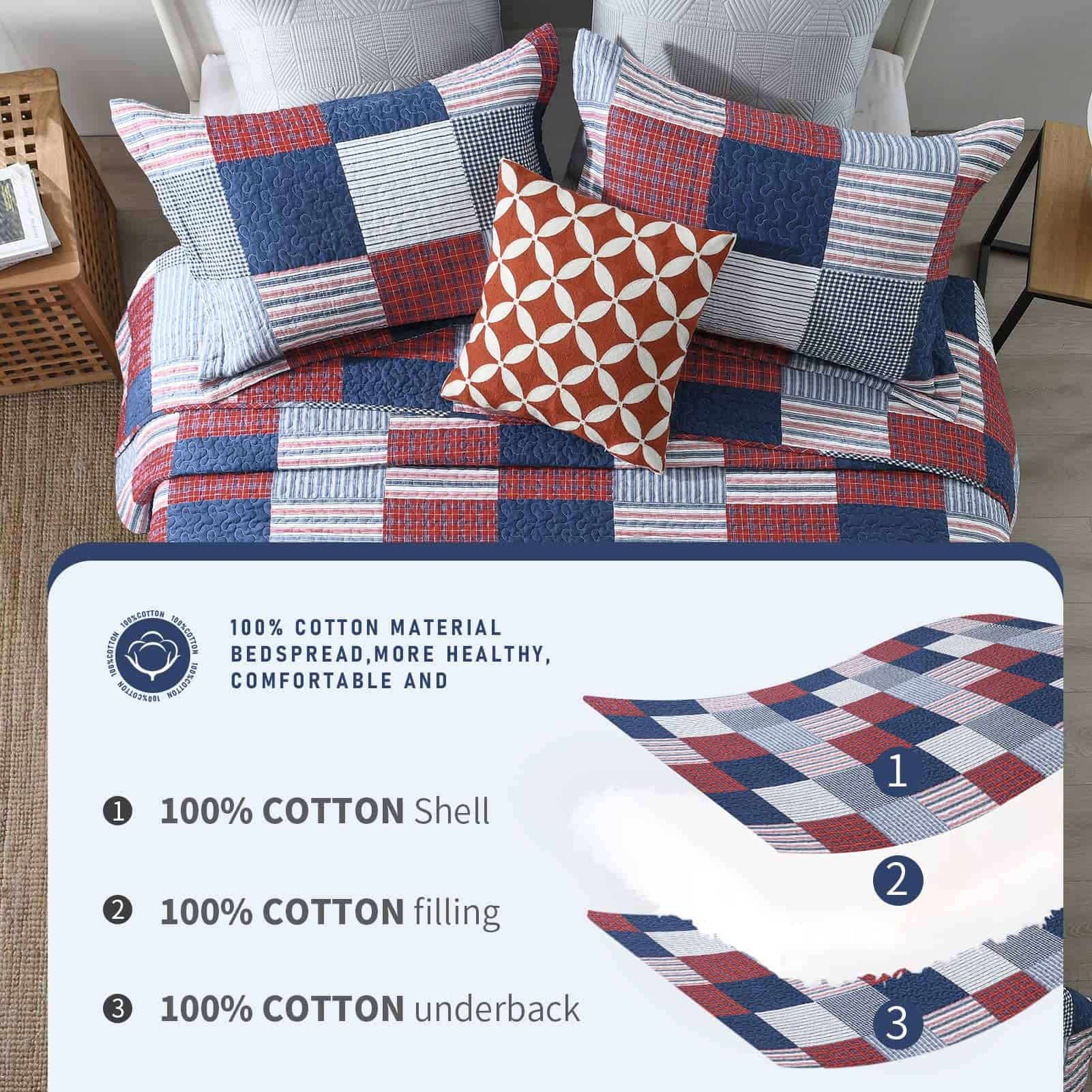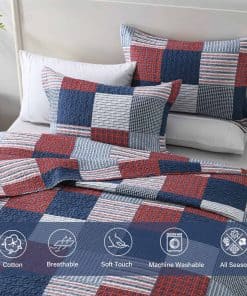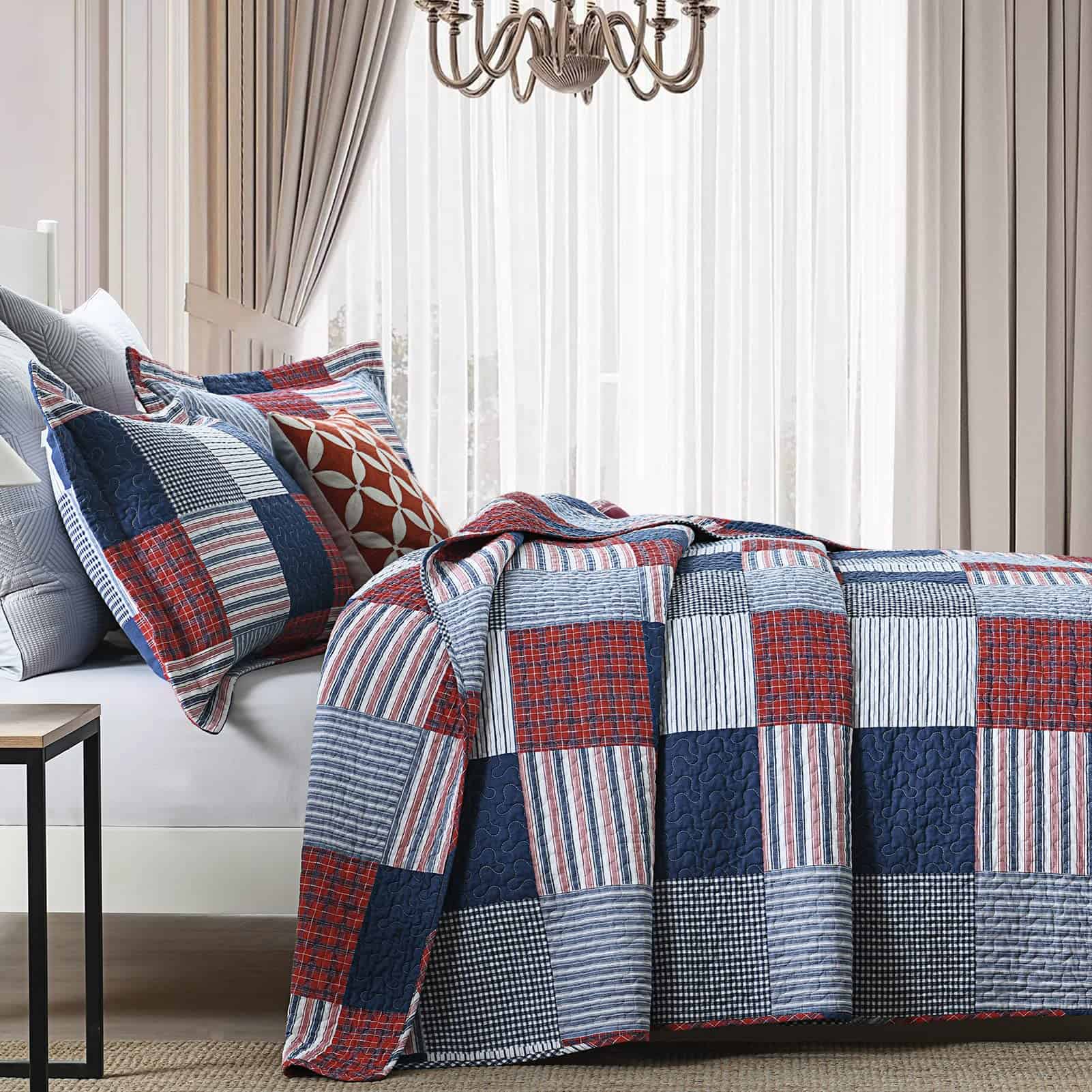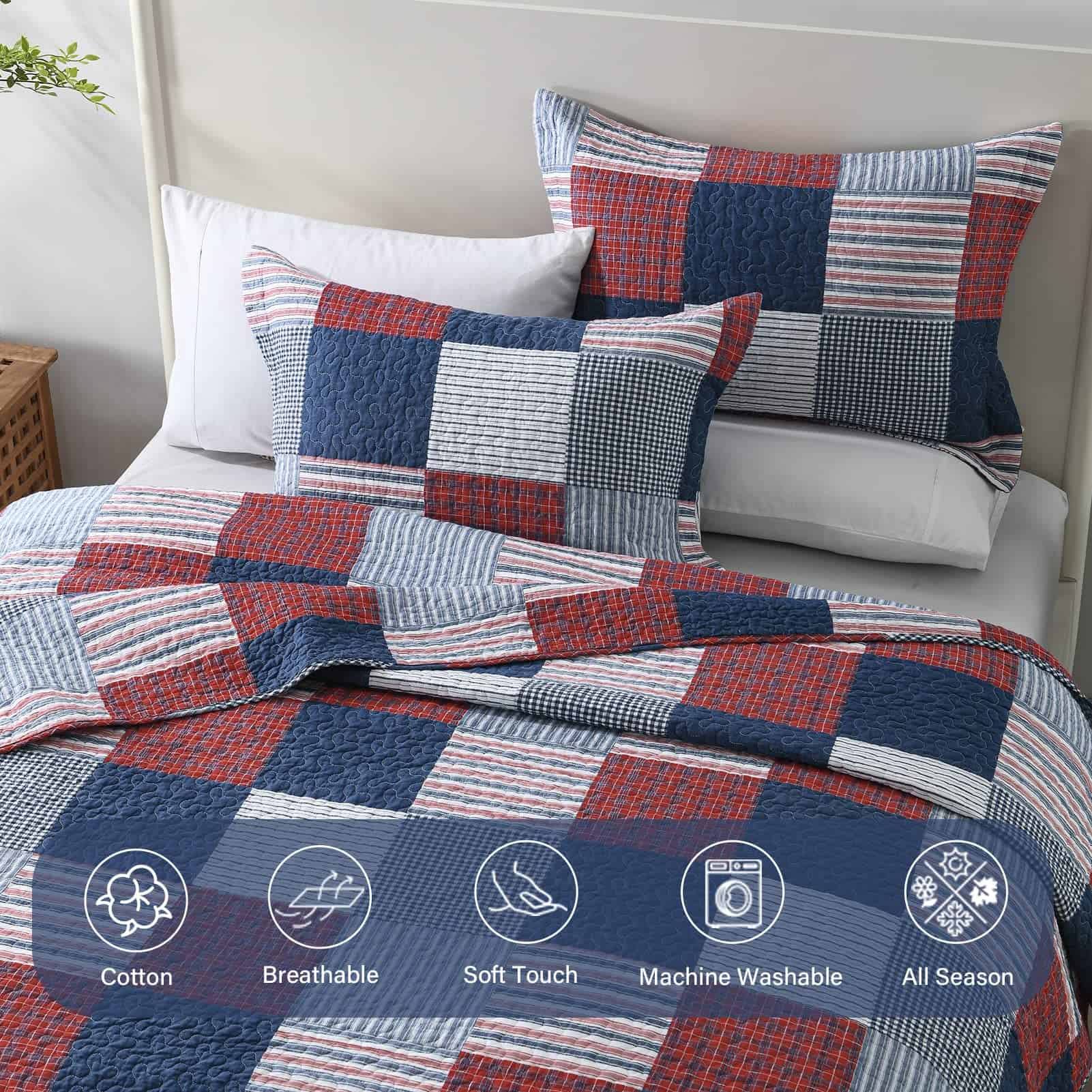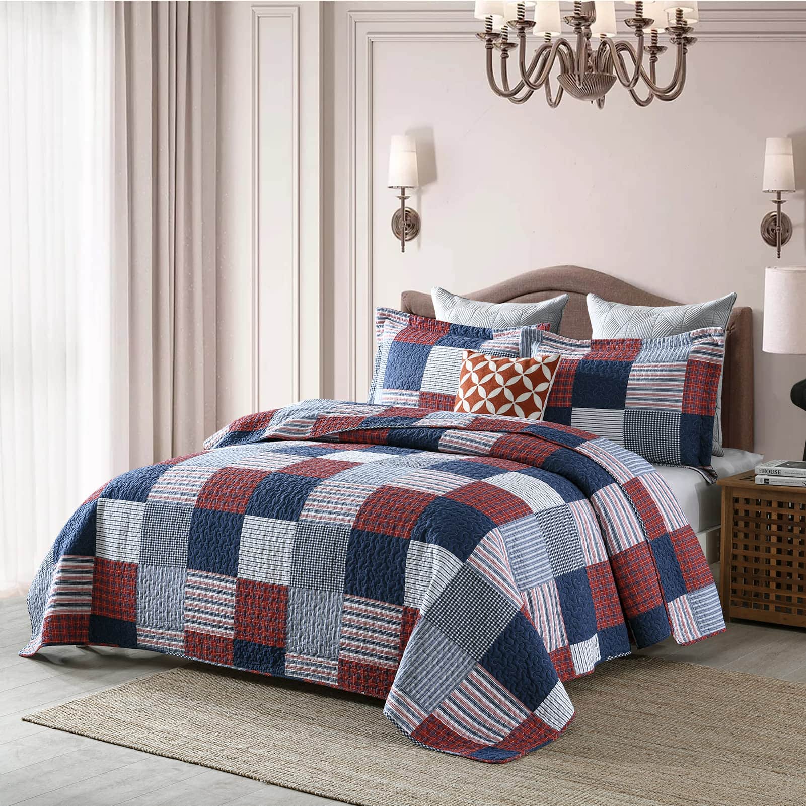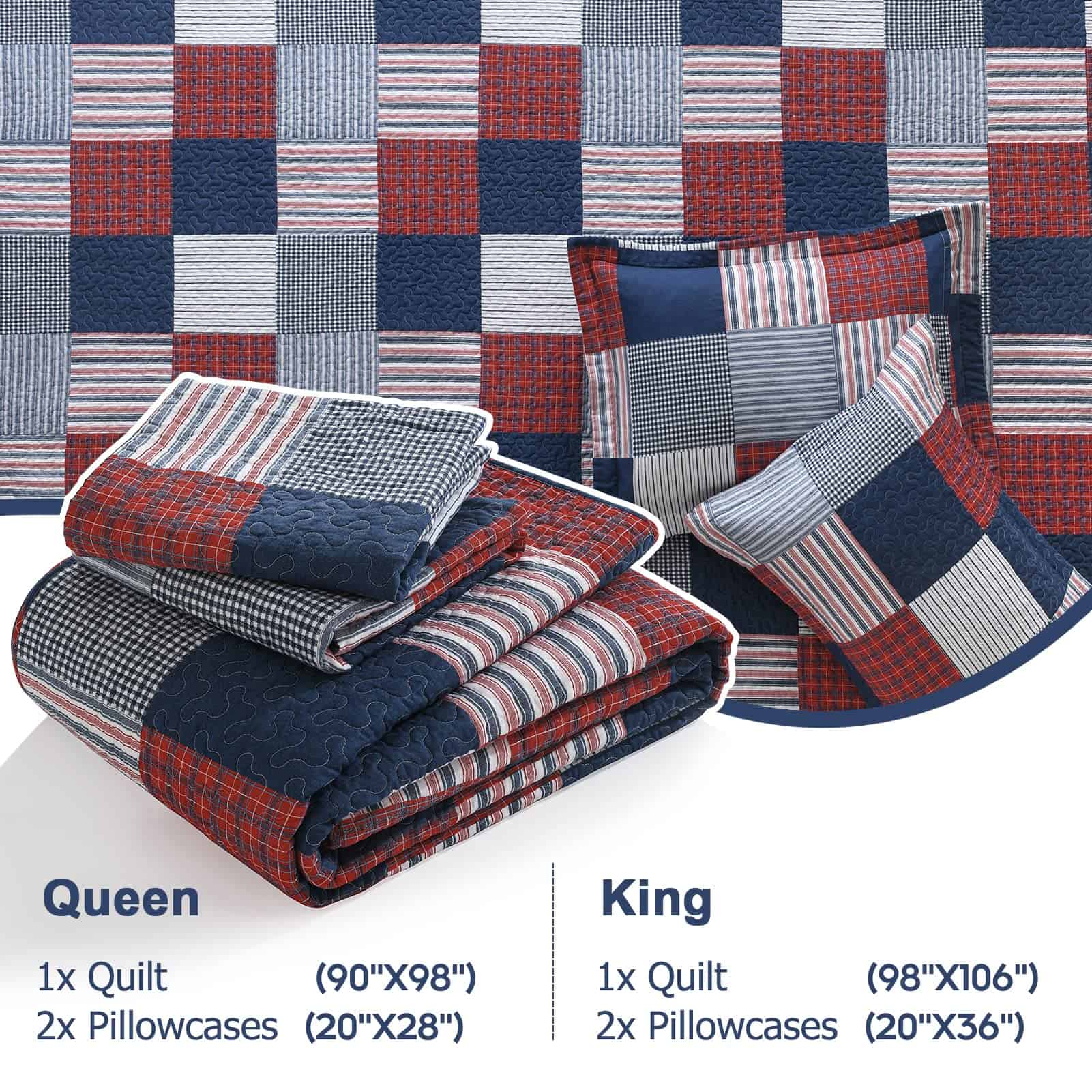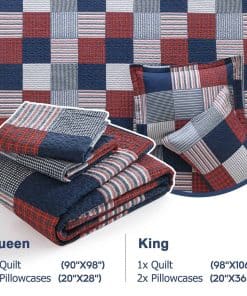 Con un diseño moderno y de granja, el juego de colcha queen viene en colores rojo, azul marino y blanco con un patrón a cuadros clásico que le da un toque único a tu hogar. La artesanía de doble costura asegura una calidad duradera y el patrón impreso es una hermosa adición a tu habitación.