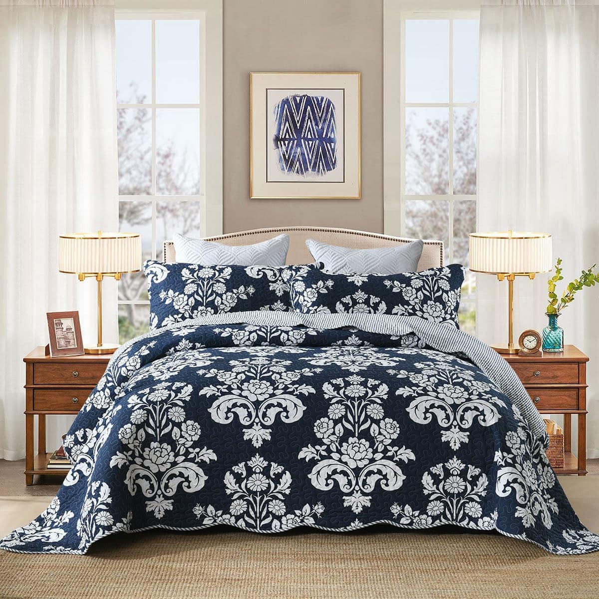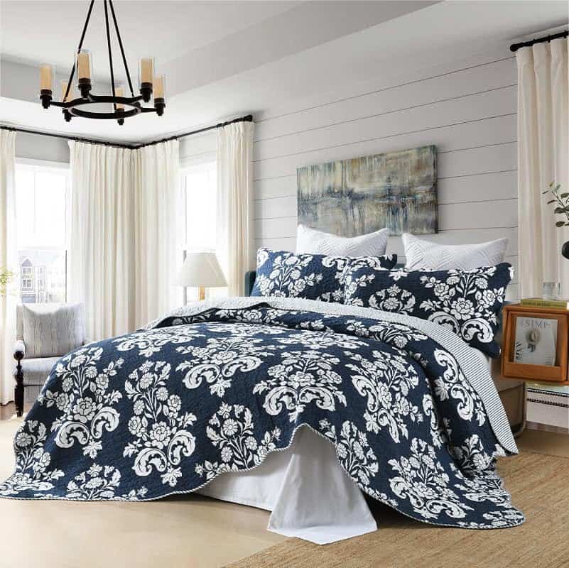 3. Colcha Acolchada Ligera: Elaborada con algodón 100% ligero y suave, nuestro juego de colchas queen ofrece un confort inigualable. Proporciona calor sin pesar, permitiéndote disfrutar de su abrazo acogedor durante los cálidos veranos y los frescos inviernos.