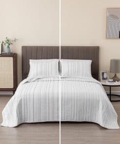 3. Duradero y Fácil de Cuidar: No tengas miedo de lavar estos juegos de colcha twin. Son lavables a máquina. Simplemente lávalos con agua tibia y seca en secadora a baja temperatura. Incluso puedes planchar caliente si es necesario para lograr esa sensación de ropa de cama de hotel. Este material duradero y de alta calidad está diseñado para un uso y disfrute duraderos.
