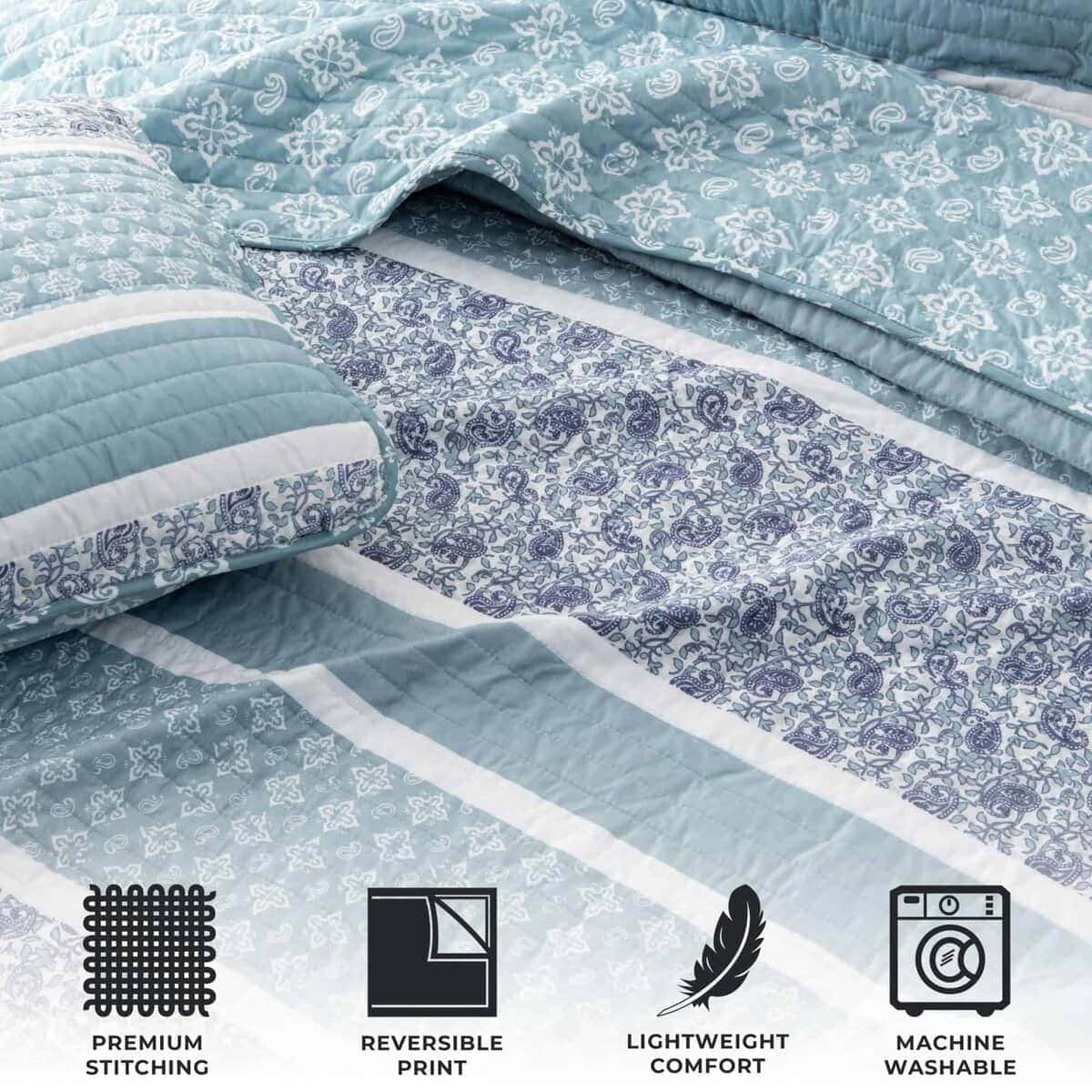 Juego de Colcha Reversible de 3 Piezas Azul para Cama King