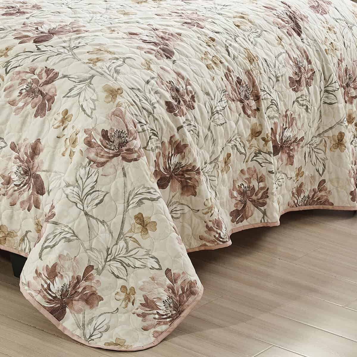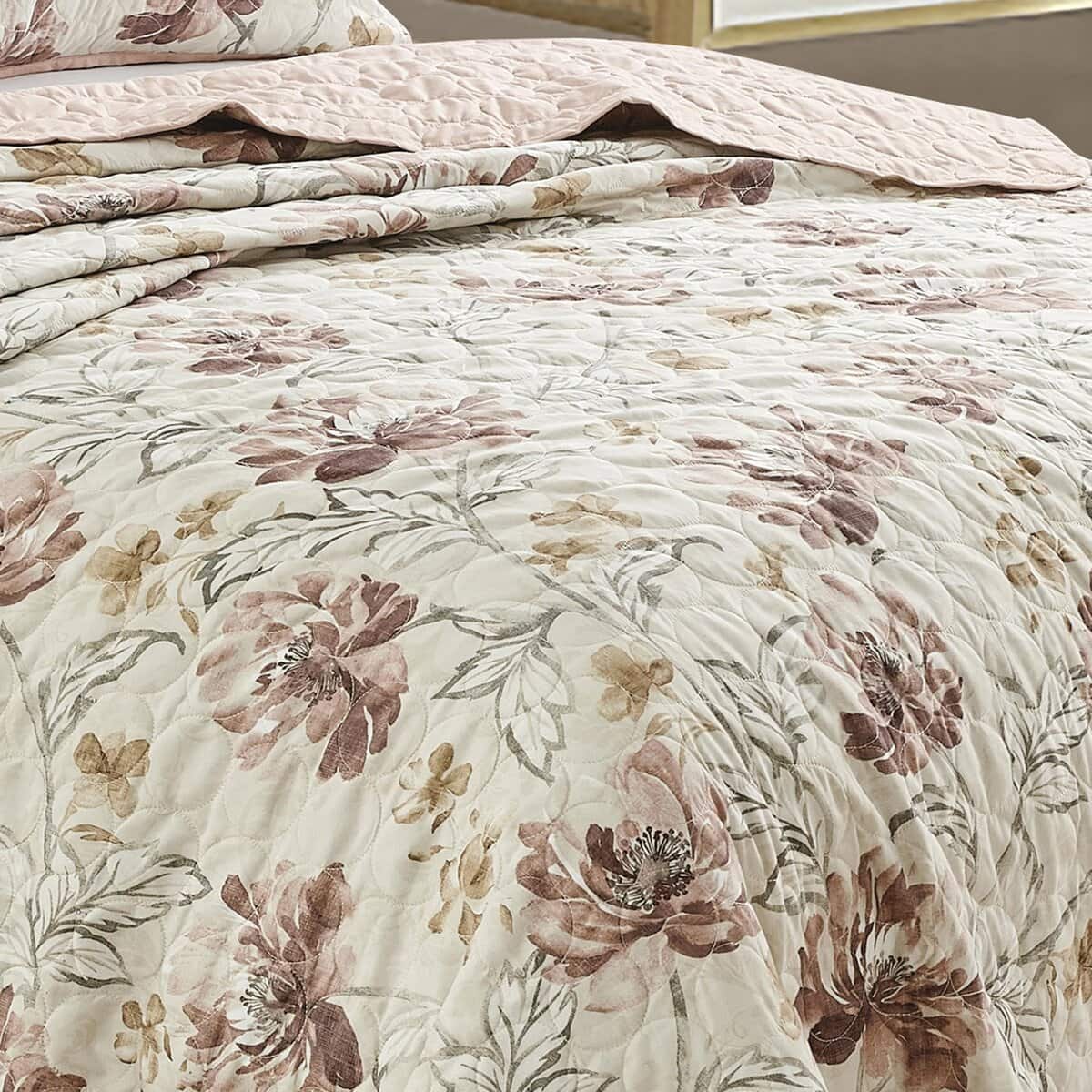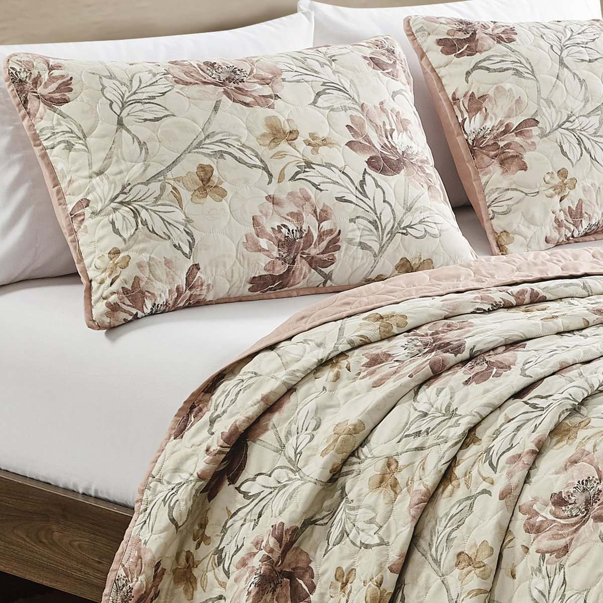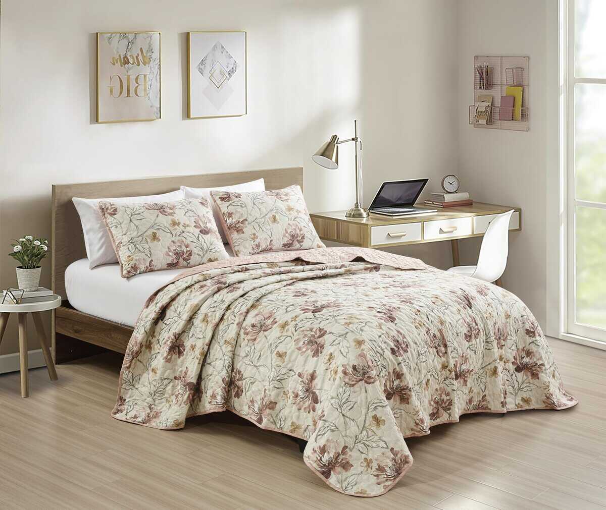 Juego de Colcha Reversible Floral Rosa Blush de 3 Piezas