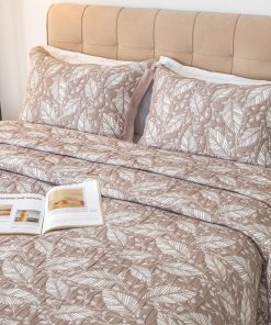 Juego de Colcha Reversible para Cama, Natural Crepe Leaf