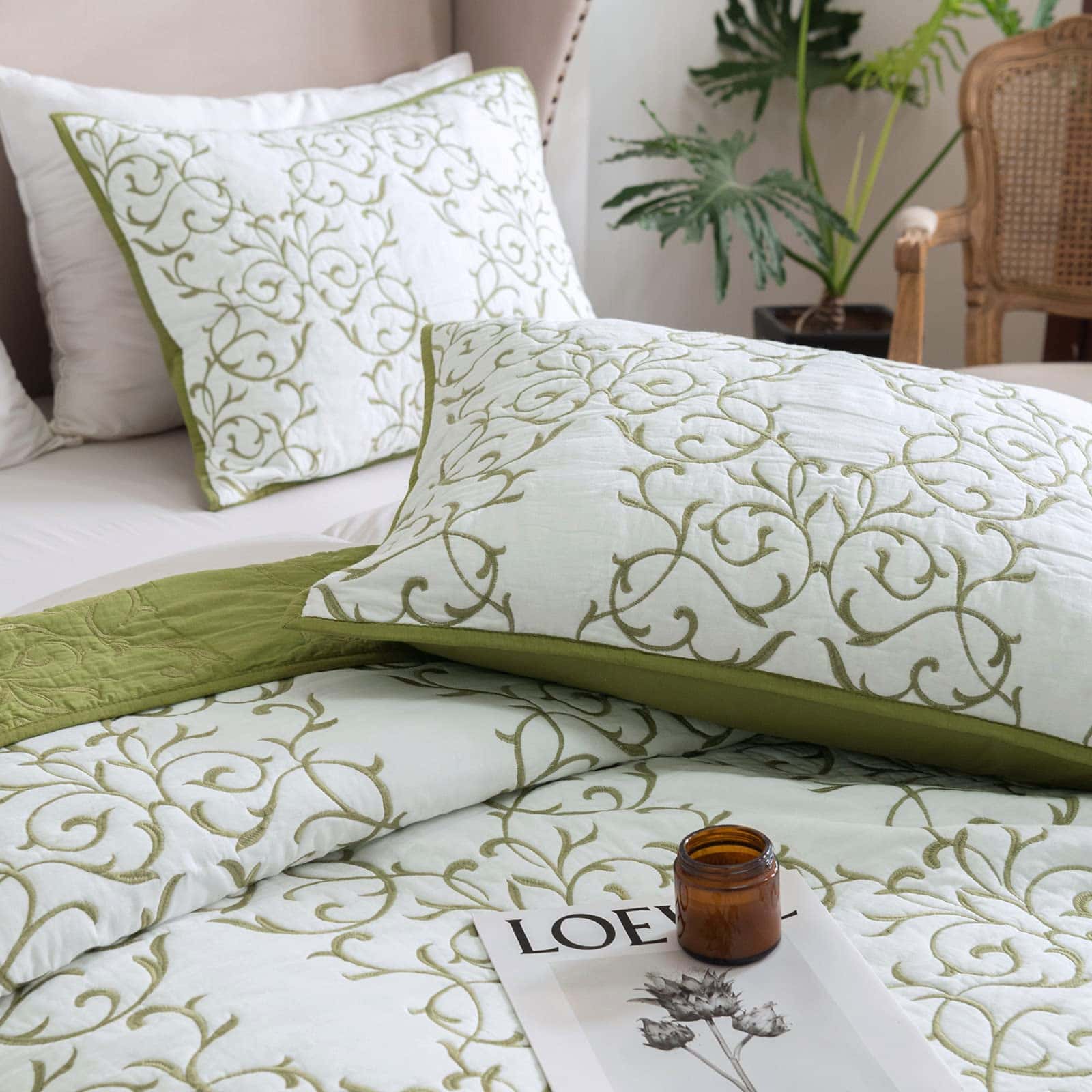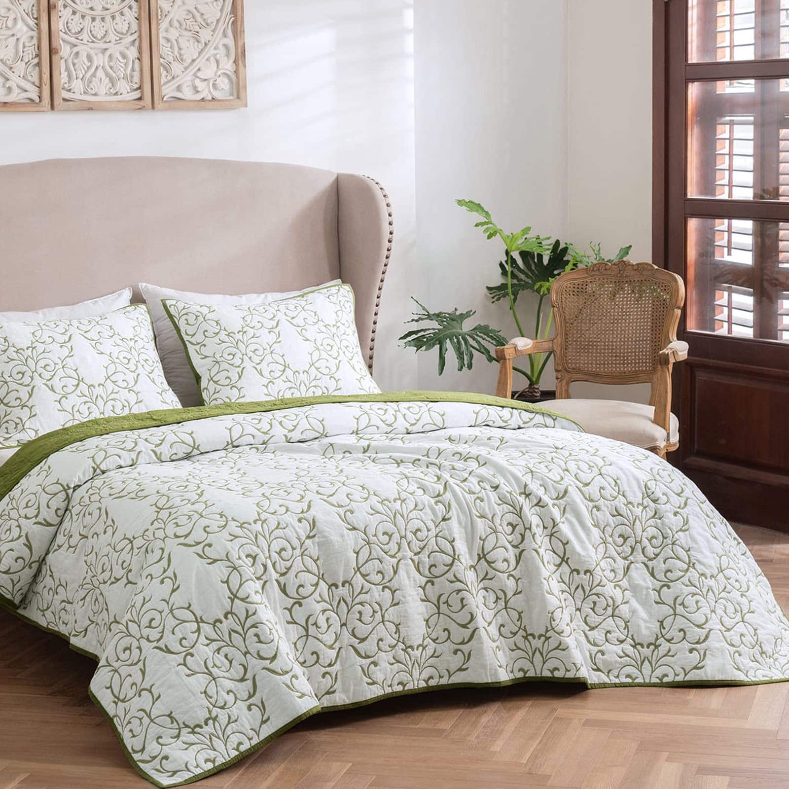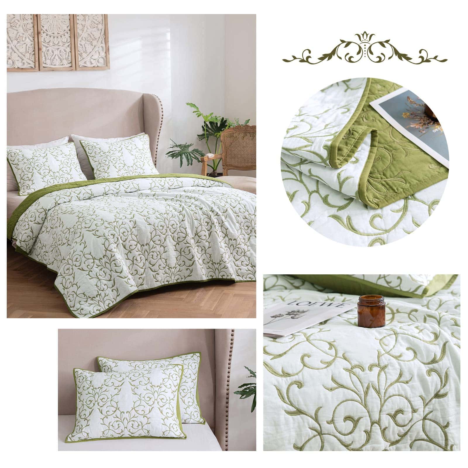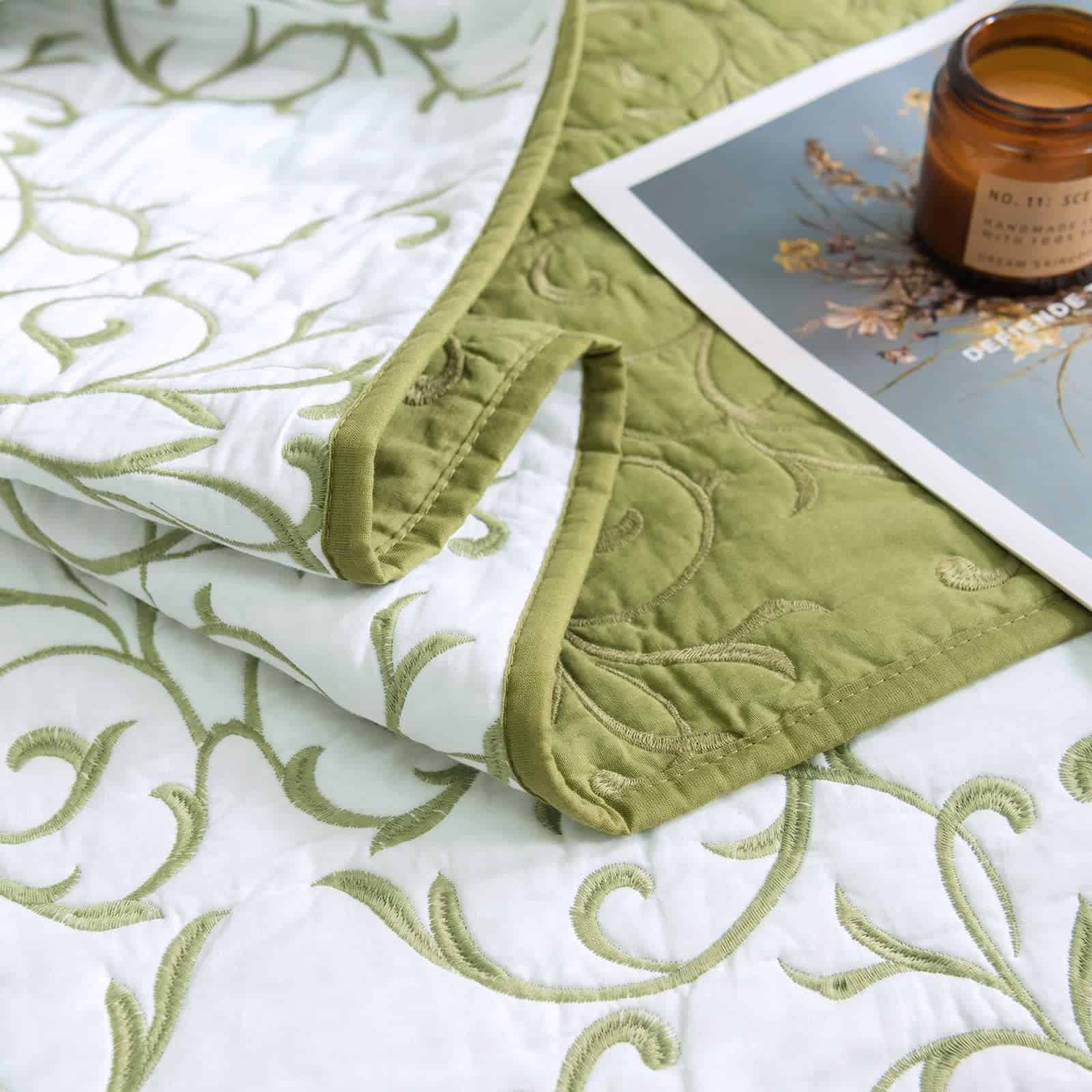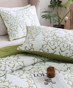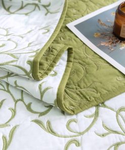 Juego de Colcha Reversible Queen 3 Piezas Patrón de Bordado