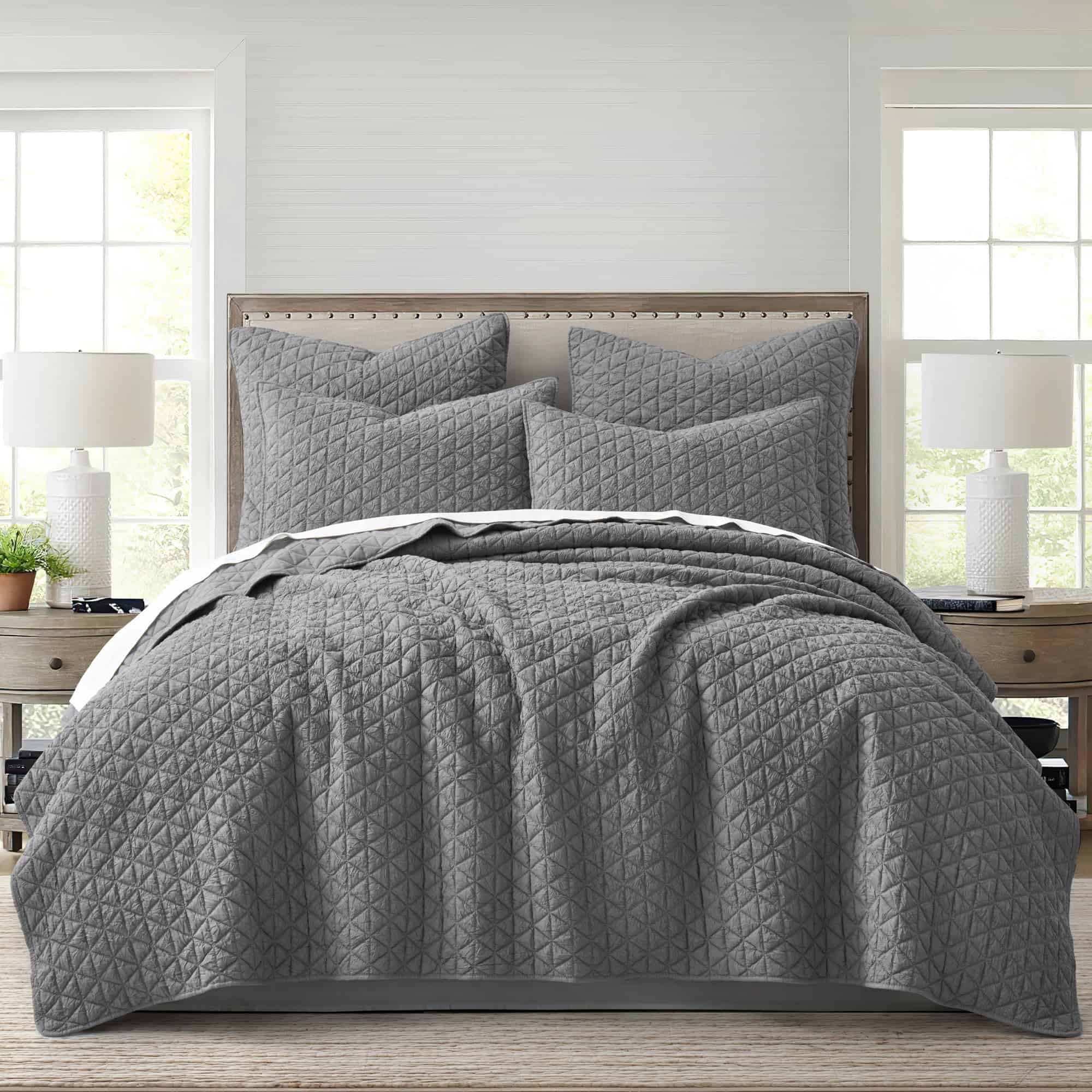 1. EL DISEÑO DE ROWAN: Uno de nuestros juegos de colchas más populares, Rowan está inspirado en la moda boho chic. El frente presenta un hermoso diseño de diamantes acolchado con arrugas y se invierte a un gris sólido. Un borde encuadernado proporciona contraste y textura para completar el aspecto. 2. LUJO SUAVE Y CÓMODO: Hecho del microfibra más suave y relleno con un material rico en algodón (que incluye algodón, poliéster y otras fibras), esta colcha nunca se sentirá pesada, rígida o incómoda. La colcha Rowan tiene un tacto ultra suave que satisface. 3. CUIDADO FÁCIL: Pre lavado para tu conveniencia, la colcha Rowan es fácil de cuidar. Simplemente lávela a máquina en un ciclo frío y suave, luego séquela al aire o en secadora a baja temperatura. 4. COORDINE LA DECORACIÓN DE SU HABITACIÓN: Cree un espacio de dormitorio maravilloso con nuestra colcha reversible coordinada. El diseño gris aporta elegantes acentos modernos a su hogar y combinará con una variedad de estilos y decoraciones de dormitorio. También puede refrescar su. 5. colcha queen colchas para camas queen colchas de tamaño queen colchas de tamaño queen edredón grande conjunto de edredón almohada decorativa dormitorio de ensueño juego de colcha queen con almohadas fundas de almohada queen acolchadas conjunto de 2 quilt levtex quilt