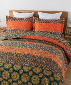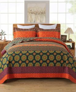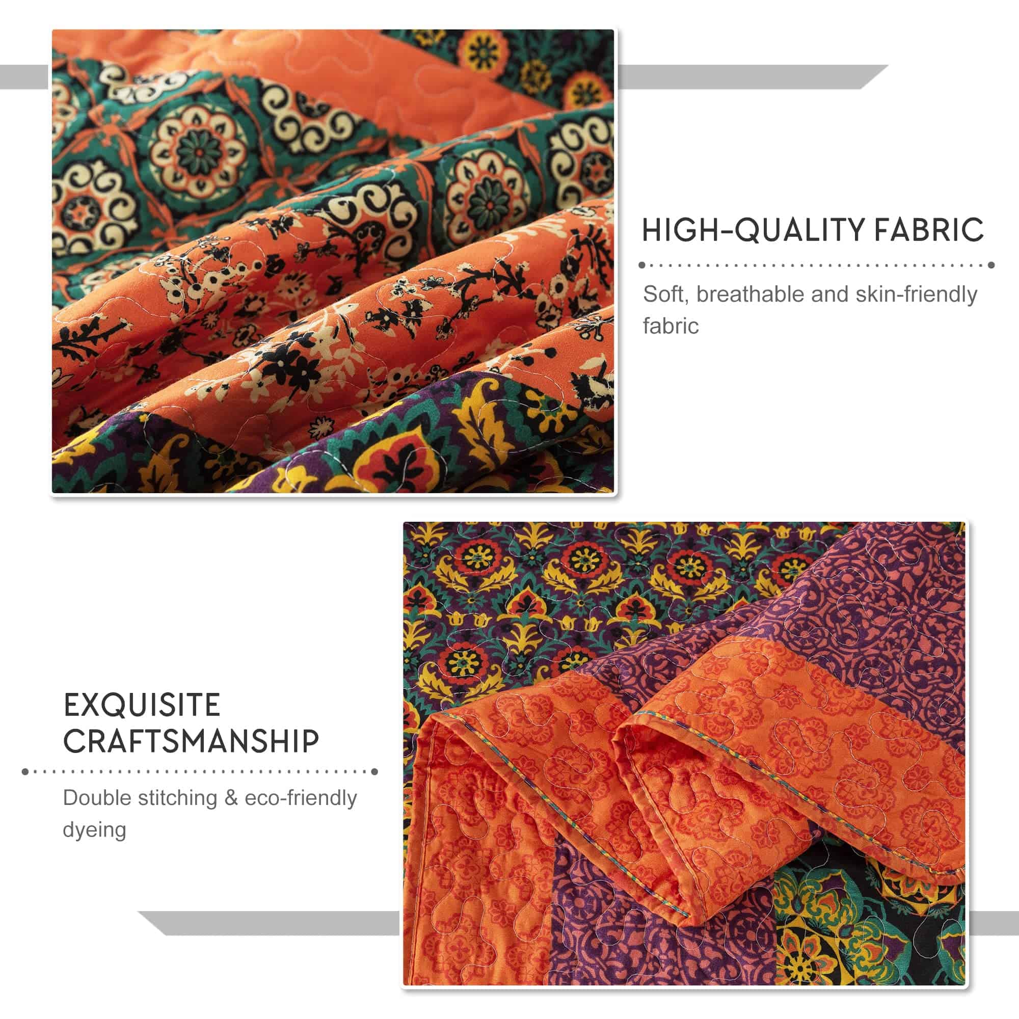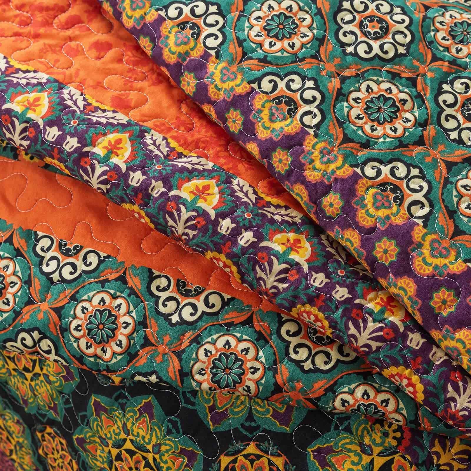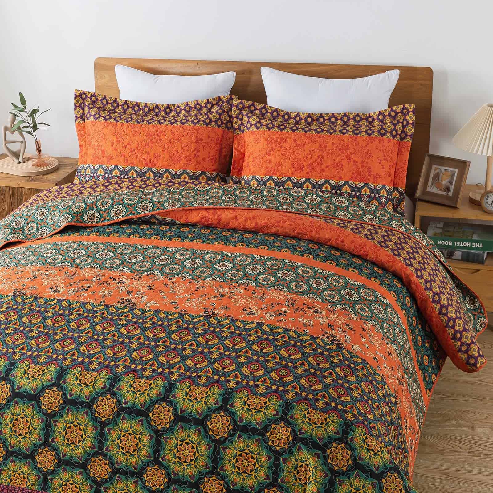 Este juego de colcha Travan Boho Stripe es perfecto para añadir un toque de estilo bohemio a tu dormitorio. La construcción de microfibra súper suave y ligera proporciona confort durante todo el año, ideal para poner capas en invierno o usar solo en verano. El juego incluye 1 colcha y 2 fundas de almohada en un llamativo patrón de rayas boho que seguramente llamará la atención. La tela es resistente a las manchas, arrugas y decoloración, y es lavable a máquina para un cuidado fácil. Con un diseño reversible, este juego de colcha ofrece dos looks elegantes en uno, lo que lo convierte en una adición versátil a tu hogar.
