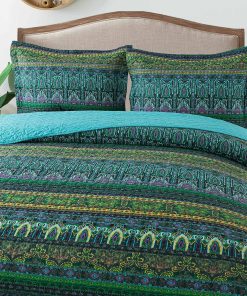 Juego de colcha y edredón reversible con un diseño único de estilo bohemio misterioso. Además, incluye una colcha de tamaño Queen y dos fundas de almohada. La colcha cuenta con un patrón floral clásico en toda la superficie y se acentúa en los lados con bordes festoneados para completar el conjunto de cama. La artesanía experta incluye un acolchado de doble costura cerrada especializado que mantiene el relleno uniforme incluso después de lavarlo. Este duradero juego de colcha es ideal para mantener tu cama con un aspecto elegante y cómodo. Instrucciones de cuidado: Lavar a máquina por separado en agua fría. Secar a baja temperatura.