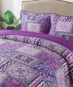 Juego de Colcha y Edredón Reversible de -Morado Clásico Bohe