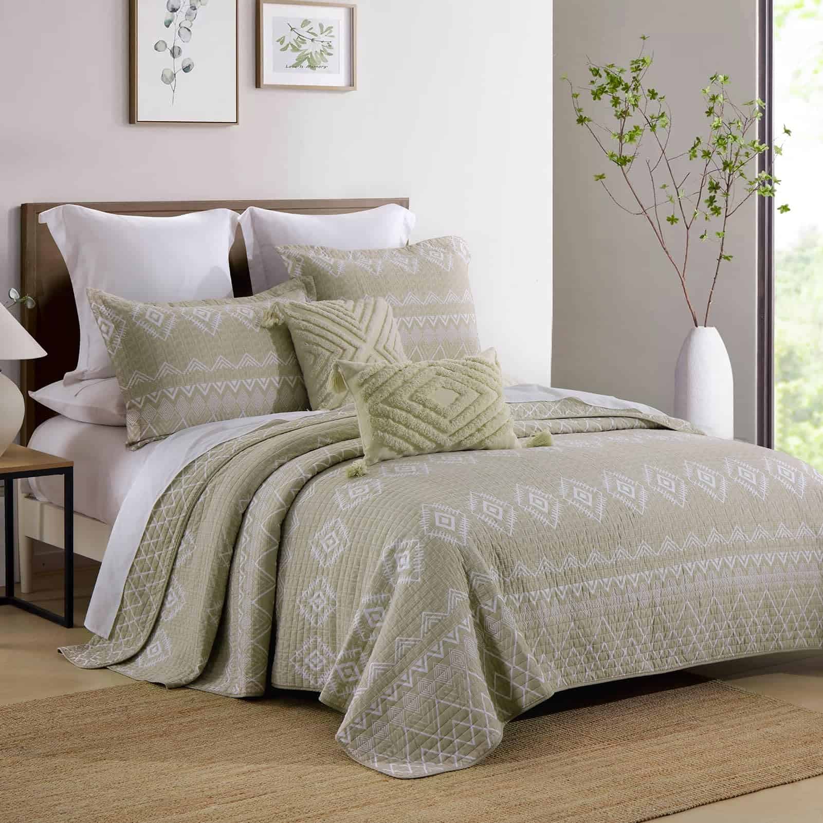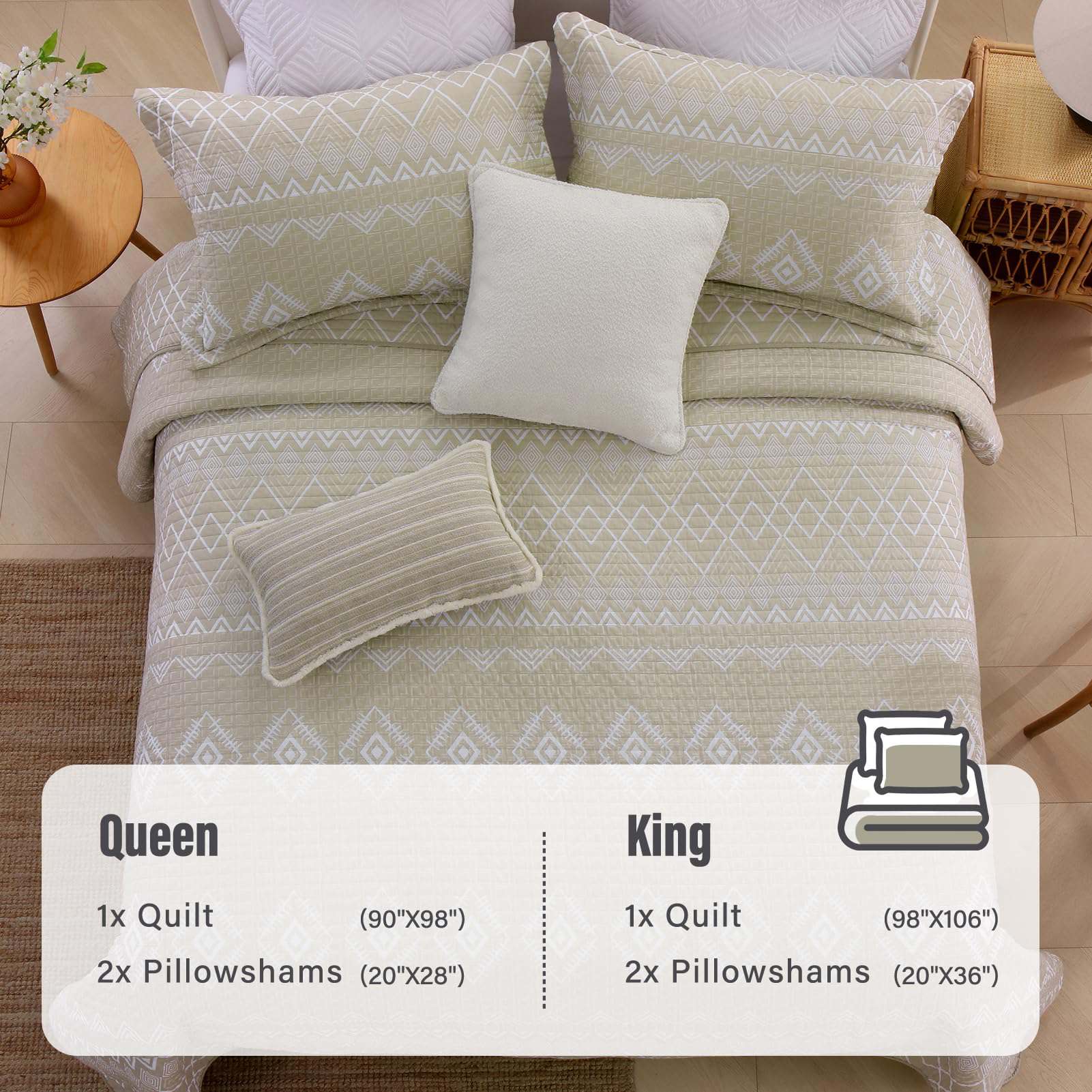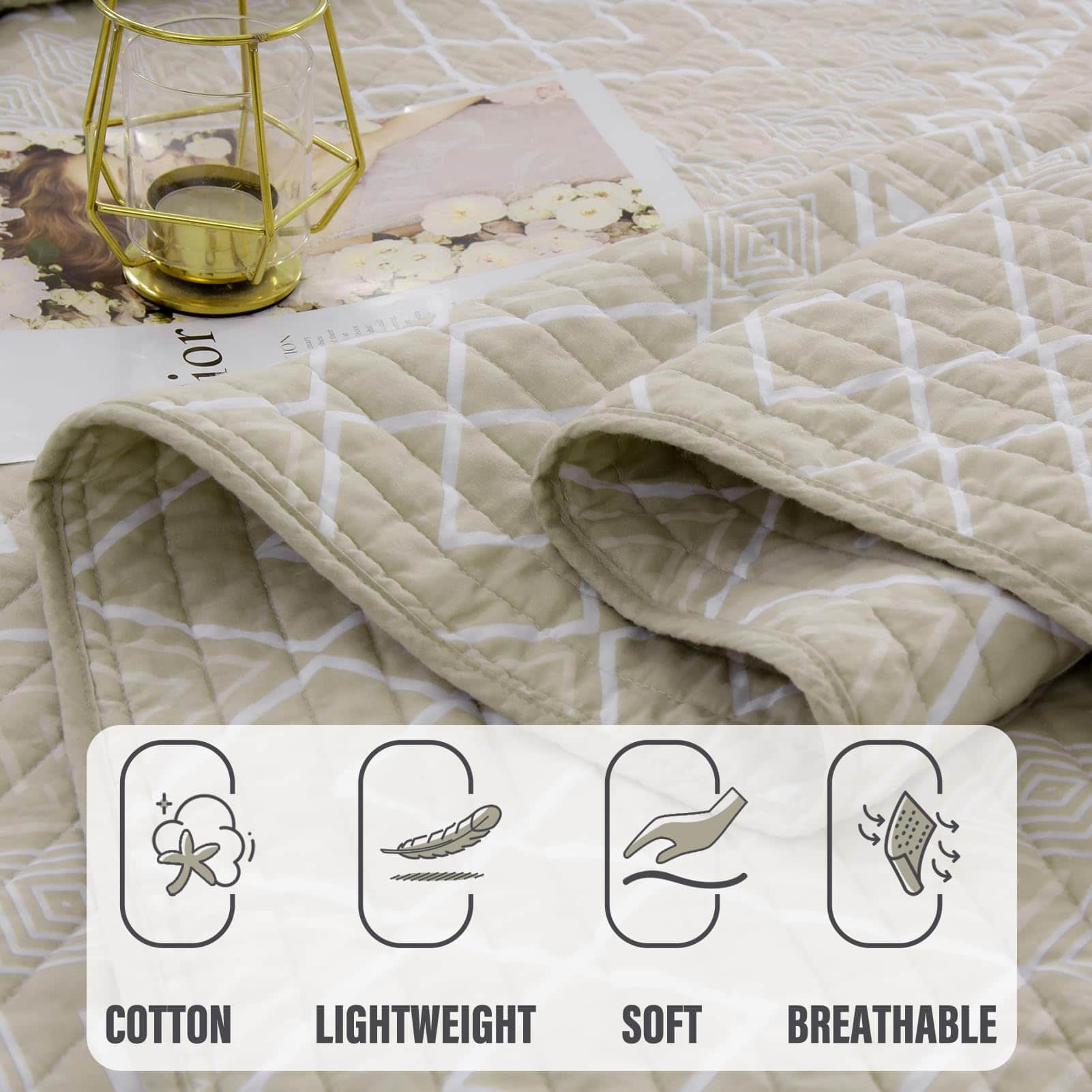 2. Patrón Geométrico: La colcha para cama queen está decorada con un patrón geométrico beige blanco, que puede decorar muy bien tu habitación y hacerte un entorno de vida delicado.