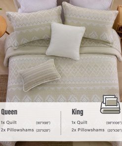 4. Uso para Todas las Estaciones: El diseño de tela de algodón de tres capas garantiza la excelente retención del calor de esta colcha para cama queen, para que puedas usarla durante todo el año. Y el diseño de colcha ligera reversible te permite tener una experiencia de sueño diferente.