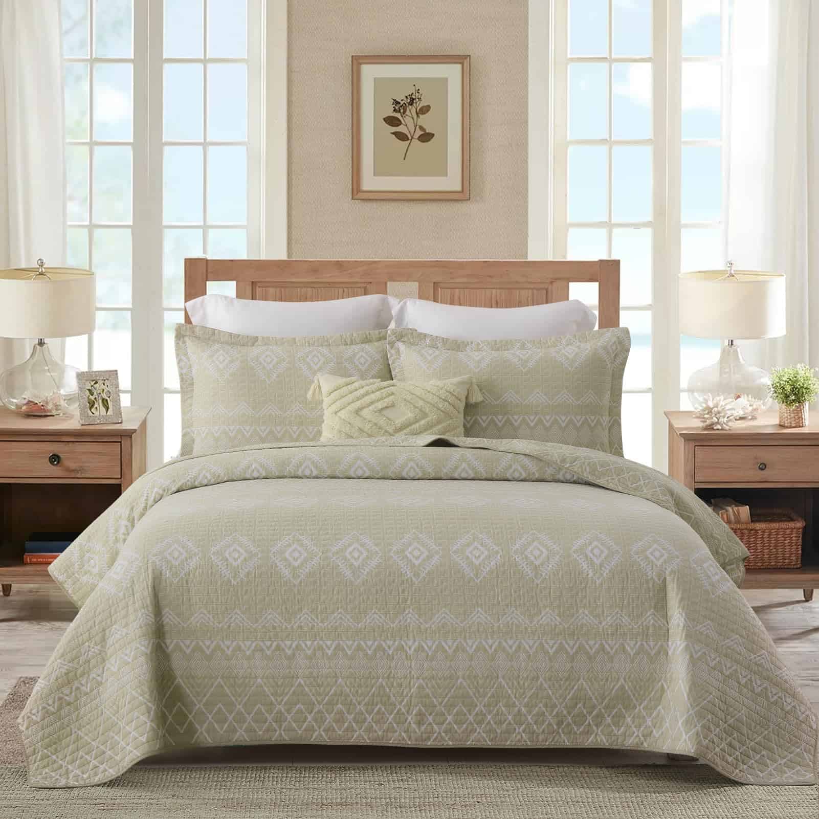 3. Juego de 3 Piezas para Cama Queen: 1 Colcha (90×98 pulgadas) 2 Fundas de Almohada (20×28 pulgadas).
