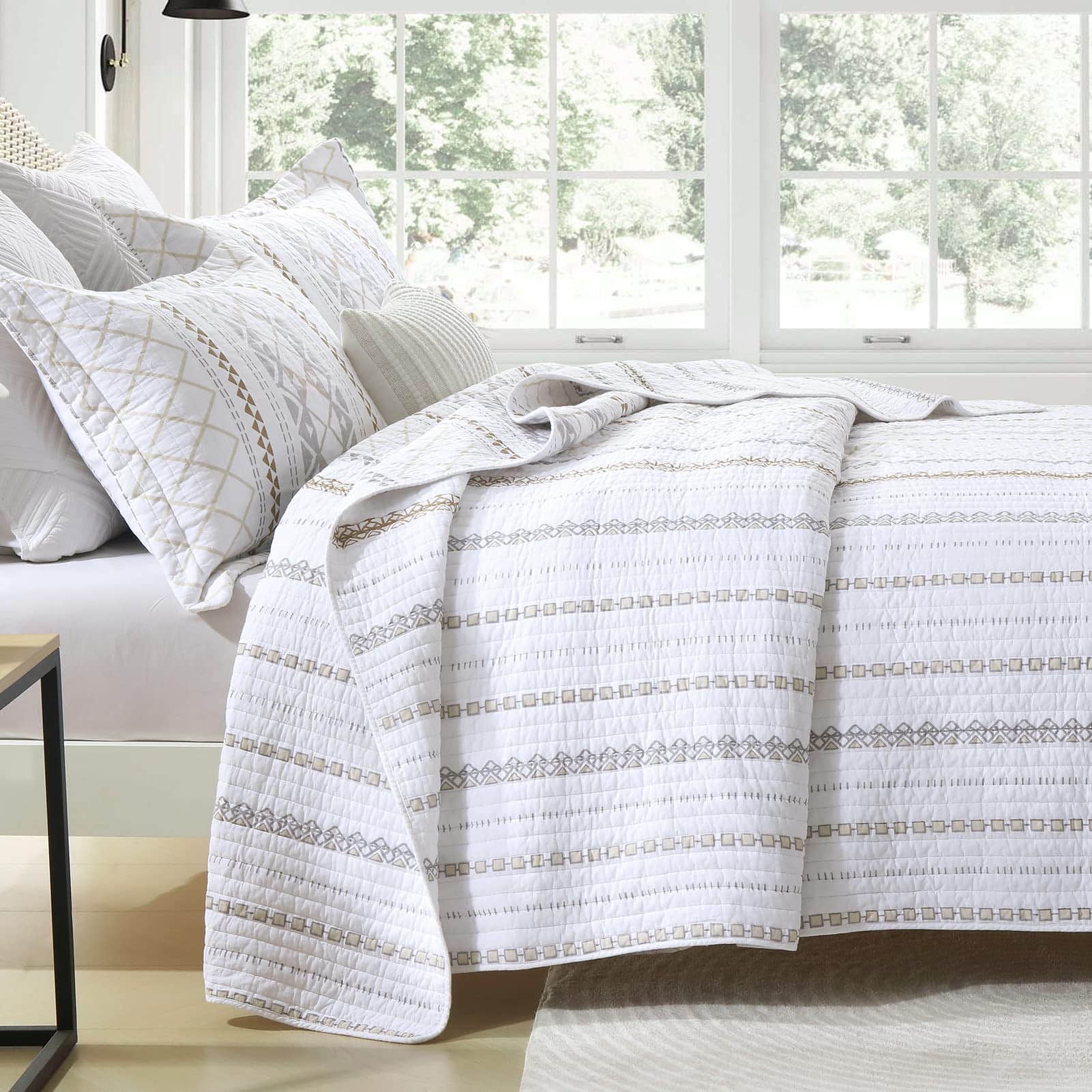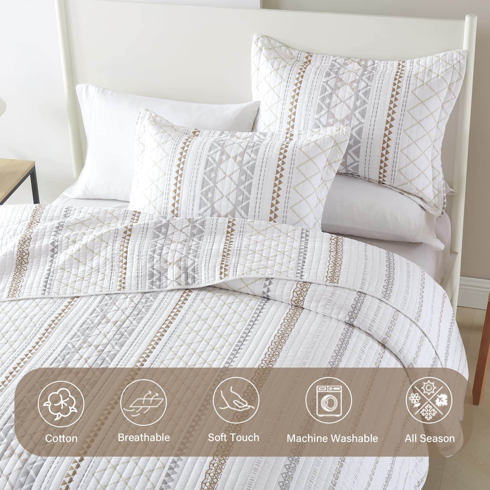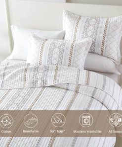 5. Bonita decoración para el hogar – Colchas Queen de estilo boho con colores blanco, gris y marrón, colcha reversible y ligera, cambia el aspecto de tu dormitorio al instante y lo suficientemente fresca para las temperaturas más cálidas.