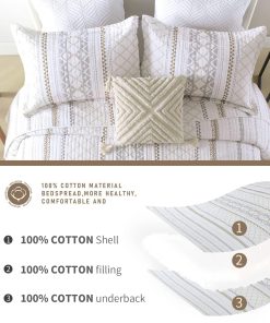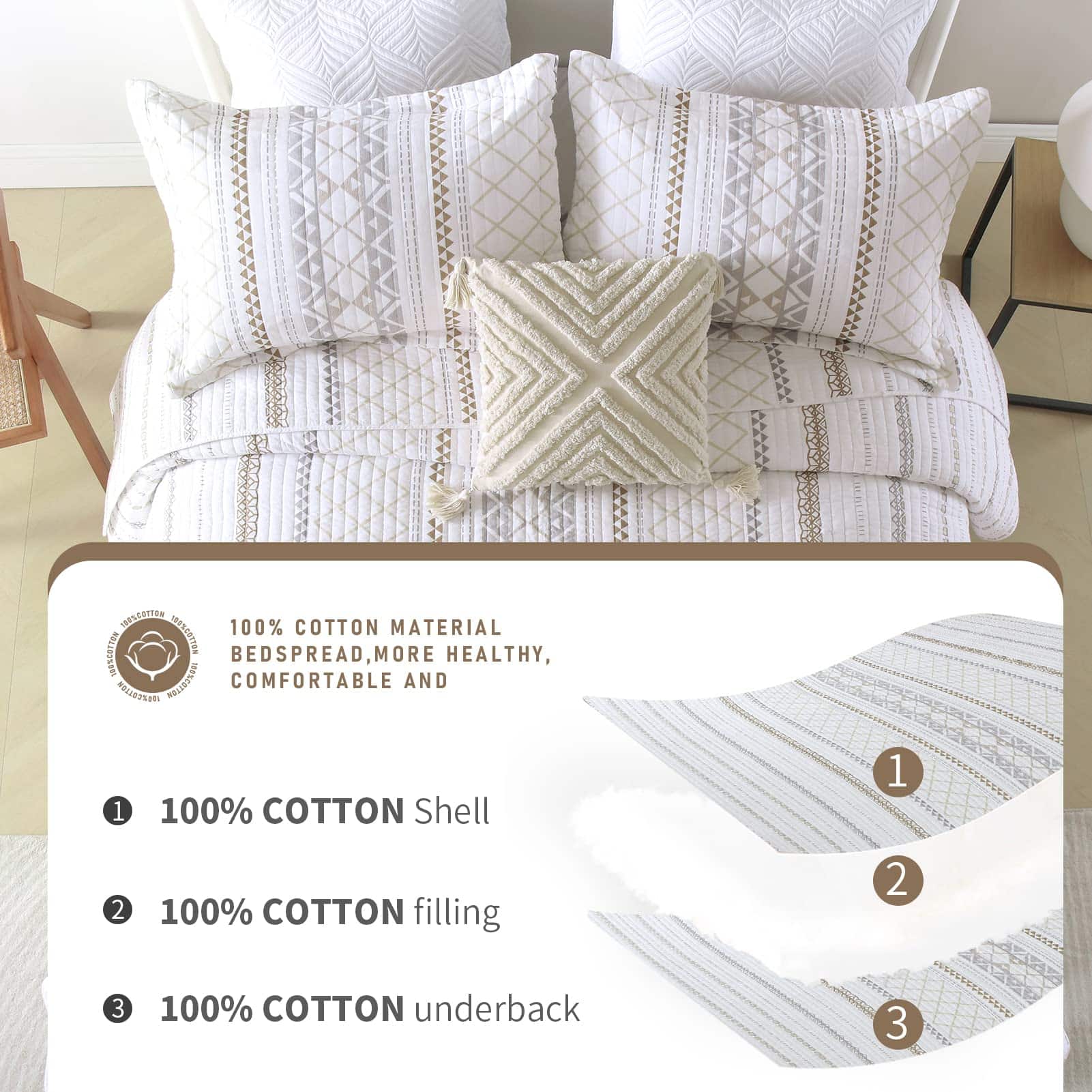 1. Colcha de algodón – El juego de colchas Queen está hecho de 100% algodón, más saludable y transpirable. Suavidad, amigable con la piel y duradero.
