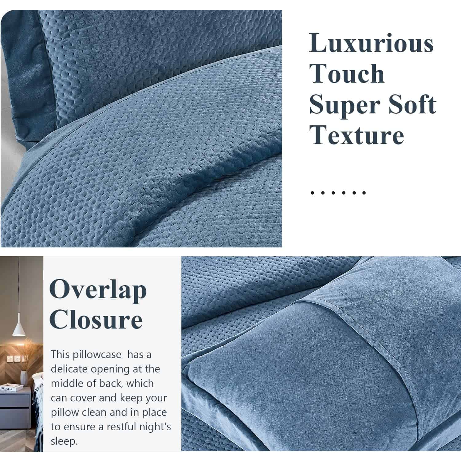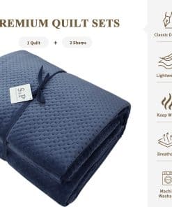 El juego de colchas incluye 1 colcha y 2 fundas de almohada. El material de alta calidad de poliéster transpirable proporciona un tacto lujoso y una textura súper suave. El frente es terciopelo detallado de poliéster suave y la parte trasera es terciopelo sherpa acogedor. Adecuado para todas las estaciones, brindando una experiencia transpirable y ligera pero manteniendo caliente en otoño e invierno. Diseño único con relieve reversible que proporciona diferentes sensaciones de suavidad. Las instrucciones de lavado incluyen lavado a máquina suave, planchado a baja temperatura y lavado con colores similares para evitar arrugas.