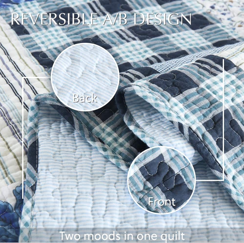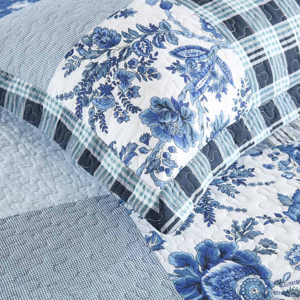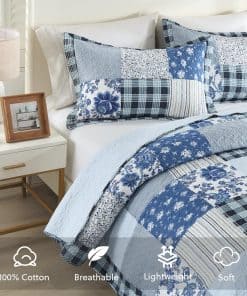 Juego de Colchas de Algodón camandy 3 -Azul Blanco Rústico P