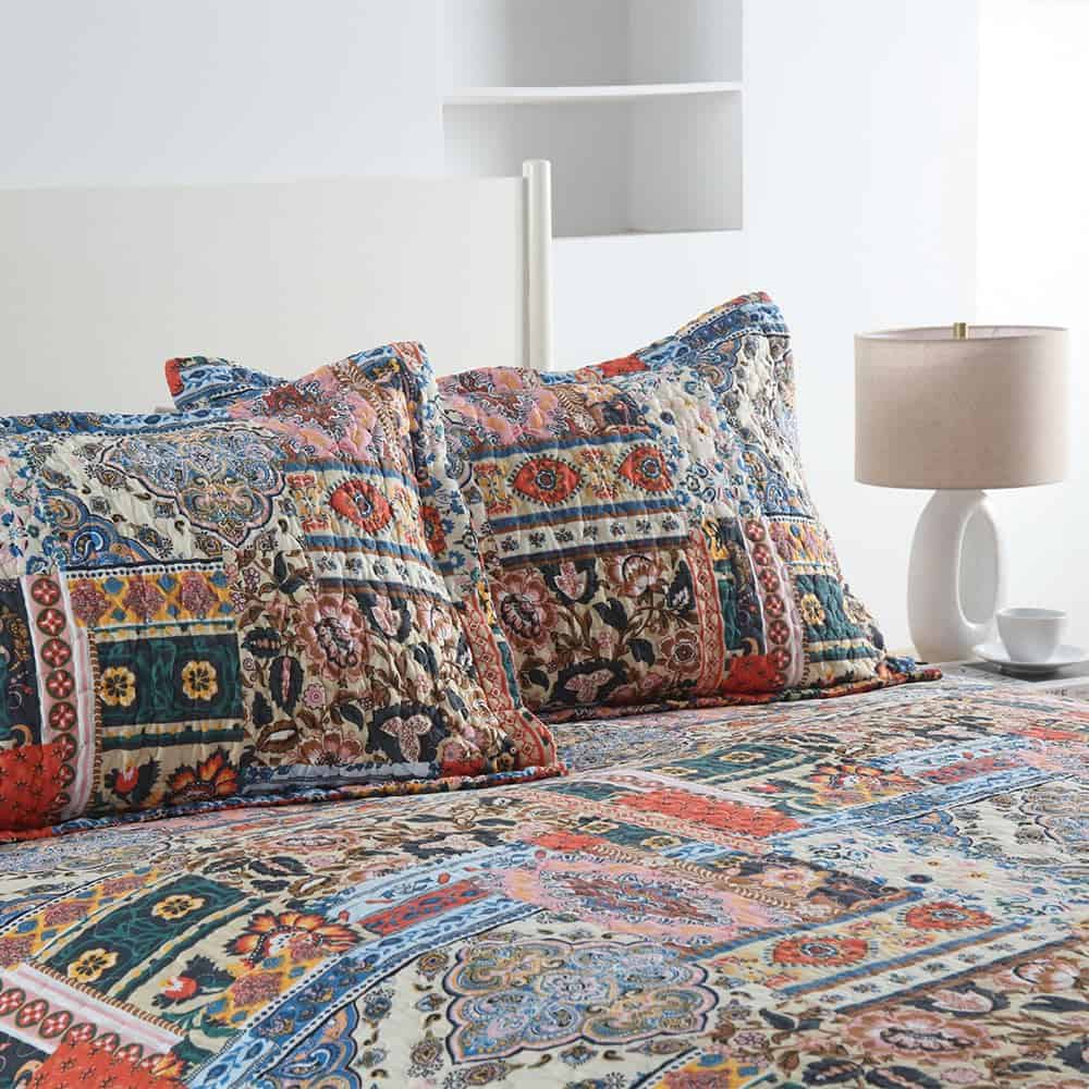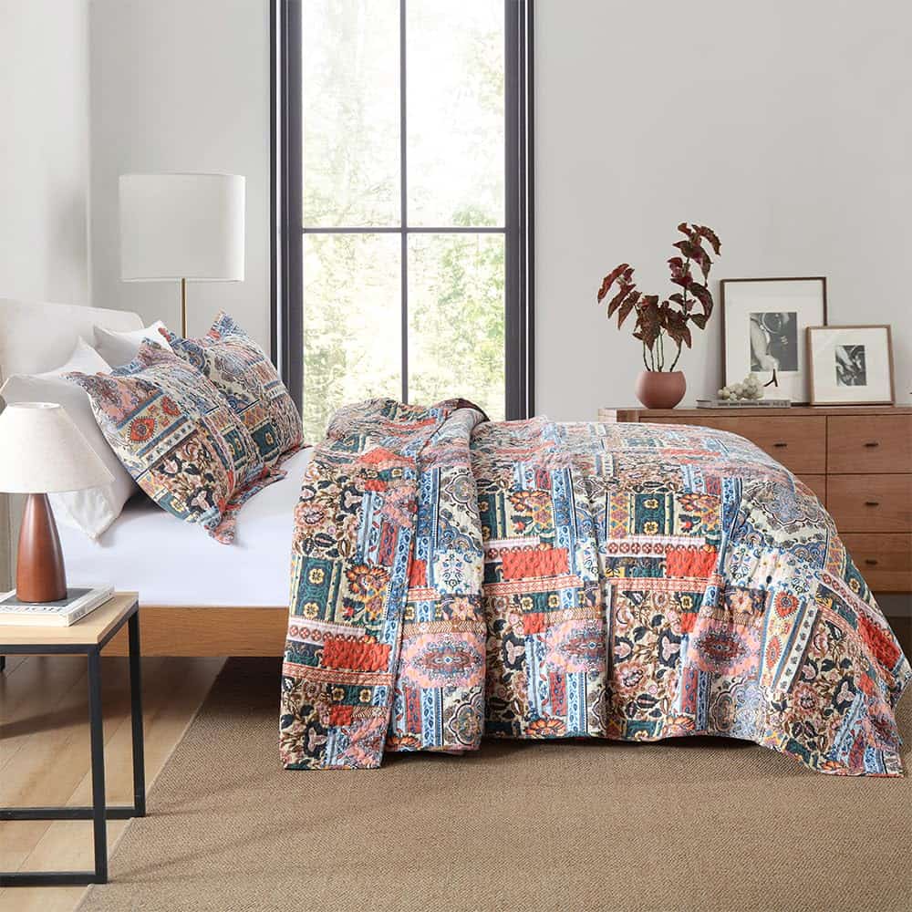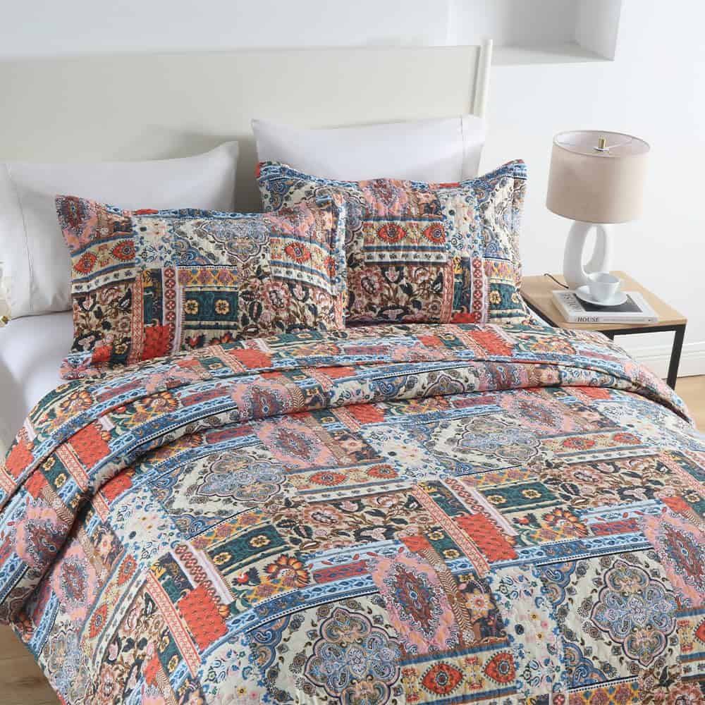 1. Juego de colchas de algodón: tela 100% algodón tanto en el núcleo como en la cubierta exterior de alta calidad, brindándote una mayor calidad de sueño. Puede usarse como manta, colcha, edredón, juego de cubrecamas o cubrecama para todas las estaciones. 2. Colcha reversible: proceso de teñido natural de plantas combinado con proceso de costura reversible de alta densidad especializado, no se deforma ni se desvanece fácilmente. 3. Patrón de parche bohemio vintage: El patrón de parche floral vintage en estilo bohemio es hermoso y vívido, haciendo que tu habitación sea más encantadora y creando un espacio maravilloso para dormir. 4. Paquete de juegos Queen: 1 cubrecama tamaño Queen (90 por 98 pulgadas), 2 fundas de almohada (20 por 27 pulgadas). 5. Lavable a máquina: Lavar por separado en agua fría. Secar en secadora a baja temperatura.