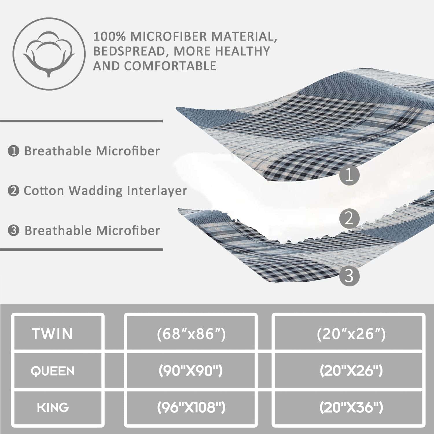 Juego de Colchas de Cuadros Jarson de 3 Piezas Tamaño