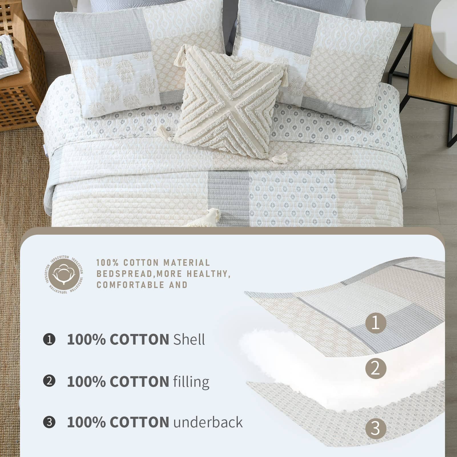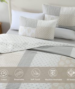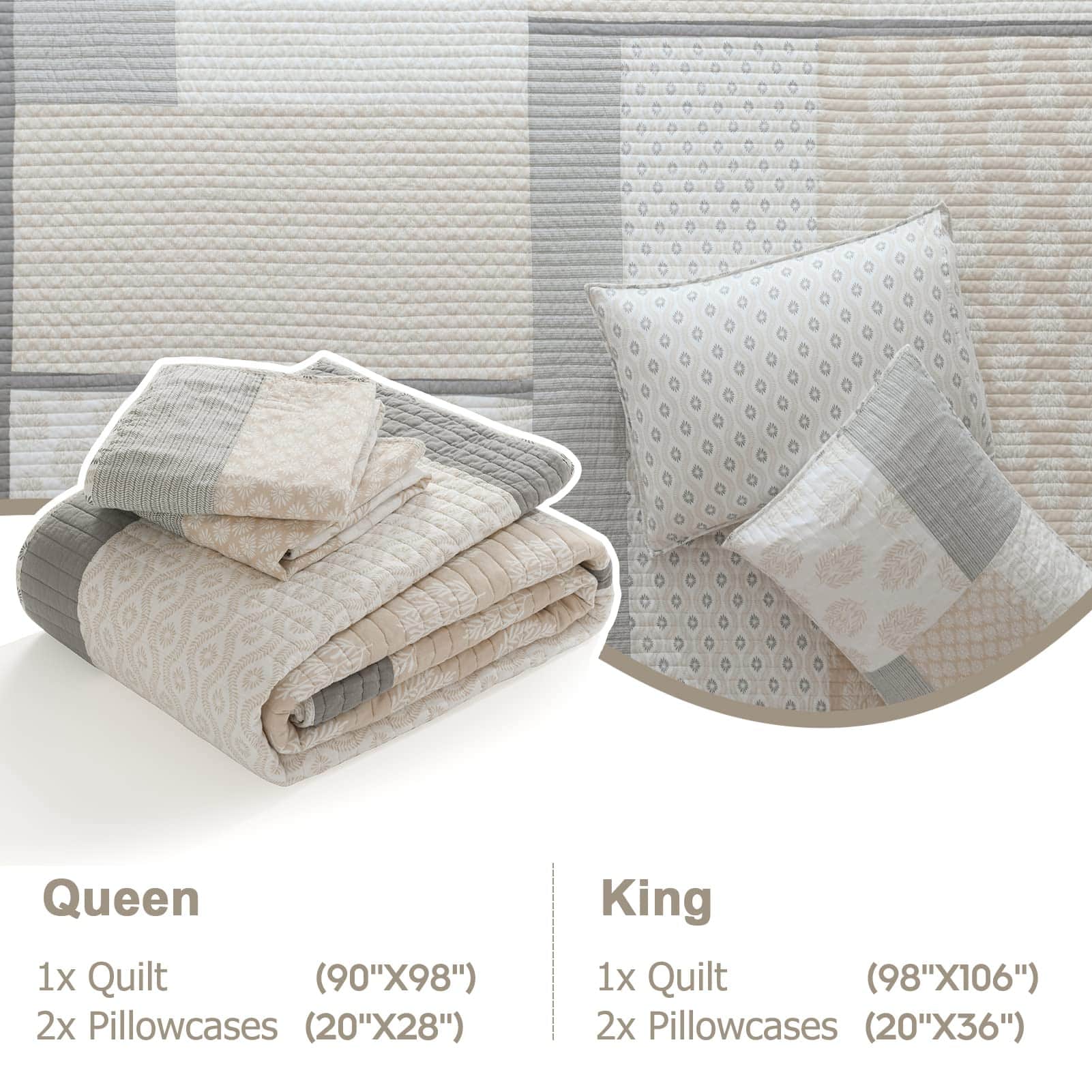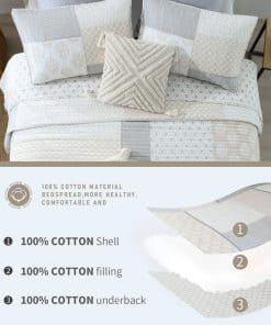 Colcha reversible de patchwork con un lado – luna blanca, gris, bordado de flores botánicas de moda estilo country Lodge, lado B – estilo de decoración floral bohemio de margaritas, el juego de cubrecama colcha queen también puede combinar fácilmente con la decoración de tu dormitorio. Tamaño de colcha queen: 1 colcha queen (98″x90″) y 2 fundas de almohadas (20″x28″) + servicio al cliente las 24 horas los 7 días de la semana, cuelgue sobre los bordes y combine bien con su cama tamaño matrimonio/queen. Uso durante todo el año: Esta colcha ligera tamaño queen está diseñada para usarse durante todo el año, que puede seguir manteniendo caliente como una manta acolchada en primavera y verano, como un juego de edredón queen en otoño e invierno. Ligero pero cálido, lo suficientemente fresco para las temperaturas más cálidas. Lavable a máquina: Lavar a máquina por separado en agua fría, secar en secadora a baja temperatura, no usar lejía. La colcha seguirá manteniendo el calor y su forma original después del lavado. Si tienes mascotas, la colcha lavable también es una buena elección.