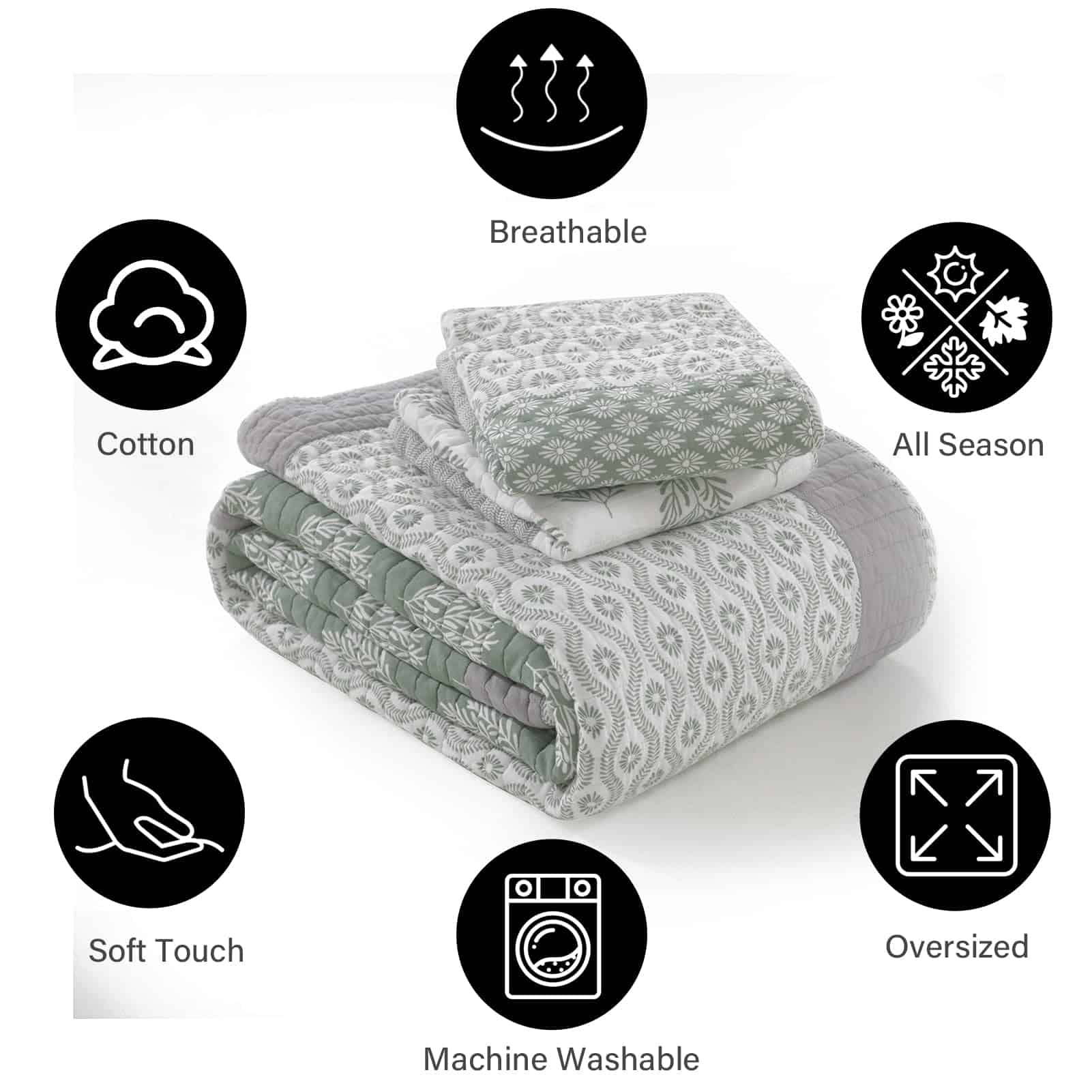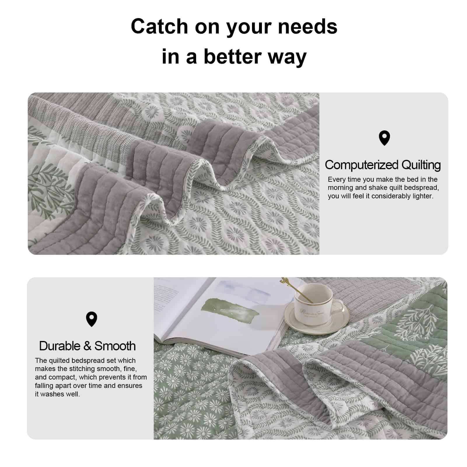 1. Colcha de Algodón 100% – Juego de colchas de algodón 100% natural, más saludable y transpirable. Suave, amigable con la piel y duradero.