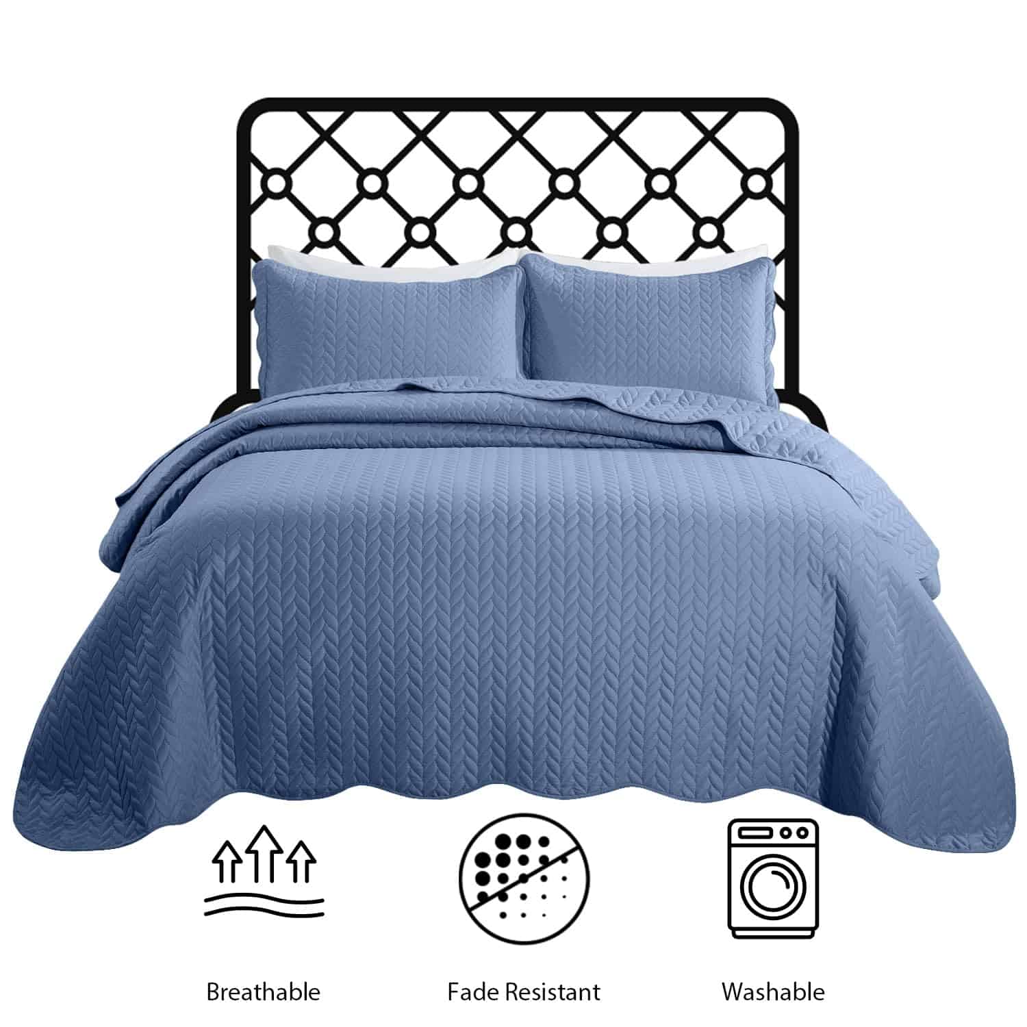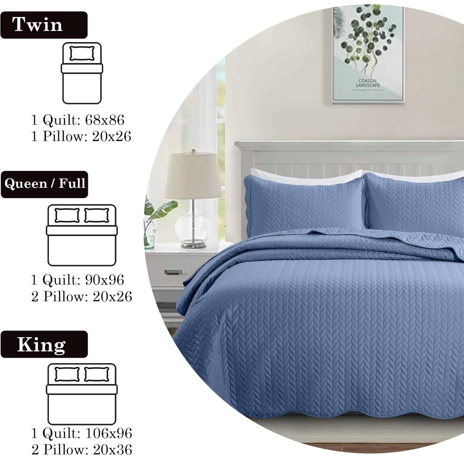 1. Tamaño y Dimensiones: Eleva la decoración de tu dormitorio con nuestro juego de colchas de microfibra con un estampado en relieve generosamente diseñado. Un colcha de tamaño Queen (90″ x 96″ pulgadas) viene con 2 fundas de almohada a juego (20 x 26 + 2 pulgadas). El exquisito patrón en relieve no solo es hermoso a la vista, sino que también añade una agradable sensación táctil cuando te acurrucas en la cama.