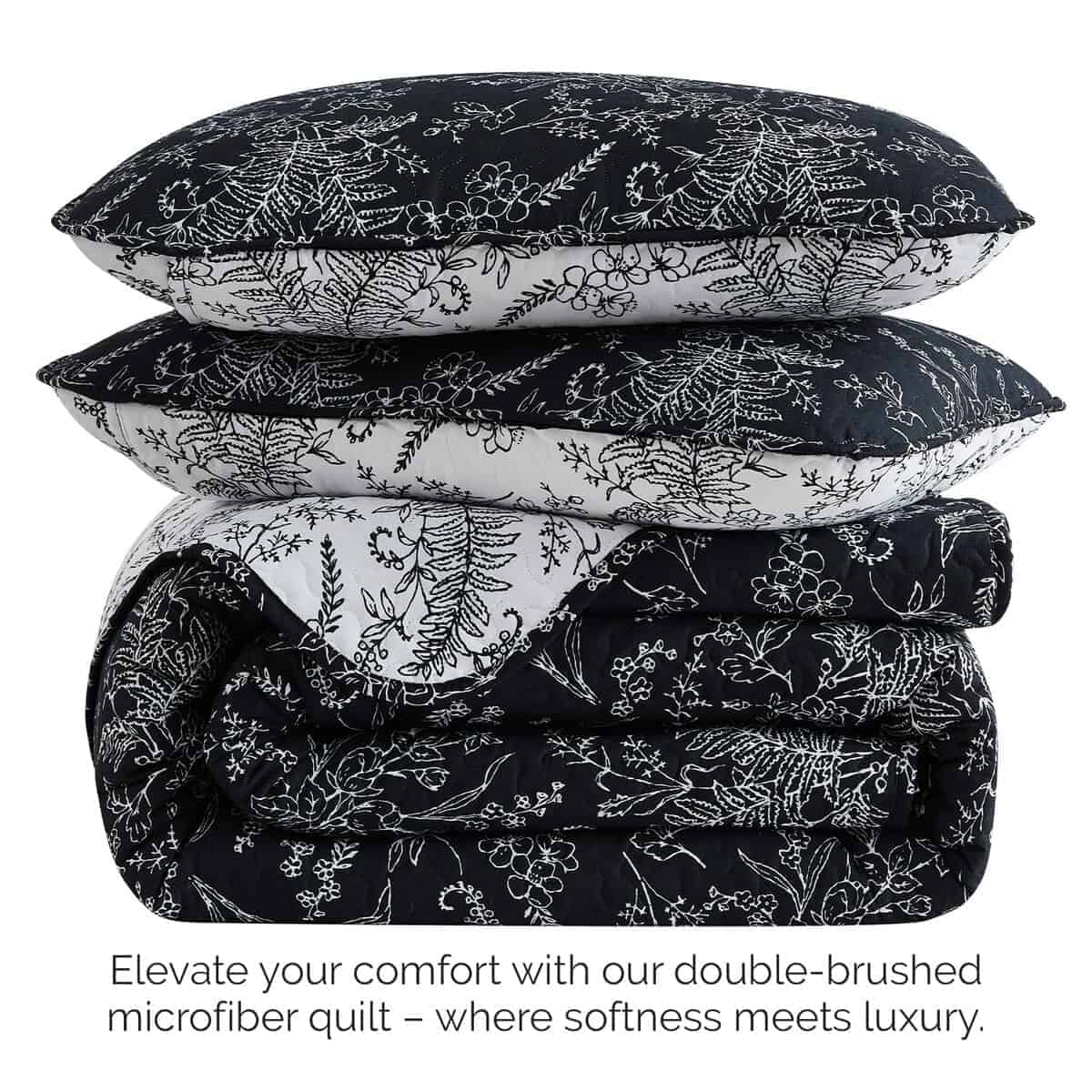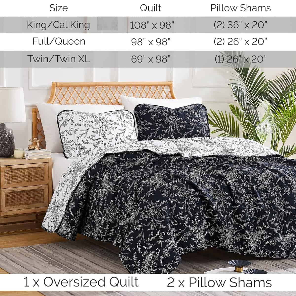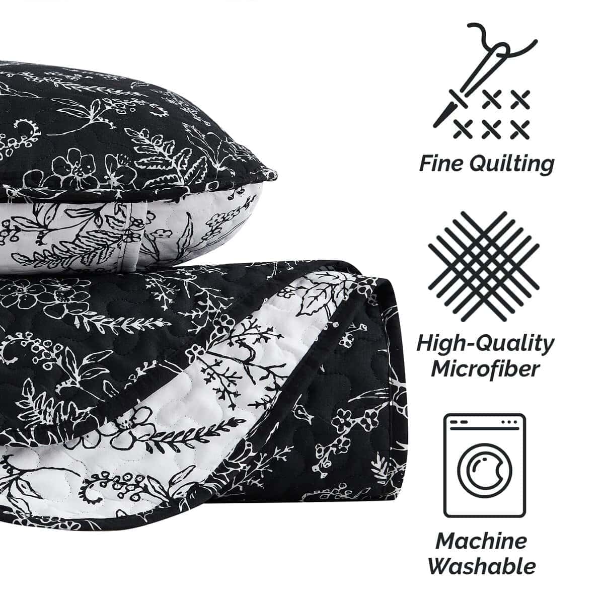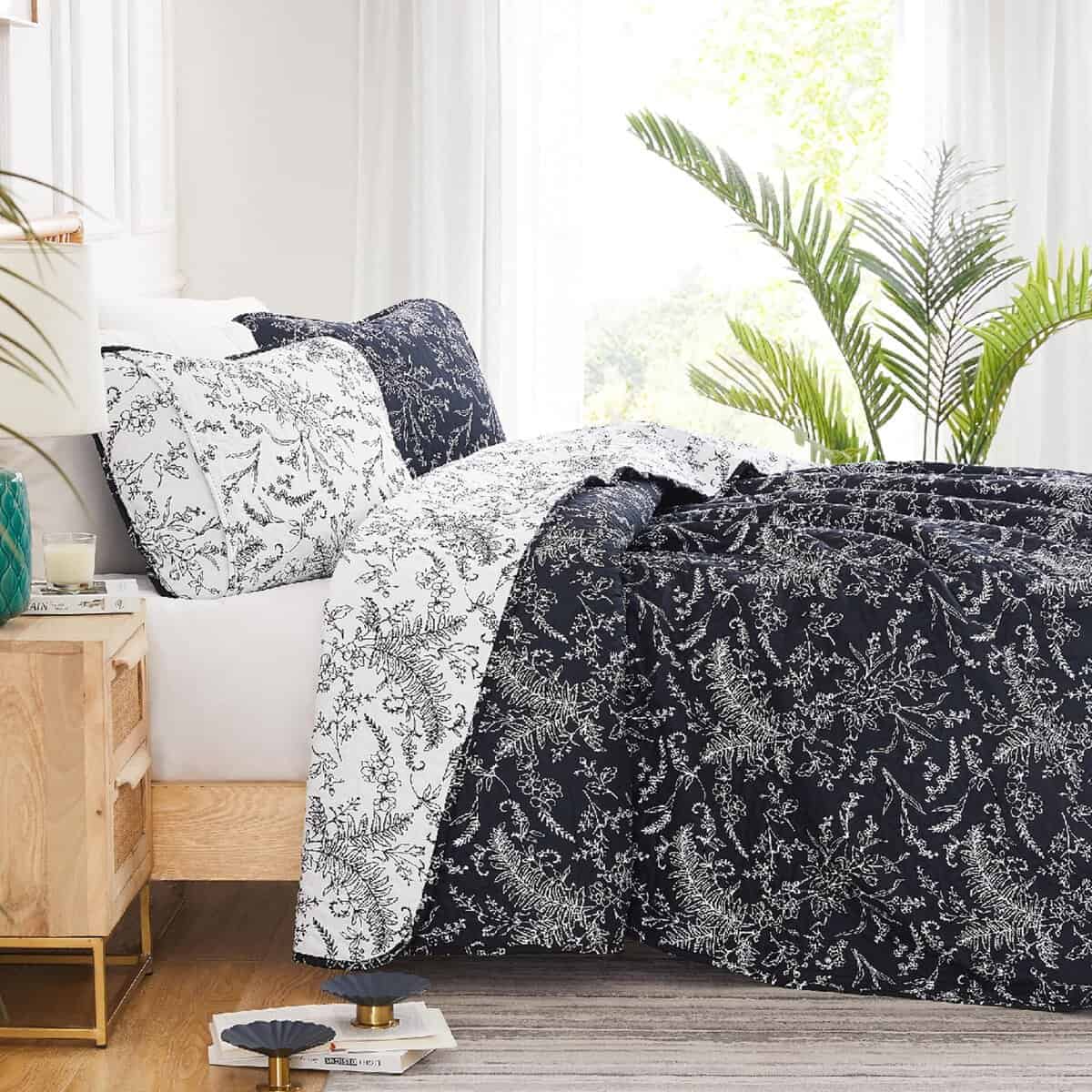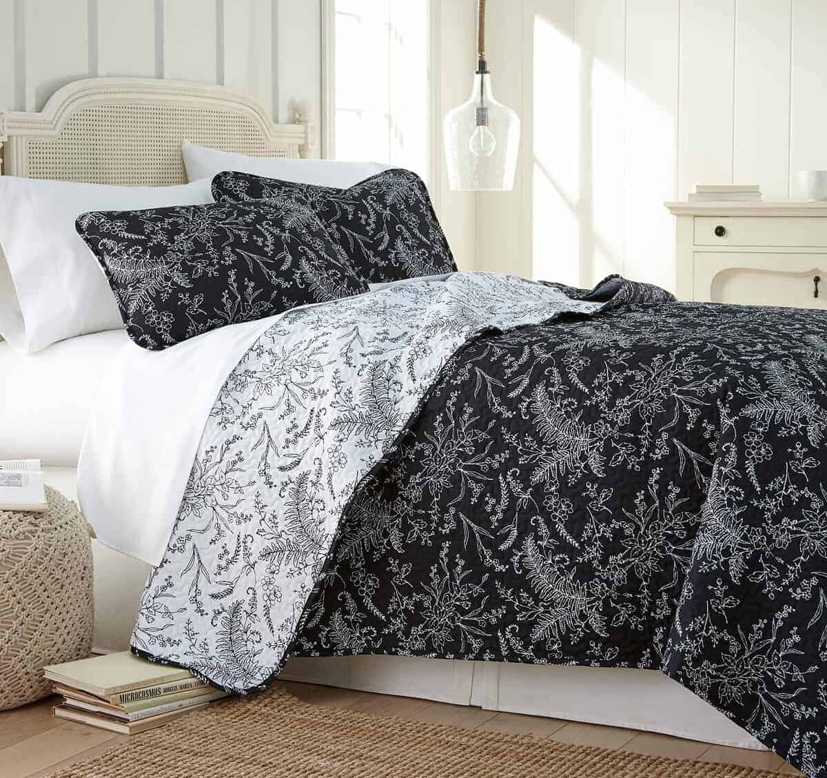 Juego de Colchas Reversible Tamaño Queen, Negro –