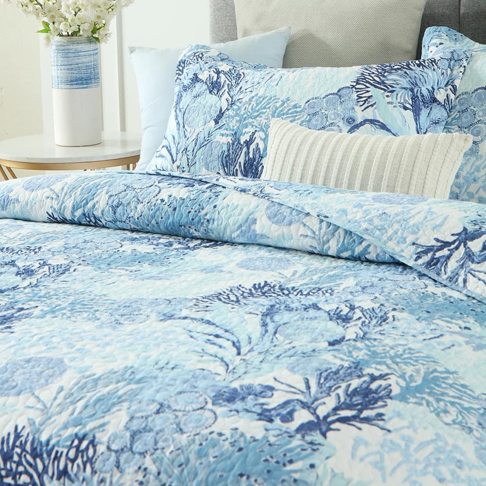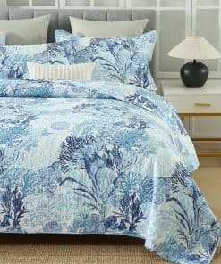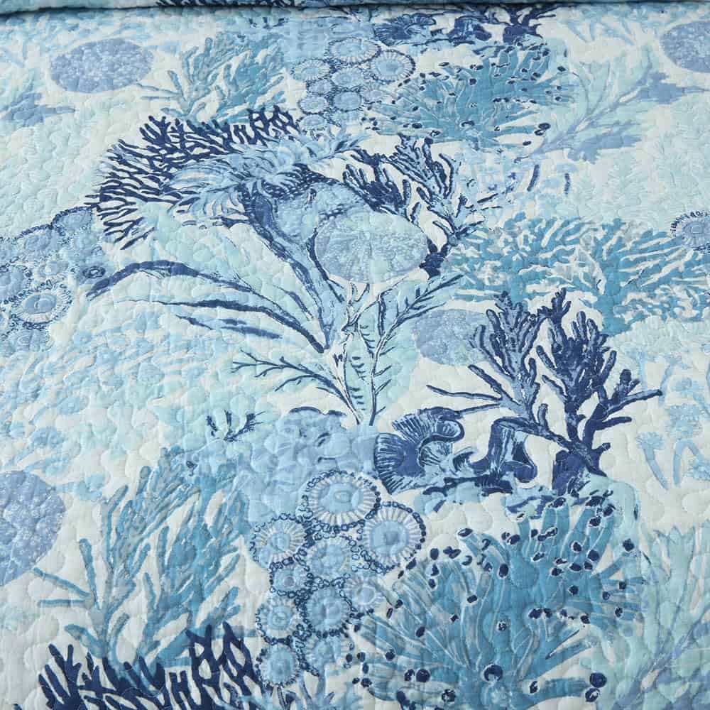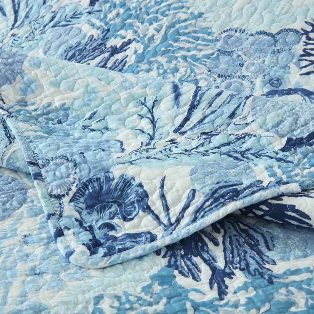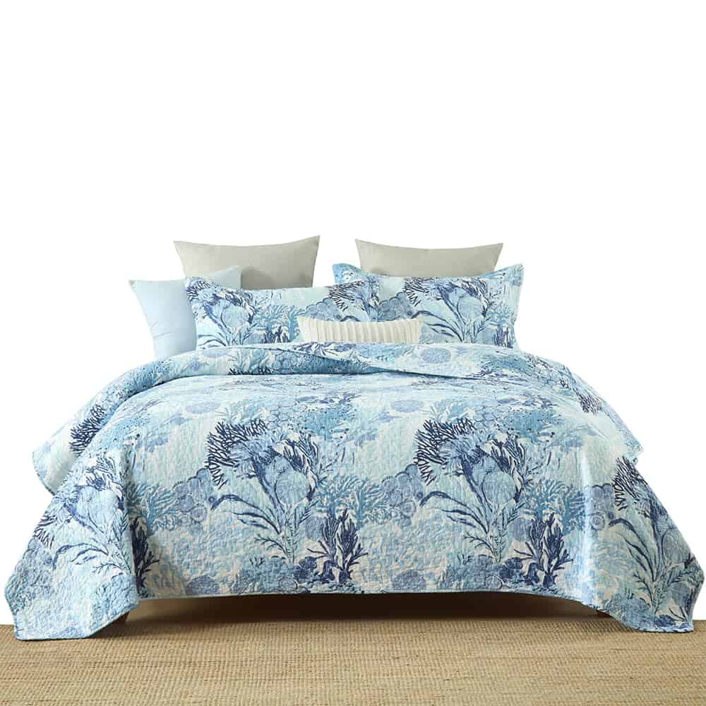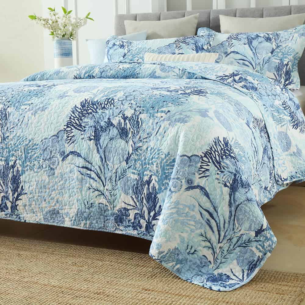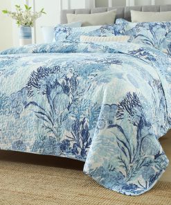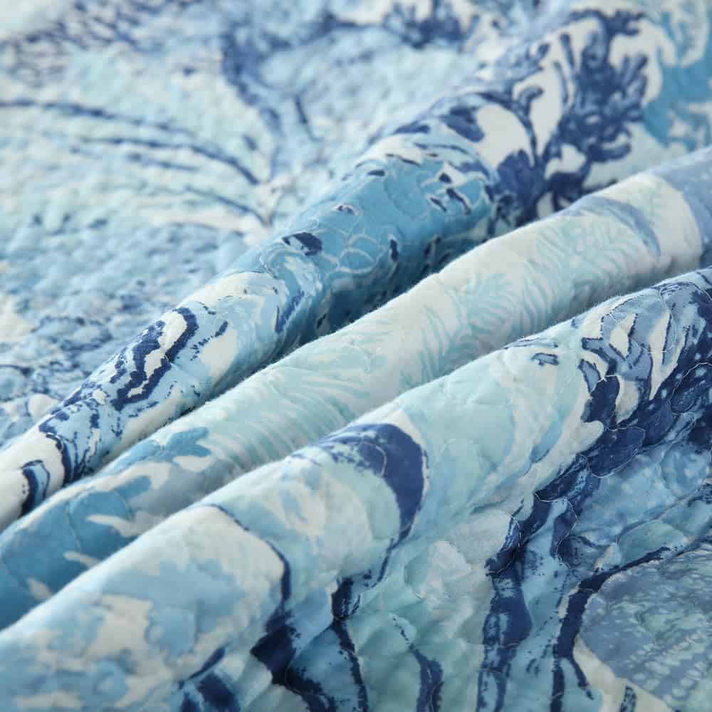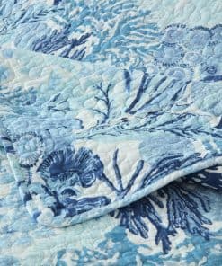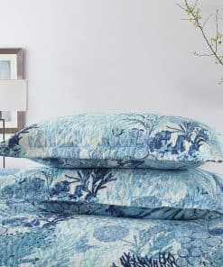 Diseño costero marino: Diseño único y refrescante de cuento de hadas con patrones de un suave azul océano que te transportan de inmediato a la orilla del mar, refrescándote a primera vista después de volver del trabajo, como si estuvieras de vacaciones en la playa. Colcha costera para todas las estaciones: Lo suficientemente ligera como para ser usada como manta, colcha, edredón, colcha, cubierta de sofá. Adecuada para todas las estaciones, el material de algodón mantendrá el cuerpo caliente en invierno, y el diseño costero marino te traerá un ligero frescor en verano. Colcha de tamaño queen: El paquete incluye 1 colcha de tamaño queen (90 por 98 pulgadas), 2 fundas de almohada (20 por 27 pulgadas). Lavable a máquina: Lavar por separado en agua fría. Secar en secadora a baja temperatura.