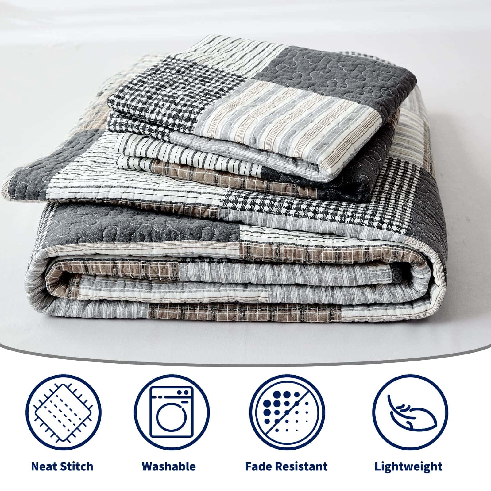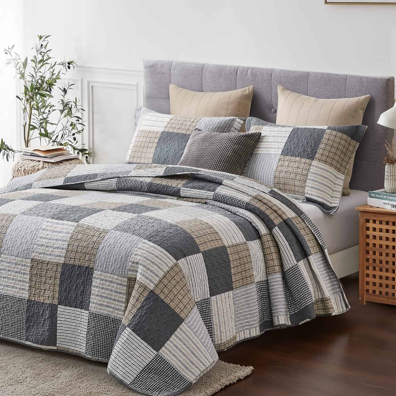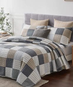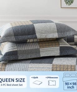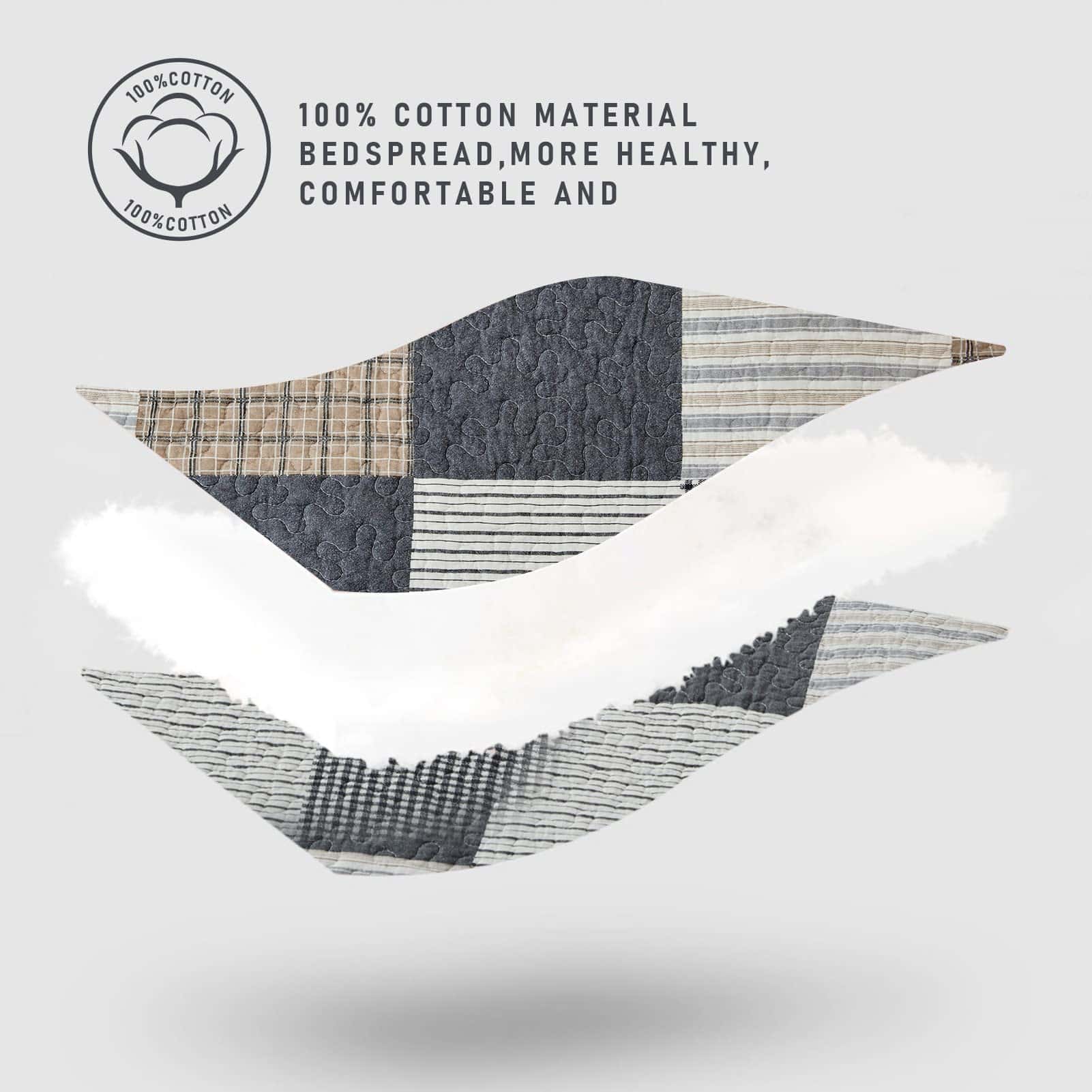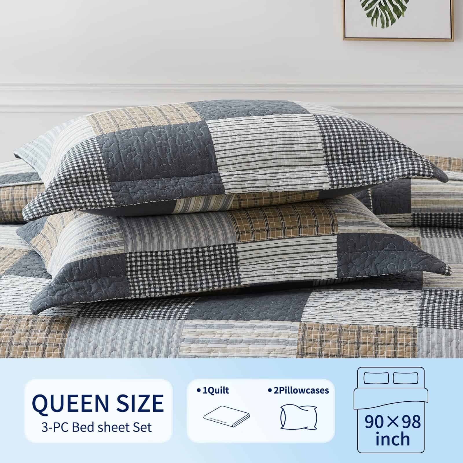 Preferimos 100% algodón natural para hacer nuestro juego de colcha estilo casa de campo, que es más saludable y transpirable. Es más suave y acogedor que otros tejidos. Incluye patrón a cuadros de estilo casa de campo. Costura doble para mayor durabilidad. Adecuado para todas las estaciones. Incluye: 1 colcha (68 x 86 pulgadas) + 1 funda de almohada (20 x 26 pulgadas). Fácil de cuidar, lavar a máquina por separado en agua fría, secar a baja temperatura, no usar lejía.